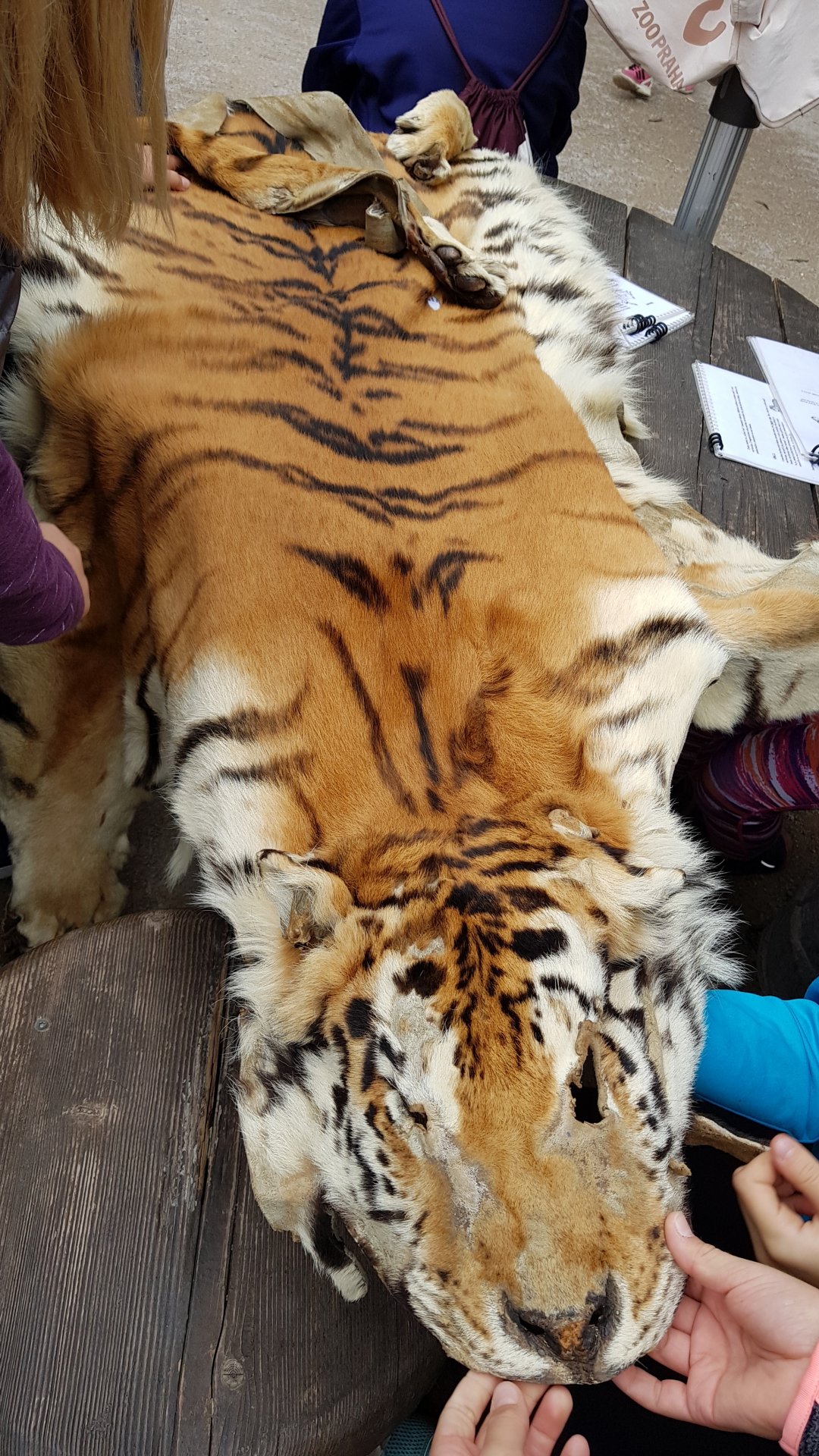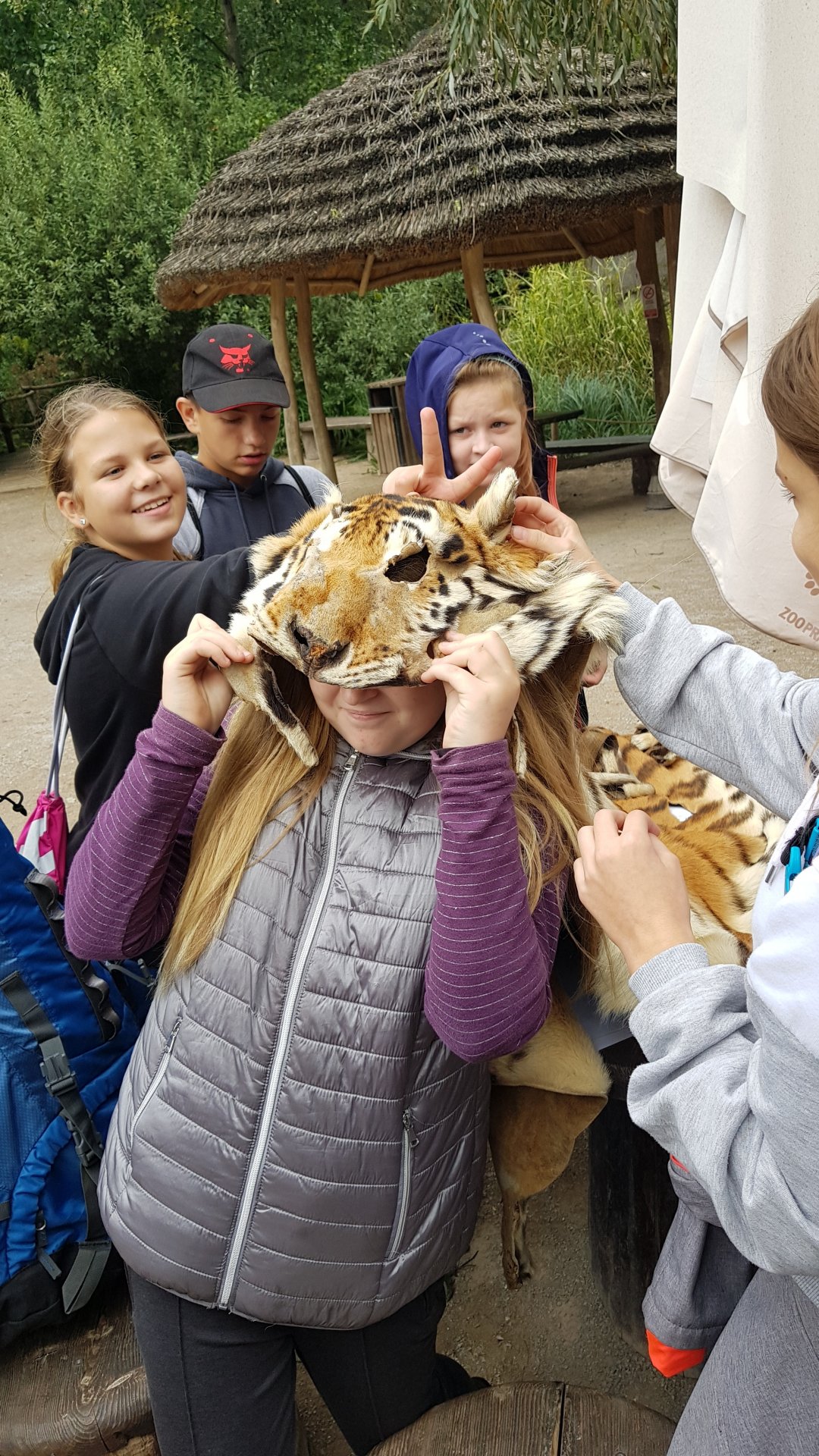 V jedenáct hodin si nás převzala pracovnice ZOO. Žáci se rozdělili do skupinek a každá z nich dostala pracovní list se zajímavými úkoly. Společně jsme pak navštívili zajímavá zvířata, např. papoušky, dravce, makaky. Největší překvapení nás čekalo na konci, kdy paní instuktorka vyndala ze svého velkého batohu pravé, nefalšované kůže zvířat. Sáhnout si na kůži tygra a pak si jí dát třeba na hlavu - takovou příležitost snad nikdo z nás ještě v životě neměl! Připravený program byl velmi zajímavý a kdo chtěl, dozvěděl se opravdu hodně nových věcí ze světa zvířat.