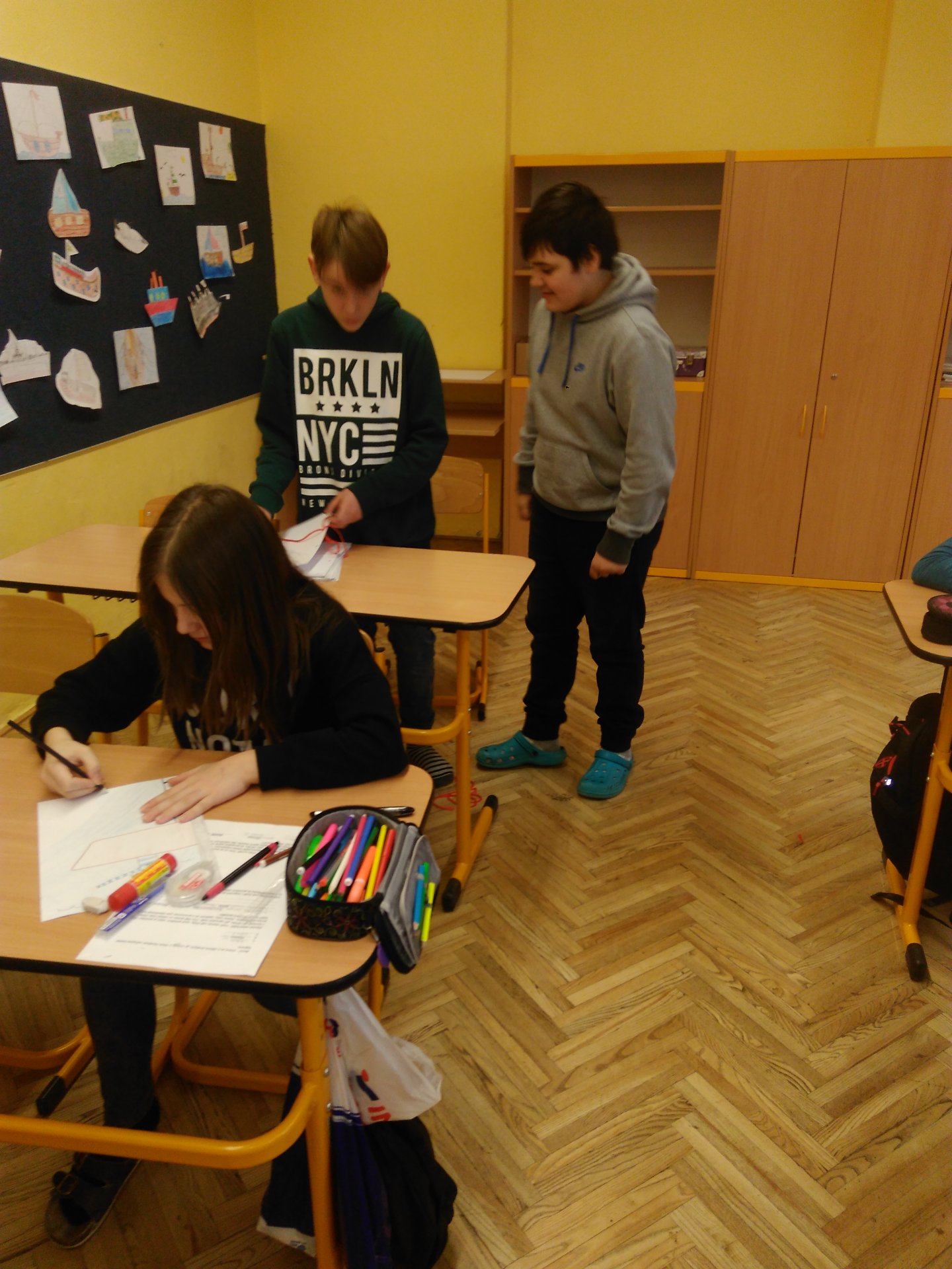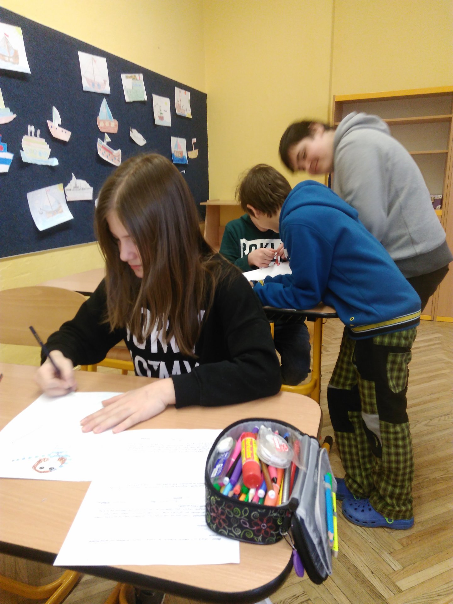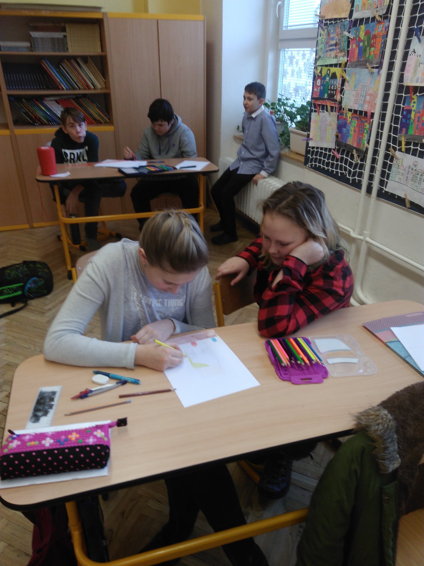 Dnešní dopoledne jsme věnovali projektové činnosti na téma Plavba časem a zrcadlení. Na pololetní projektový den jsme se připravovali dopředu již v hodinách výtvarné výchovy, kdy jsme si kreslili a malovali lodě, koráby a čluny, na kterých bychom chtěli společně plout. V hodinách českého jazyka jsme vymýšleli a psali příběhy z naší společné plavby, kreslili a psali jsme komiksové příběhy o tom, co se nám při dobrodružné plavbě přihodilo. Vytvořili jsme si lodní deník 6.A a nakonec i velikou plachetnici, na které společně poplujeme ve druhém pololetí školního roku. Společně jsme si vyhodnotili, co se nám v prvním pololetí podařilo, v čem jsme dobří, co bychom mohli ještě naopak zlepšit a co bychom si ve druhé půlce školního roku přáli zlepšit nejen v našem třídním kolektivu, ale i na naší škole. V samotném závěru projektového dne jsme si rozdali pololetní vysvědčení.