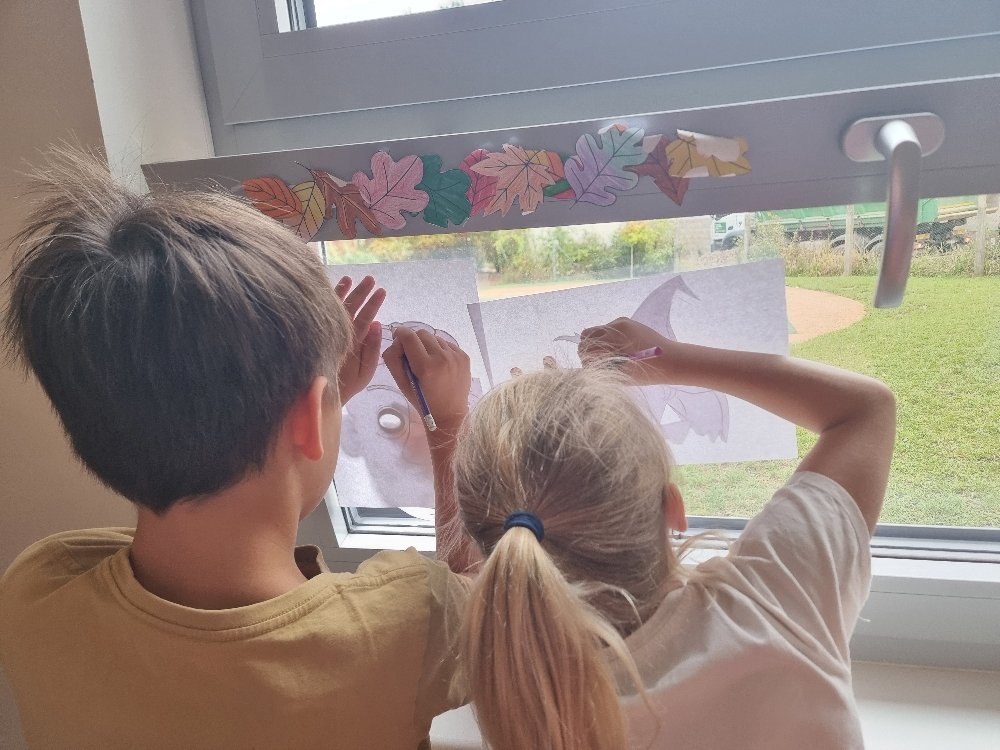 na podzim jsme si v naší družince 3.B vyzdobili třídu barevnými listy, kterými děti vyzdobily okna 🙂