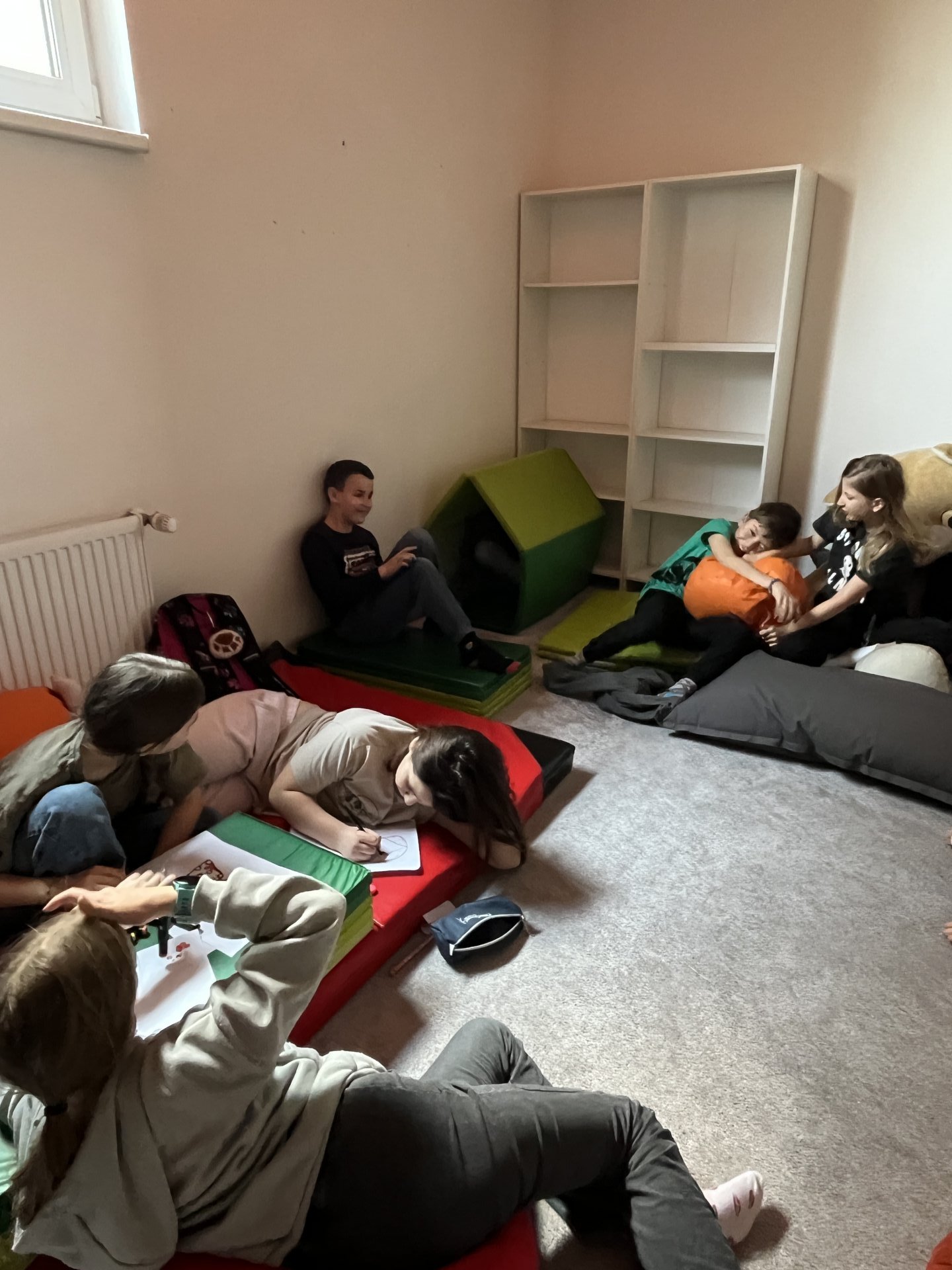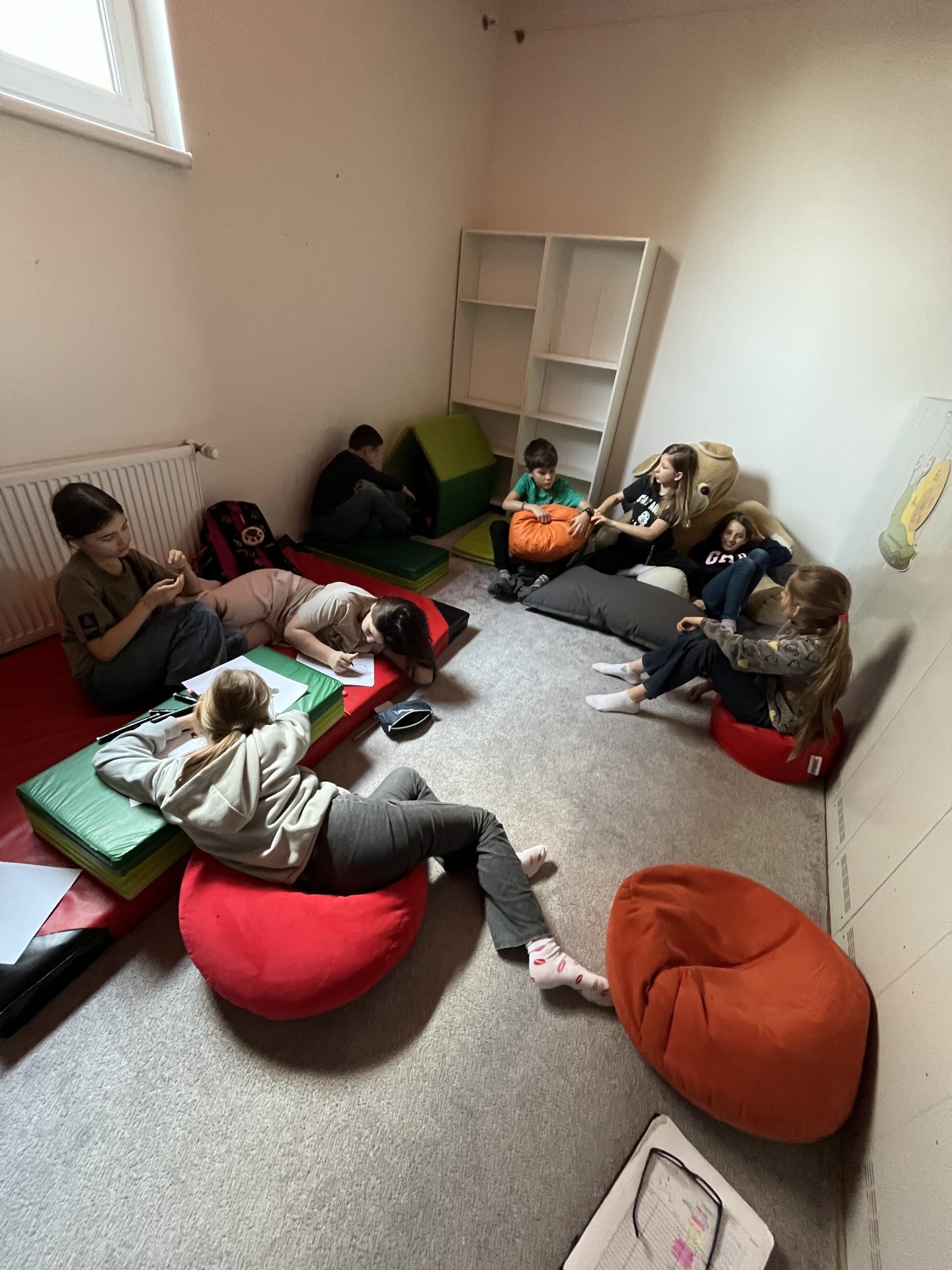 Každý čtvrtek trávíme s účastníky školní družiny ze 4. A přibližně hodinu společným odpočinkem po obědě. Tento čas patří povídání – sdílíme, na co se těšíme a co se nám v uplynulých dnech podařilo.