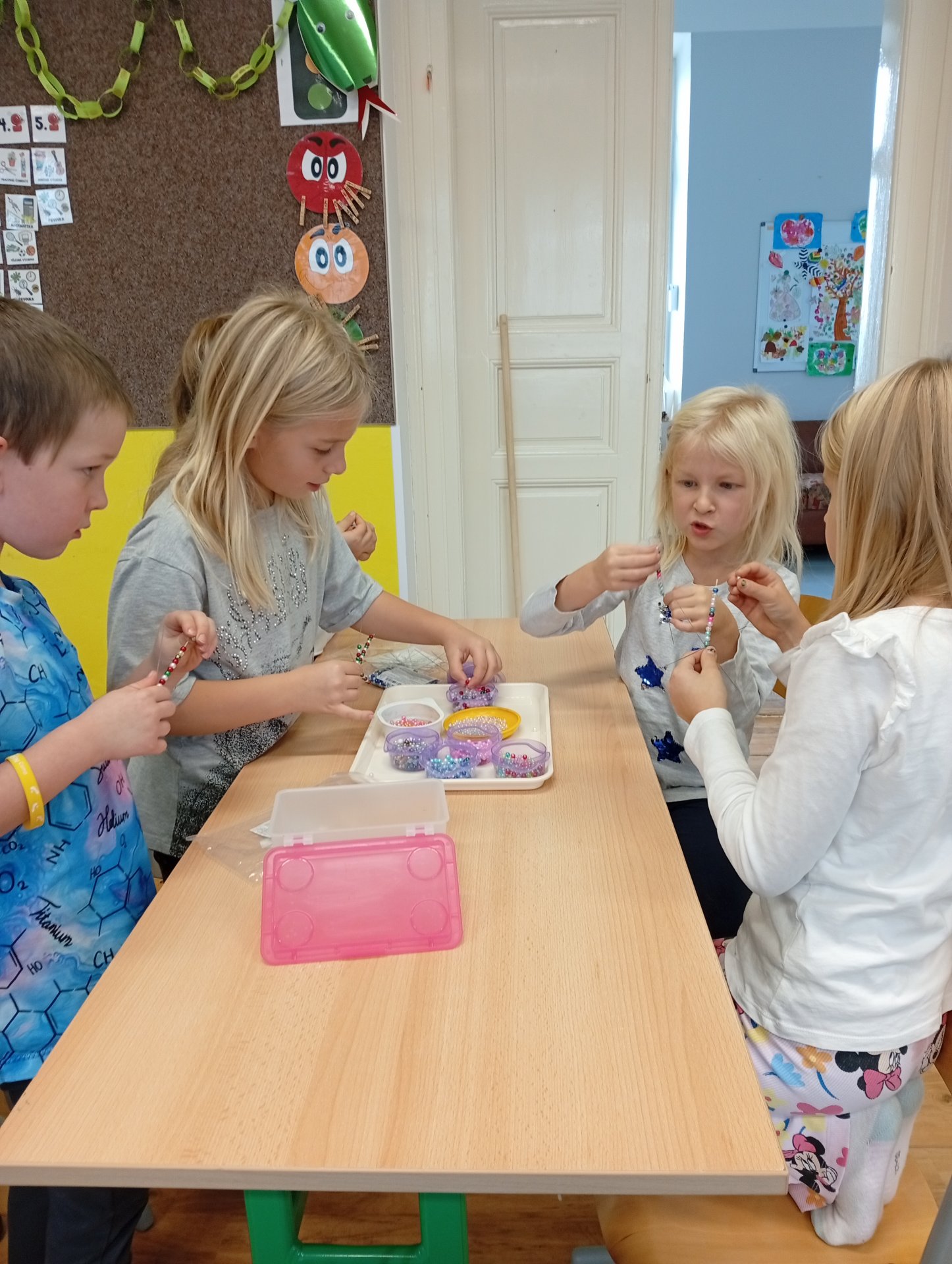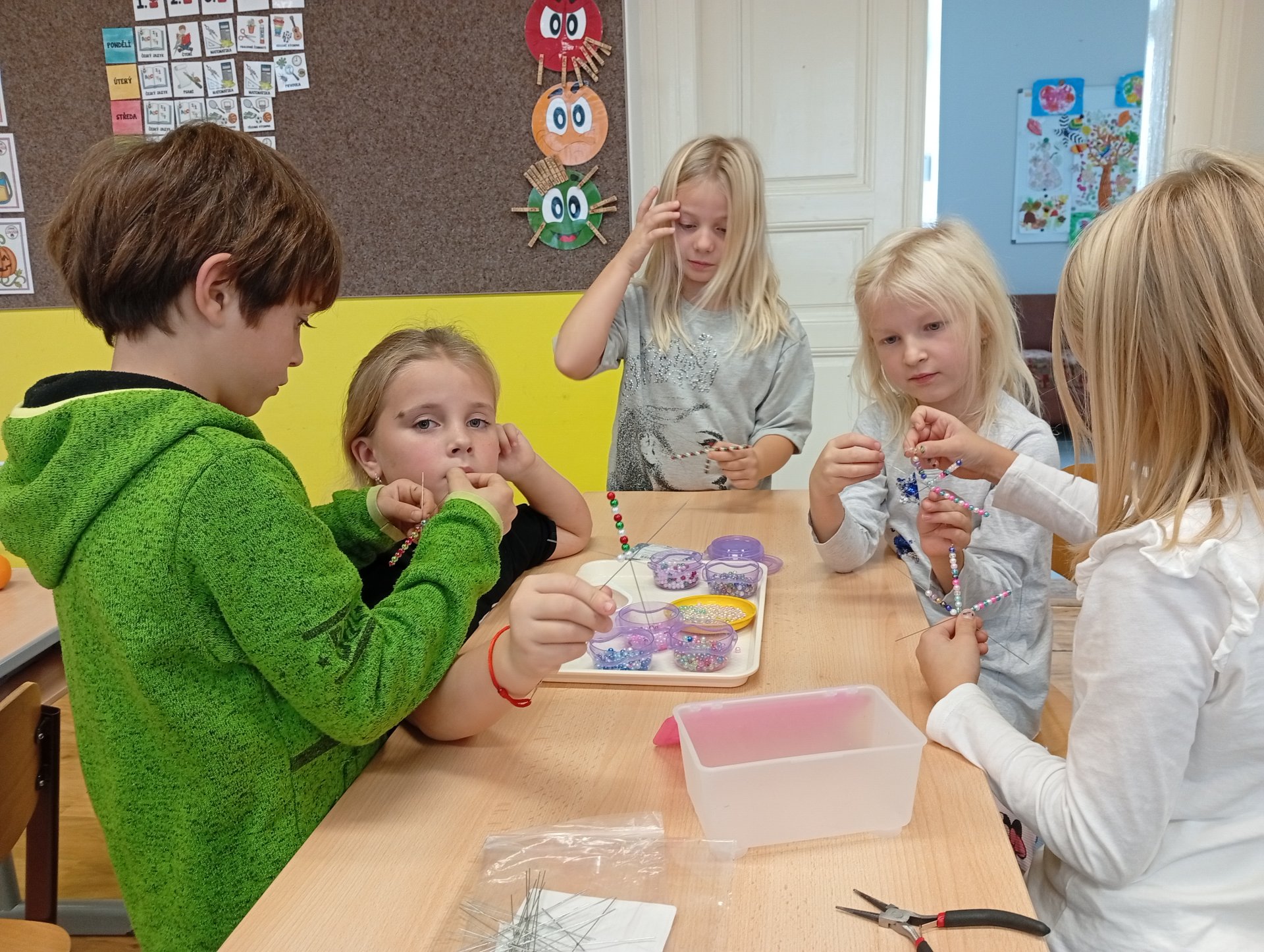 S velkým nadšením jsme stříhali, lepili a navlékali korálky.