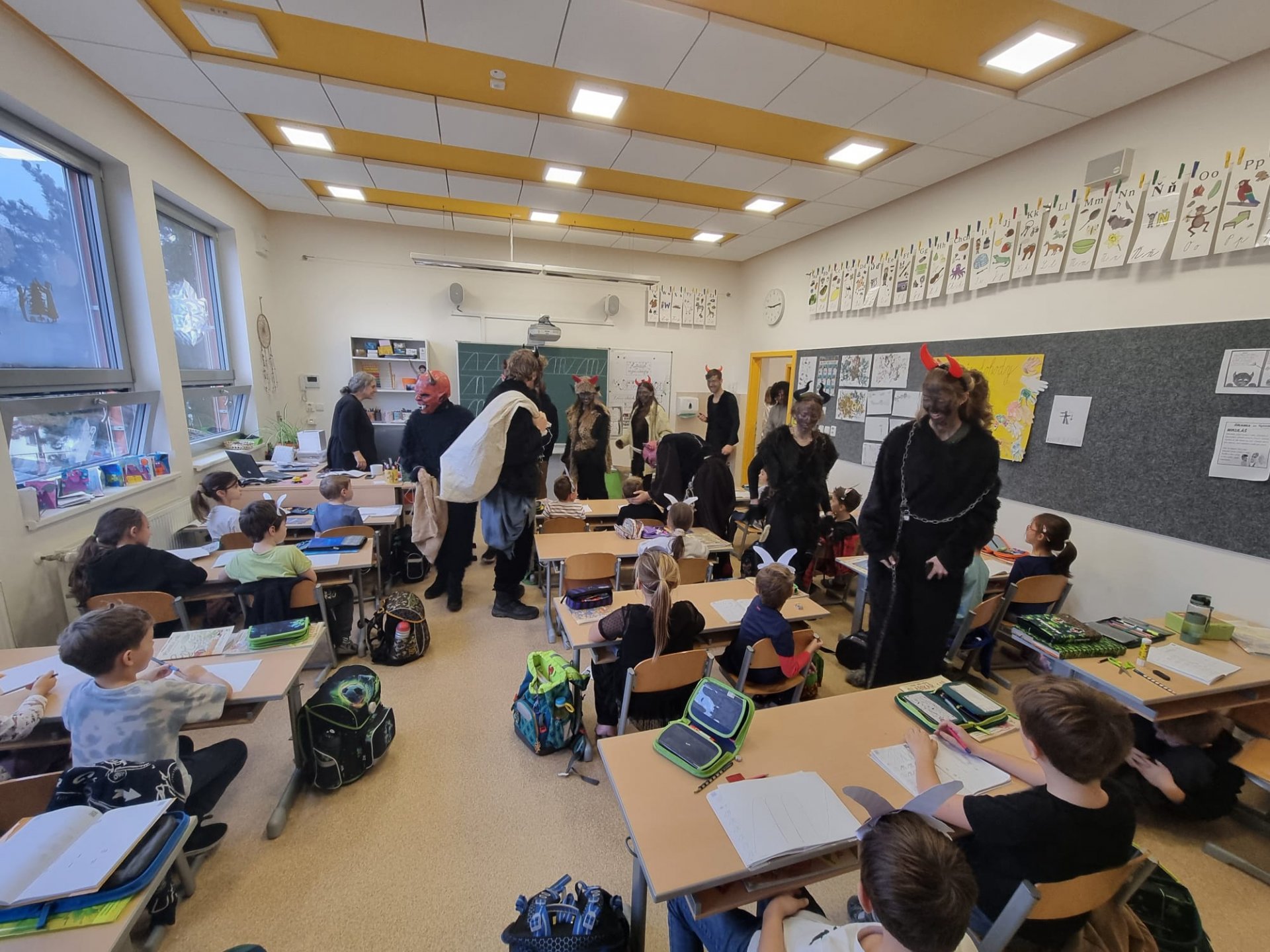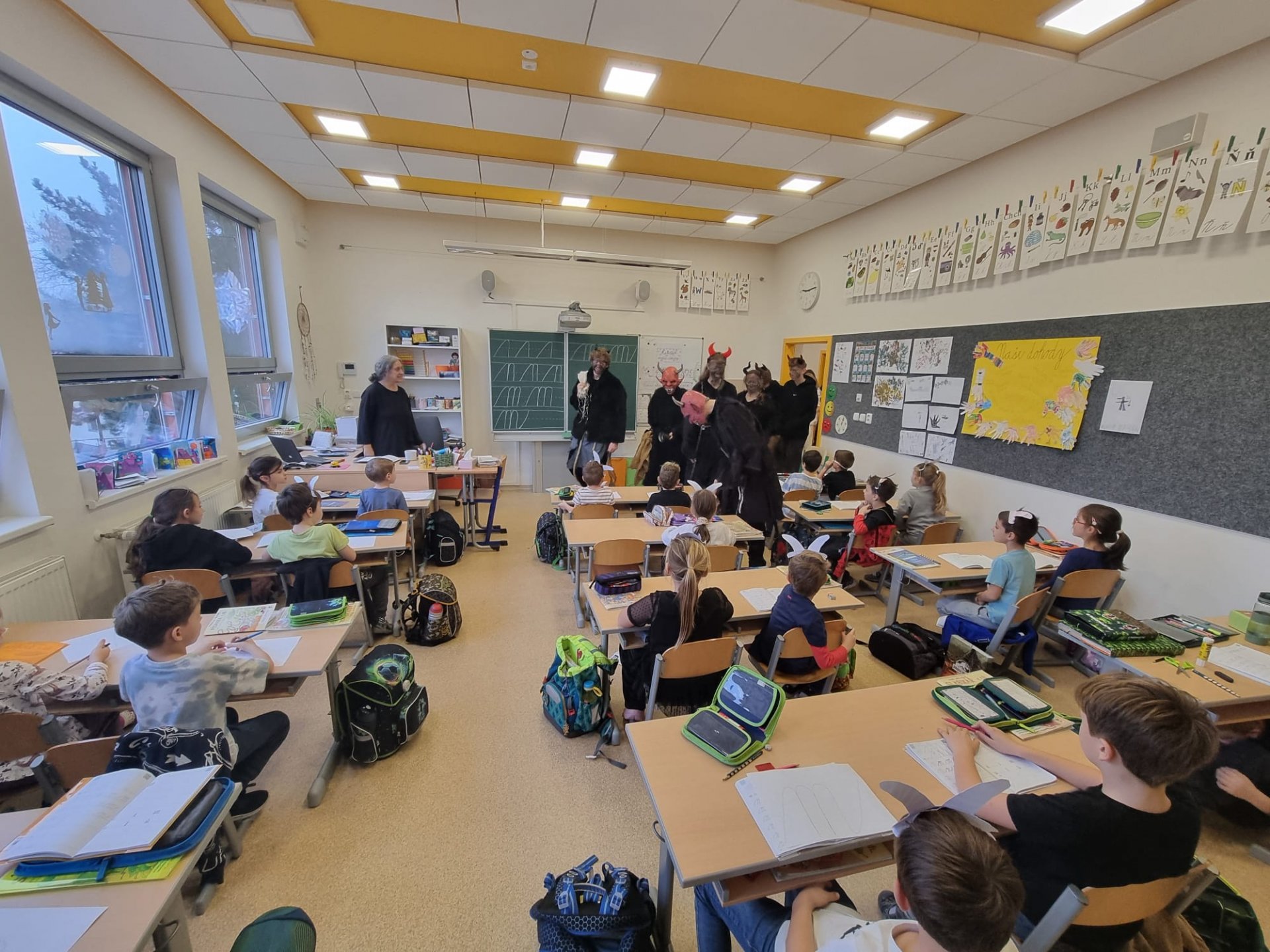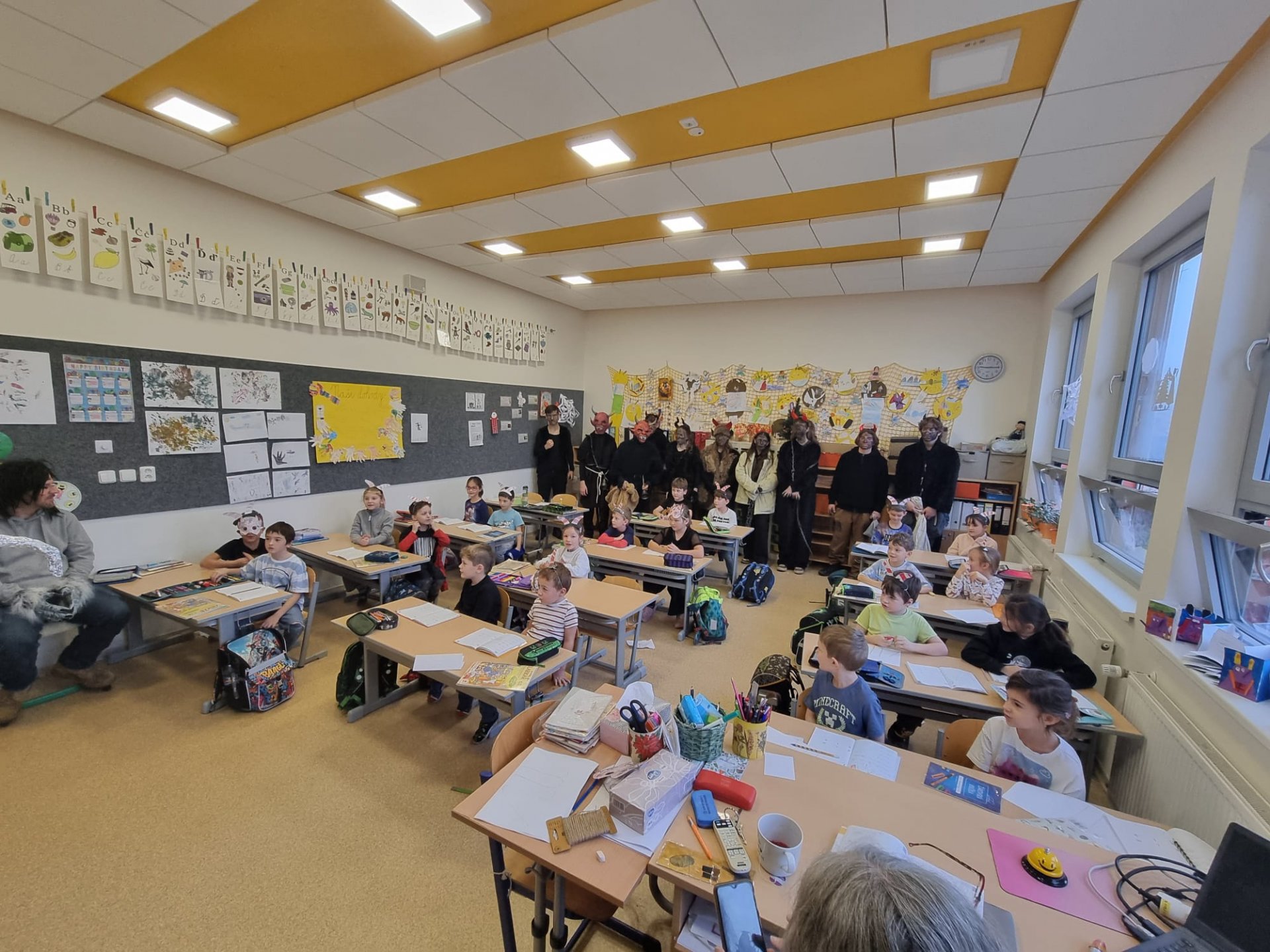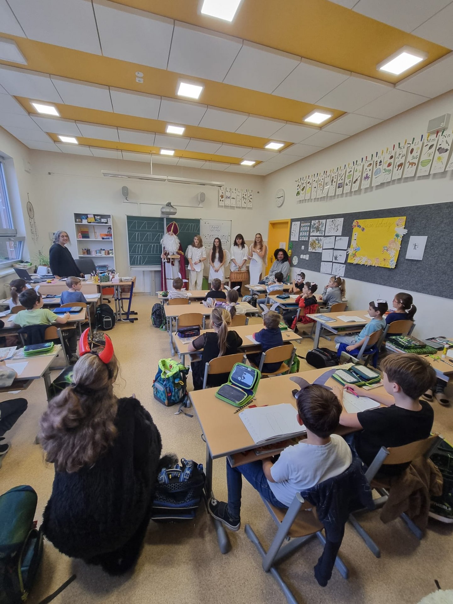 Prvňáčci se dívali z okna, občas měli pocit, že je odkudsi někdo pozoruje. Přijdou opravdoví čerti? Někdo řekl, že přijdou převlečení deváťáci, ale vesměs tomu nikdo nevěřil. Nebo přece jen? Bylo to velké tajemství. Jedno je však třeba s určitostí říci: Všichni byli tentokrát hodní, někdo si dokonce občas ufňukl, a když se Mikuláš, čerti a andělé nahrnuli do třídy, nikdo ani nepípl. A už vůbec nikoho ani nenapadlo, aby si zahrál na hrdinu. Takové to bylo.