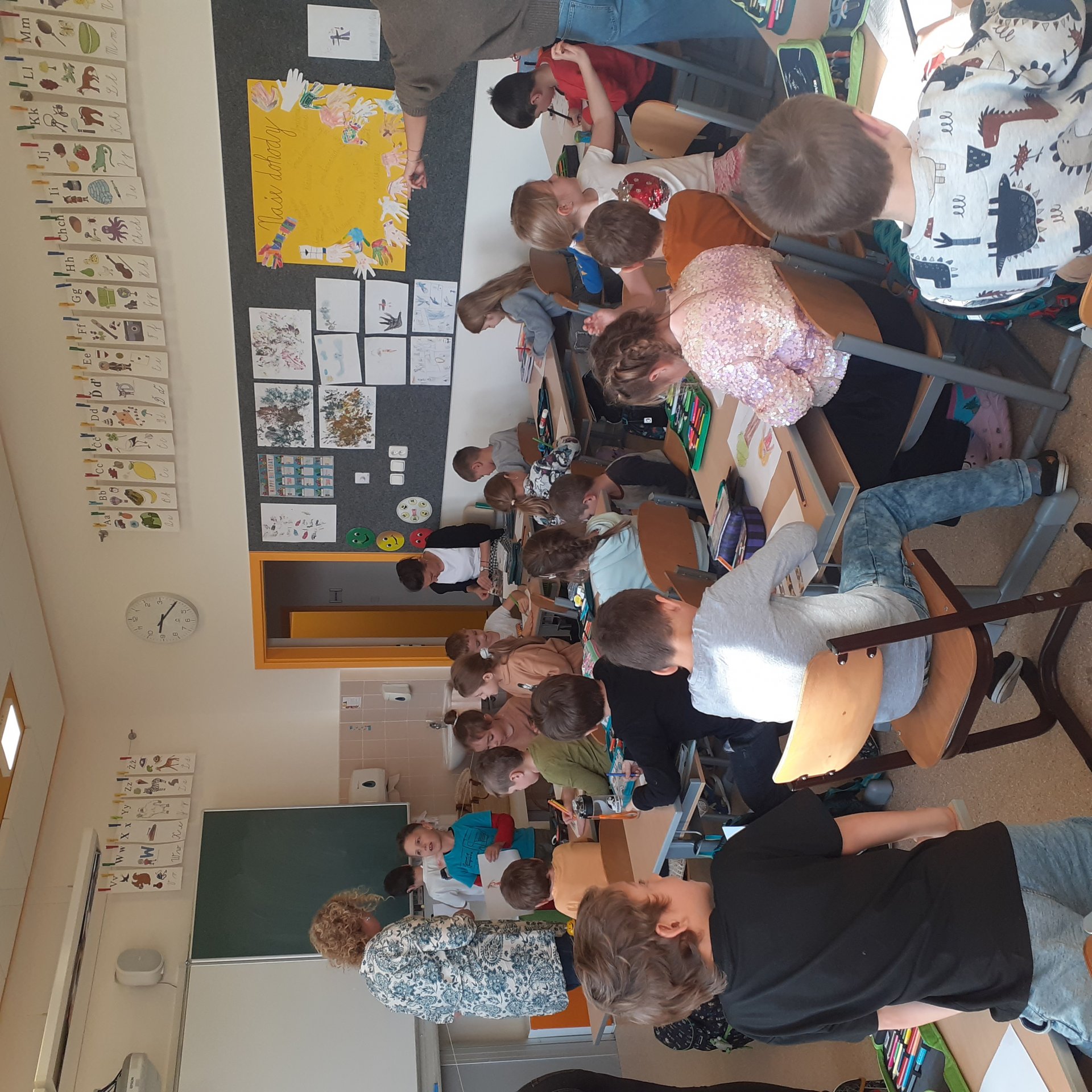 Velkým překvapení pro třídu I. A (ale i pro třídu I. B, která přišla do áčka na návštěvu), se stala návštěva paní spisovatelky Heleny Dostálové, která se udála ve středu 12. listopadu. Paní Helena nejprve vyzvala prvňáčky, aby se okamžitě pustili do tvoření a namalovali si vlastní pohádku. Někteří se trošku zdráhali, ale brzy se šňůra, kterou paní spisovatelka připevnila mezi dvě velké židle, začala plnit obrázkovými příběhy. Někteří žáci sebrali odvahu a paní Heleně svůj příběh začali představovat. Později již Helena Dostálová vyprávěla svůj vlastní děj knížky, kterou napsala pro děti. Jmenuje se Dech stromu. Knížku jsme dostali darem a moc se těšíme, že si v ní budeme číst. Paní spisovatelce Heleně srdečně děkujeme!
