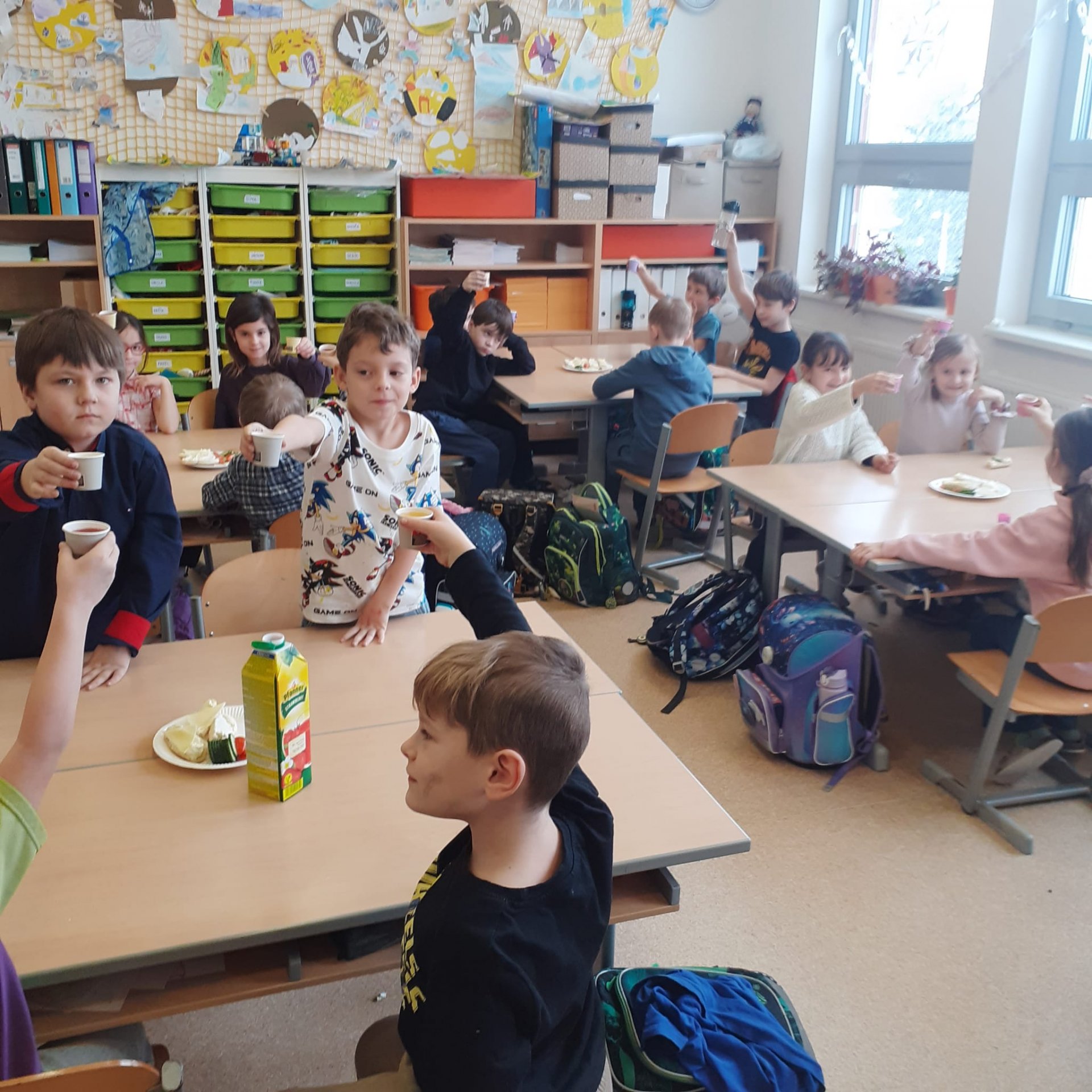 První vysvědčení a důvody k radosti. Všem se daří, třída je plná šikovníčků, a tak oslavujeme. Prvňáčci už umí téměř všechna písmenka. Dnes je výjimečný den. Nejdřív tvoření rodinného stromu, pak dobroty, džusík jako přípitek a oblíbená pohádka Zootropolis. A těsně před obědem předávání vysvědčení.