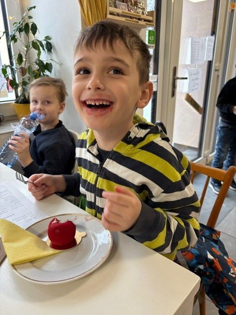 Slavnostní zakončení prvního pololetí probíhalo v Kavárně kousek lesa v Úvalech. Gratuluji všem prvňáčkům ke krásnému vysvědčení! Po předání se hodovalo a veselilo.