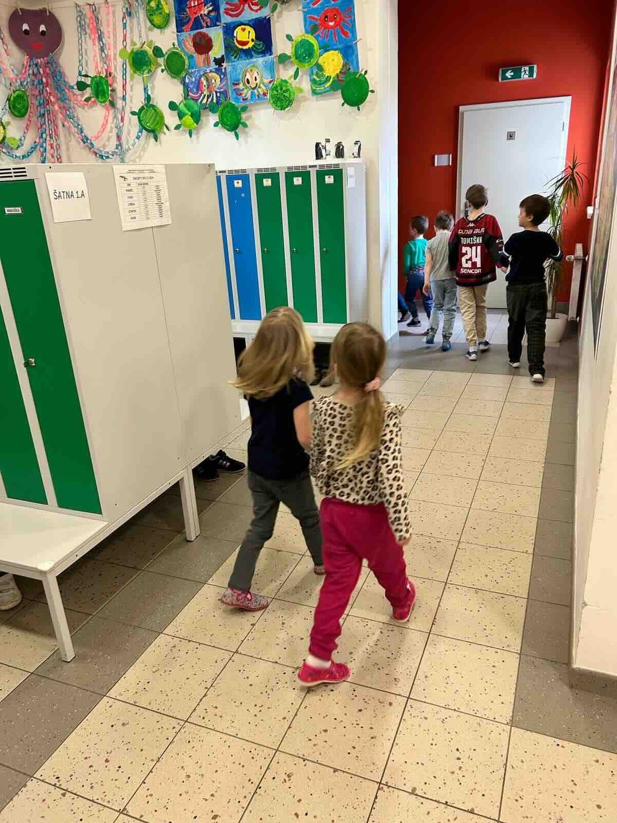 Za asistence prvňáčků proběhla prohlídka školy a ukázka všech důležitých míst.