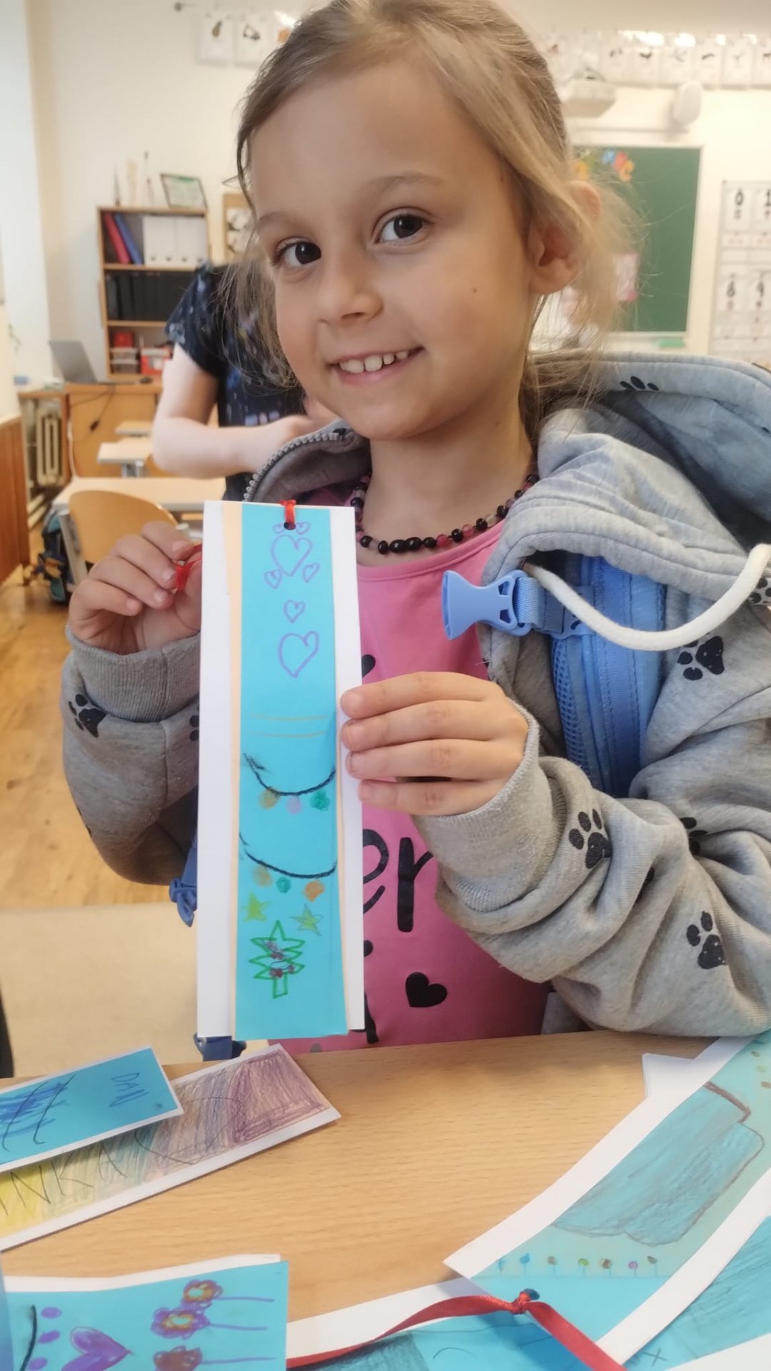 Na konci týdne si děti vyrobily záložky do knihy buď pro sebe, nebo jeho dárek rodičům.