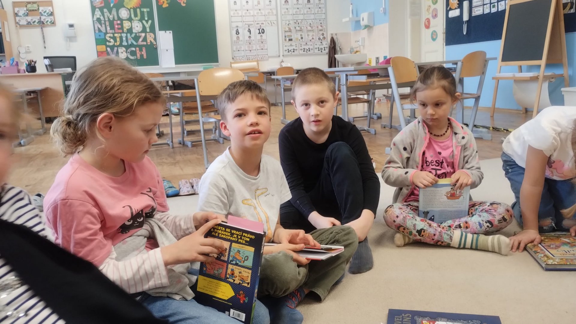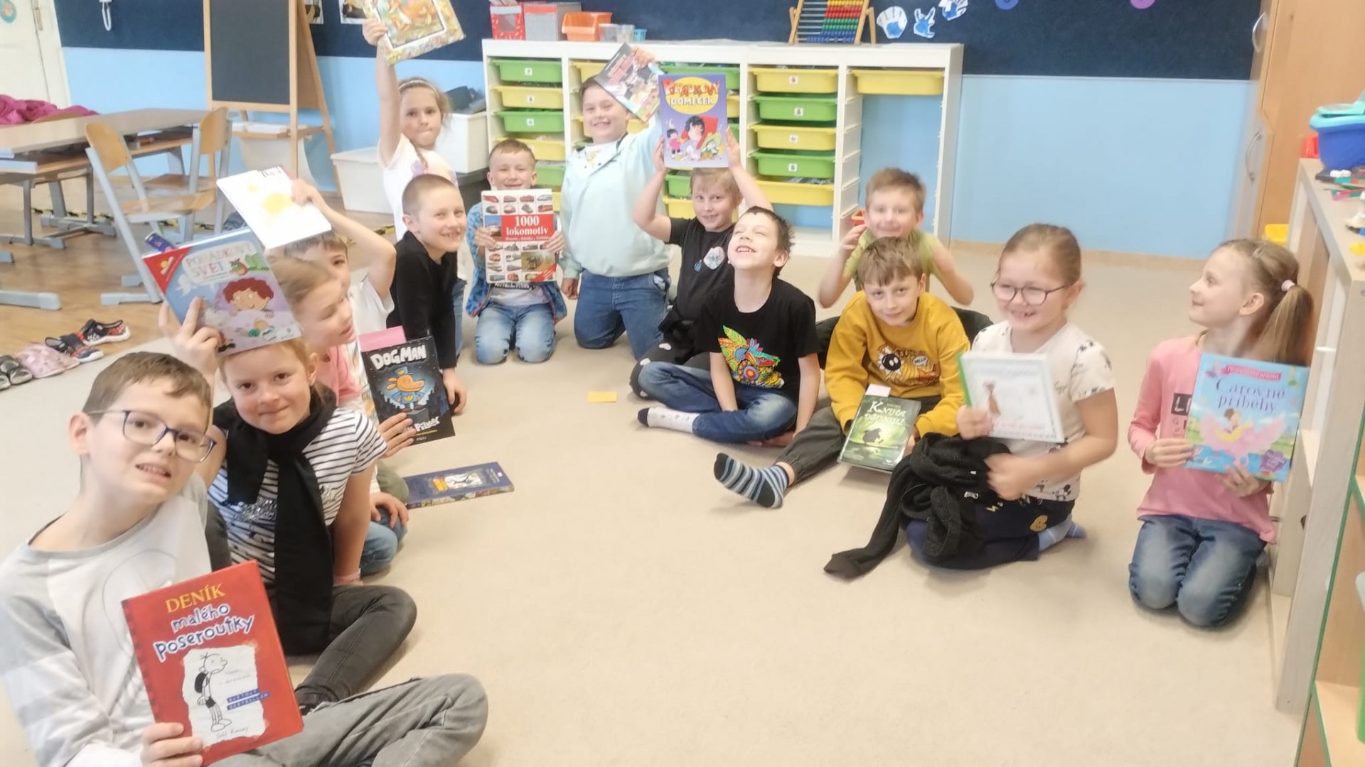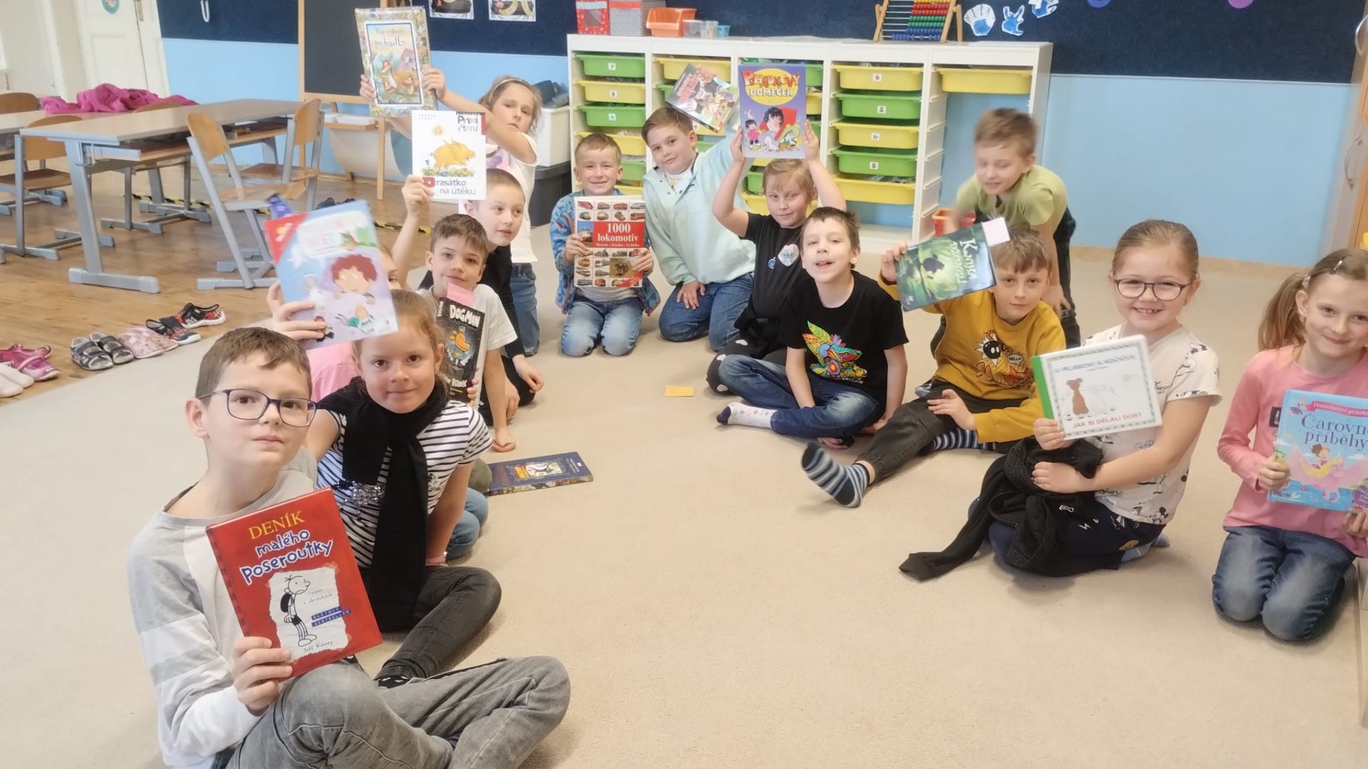 Jelikož je březen ,, Měsíc knihy'', tak jsme se knihám věnovali více, než obvykle. Svoje nejoblíbenější knihy si děti přinesly do družiny a seznámily s nimi své kamarády. Každý řekl pár slov o čem je jeho kniha. Někteří z knihy dokázali přečíst i krátký úryvek.