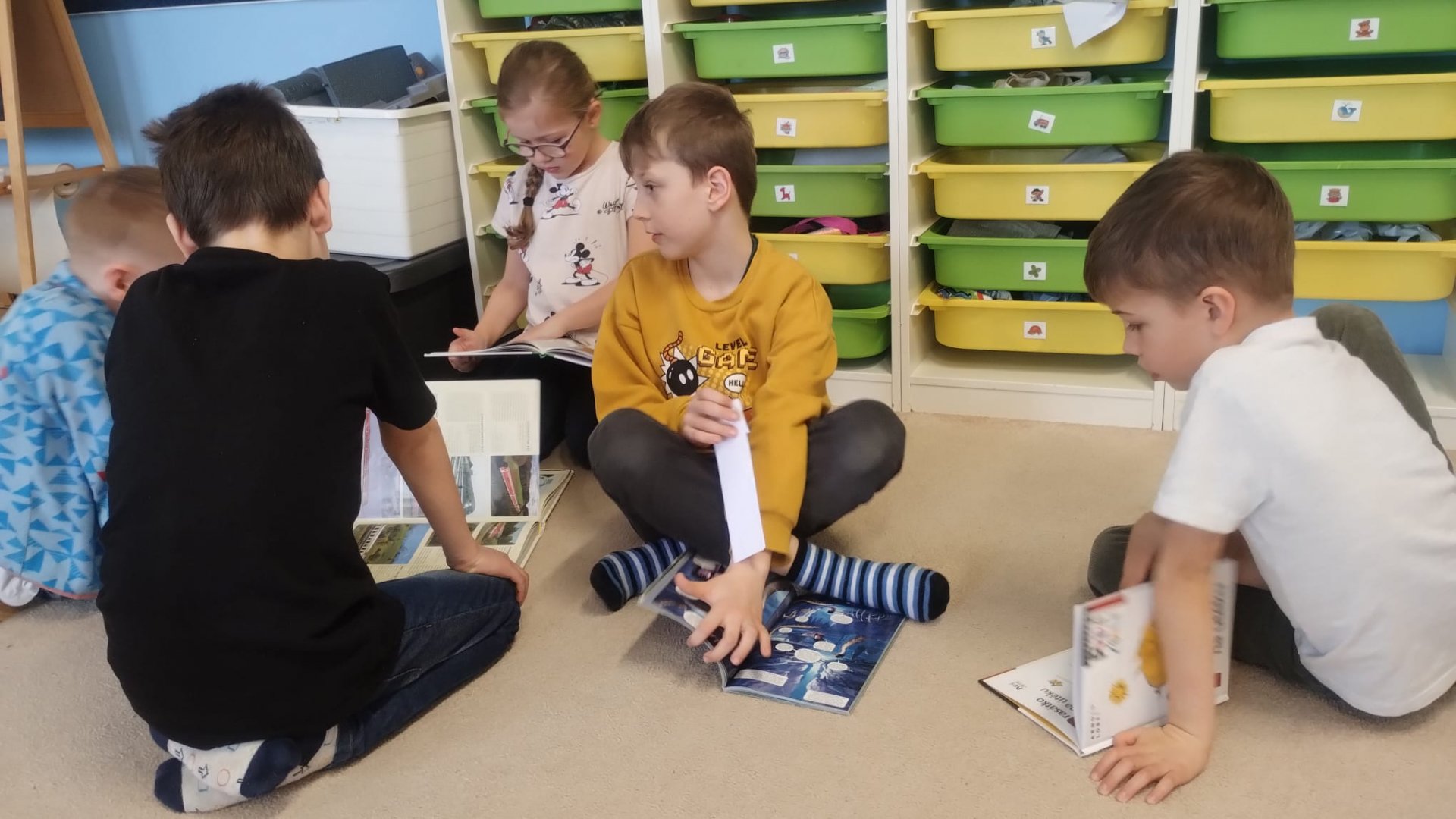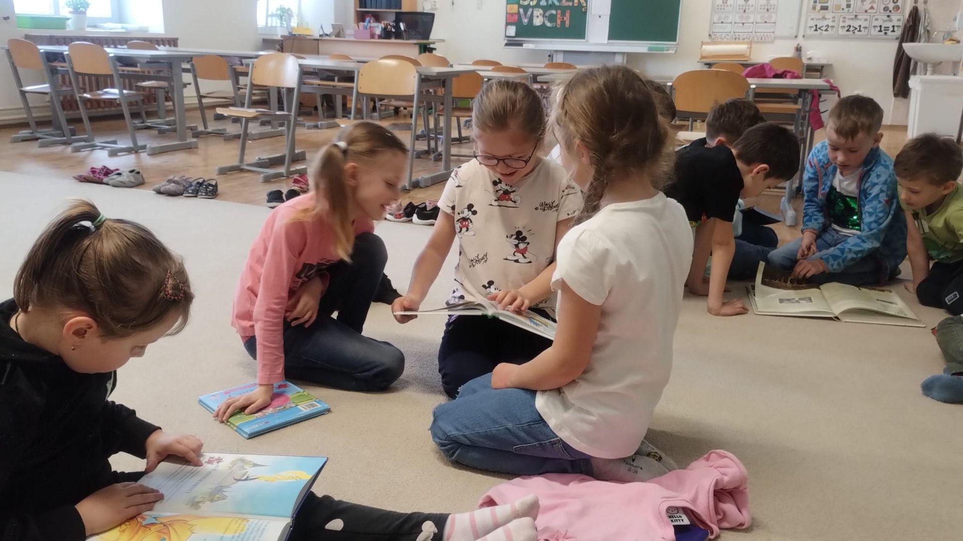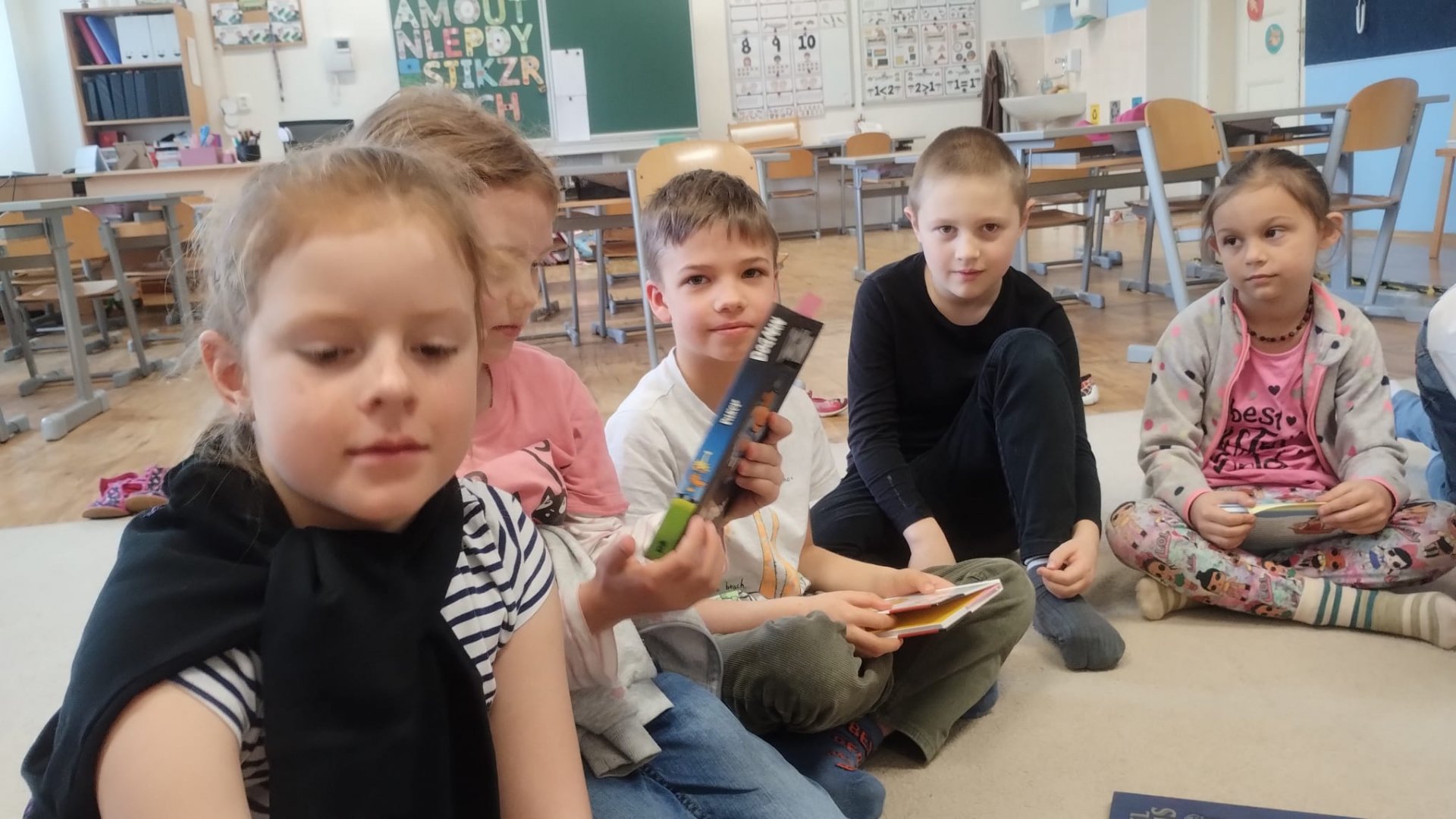 Jelikož je březen ,, Měsíc knihy'', tak jsme se knihám věnovali více, než obvykle. Svoje nejoblíbenější knihy si děti přinesly do družiny a seznámily s nimi své kamarády. Každý řekl pár slov o čem je jeho kniha. Někteří z knihy dokázali přečíst i krátký úryvek.