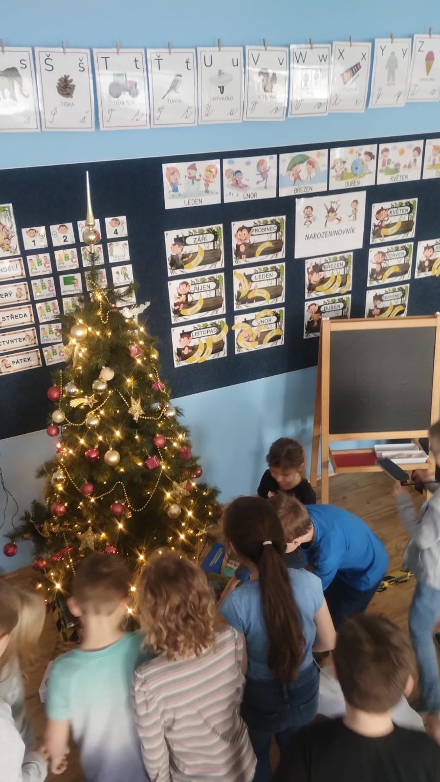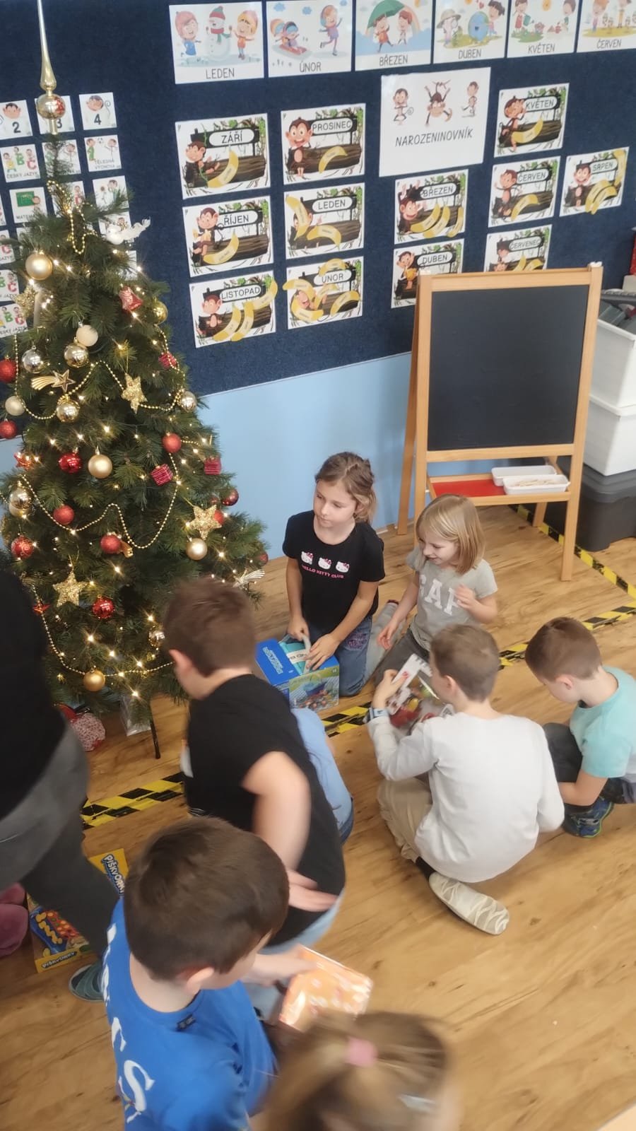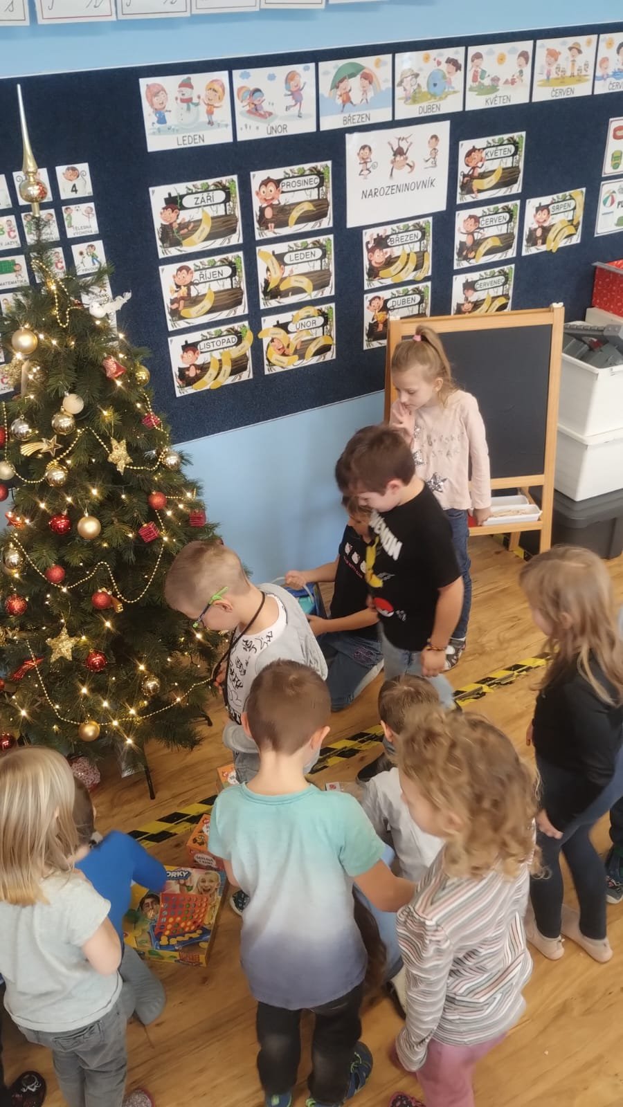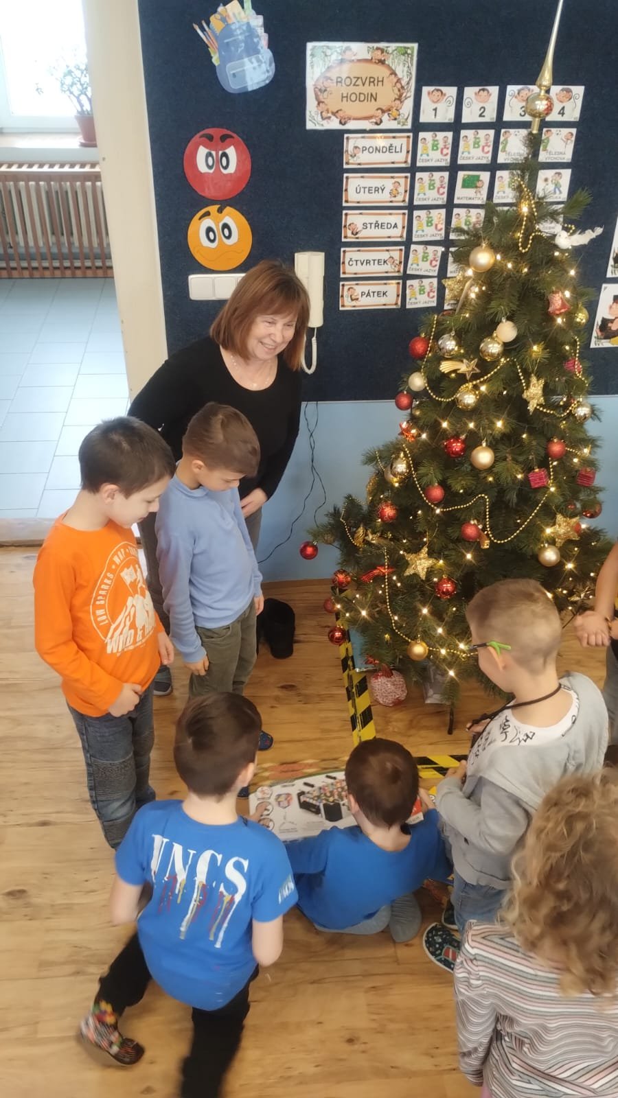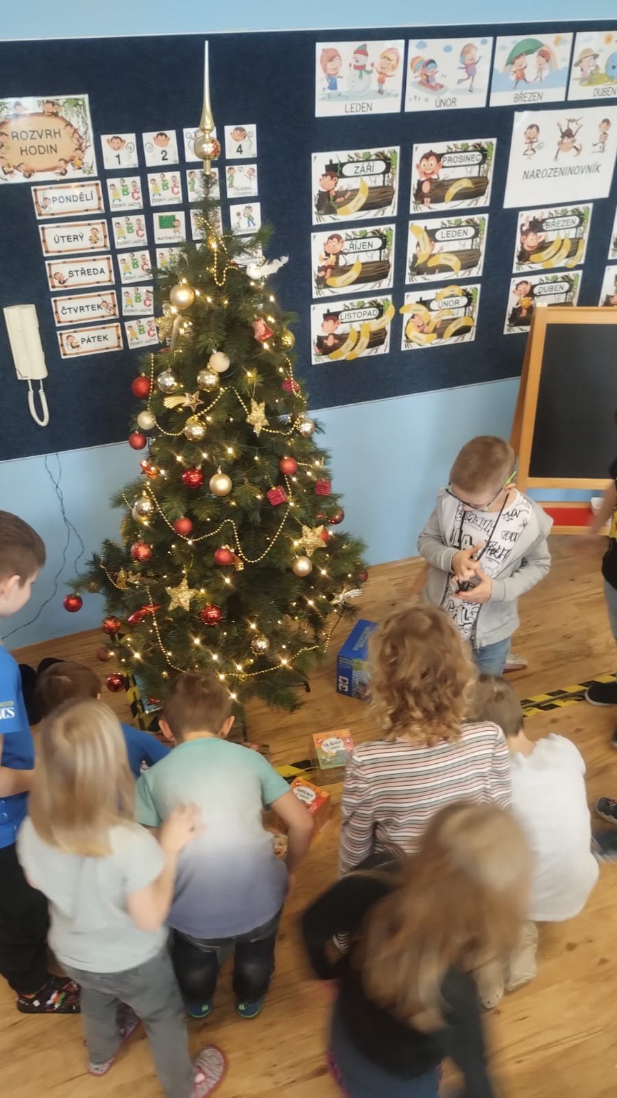 Než jsme šli ke stromečku, tak jsme si na chodbě zazpívali koledy. Zvoneček nám zazvonil a byla tady ta chvíle na kterou jsme čekali.