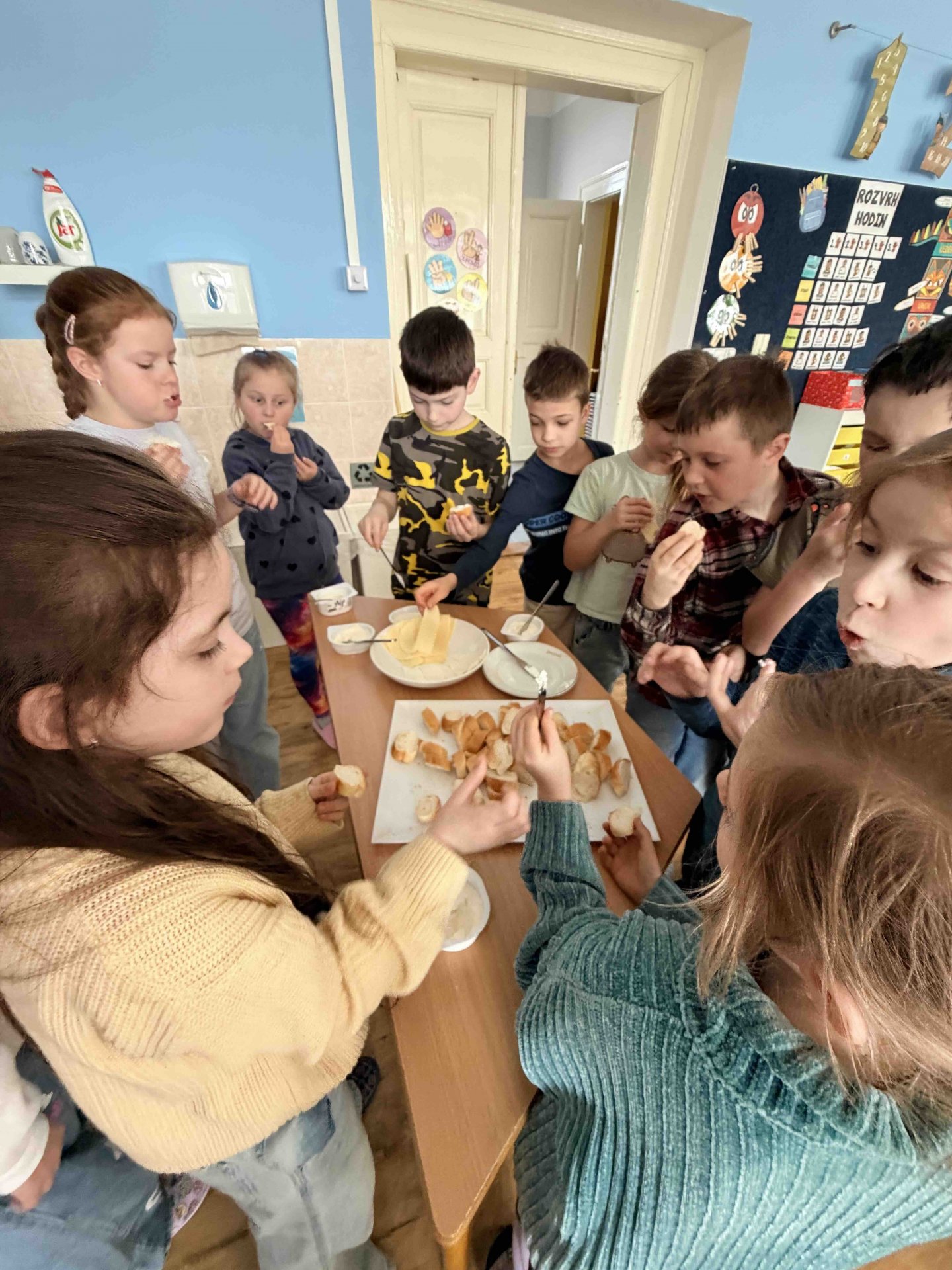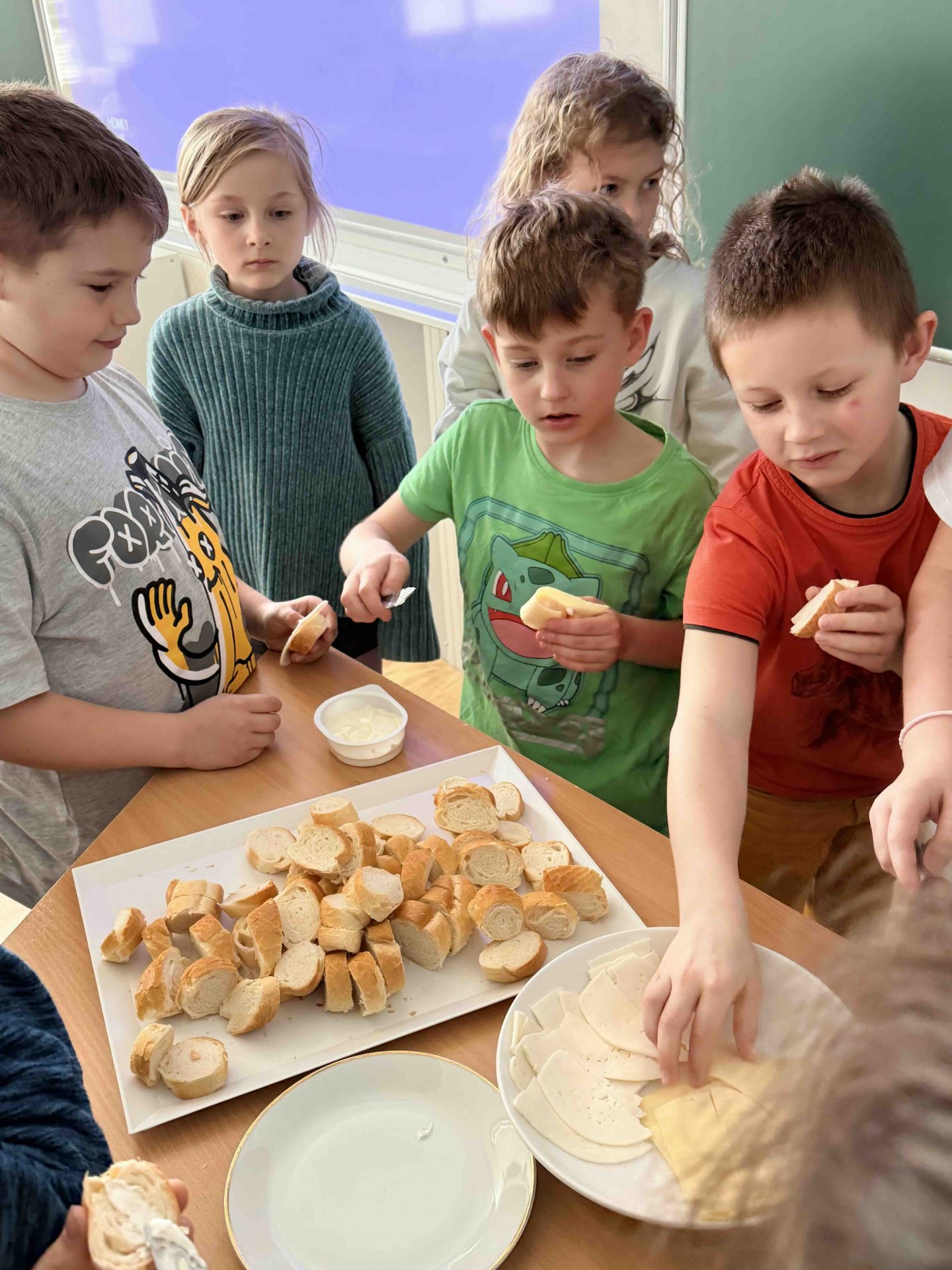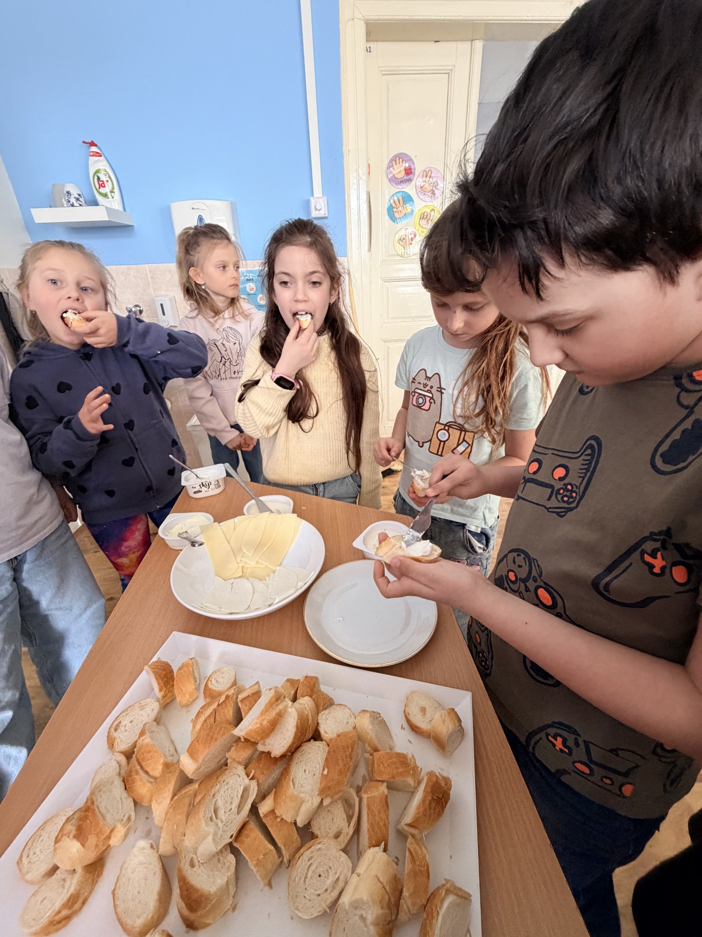 Aby si děti mohly jednotlivé výrobky ještě více vychutnat, koupili jsme jim čerstvé rohlíky, které se k ochutnávce skvěle hodily. Děti si tak mohly vytvořit vlastní kombinace chutí a objevovat, co jim nejvíce vyhovuje.