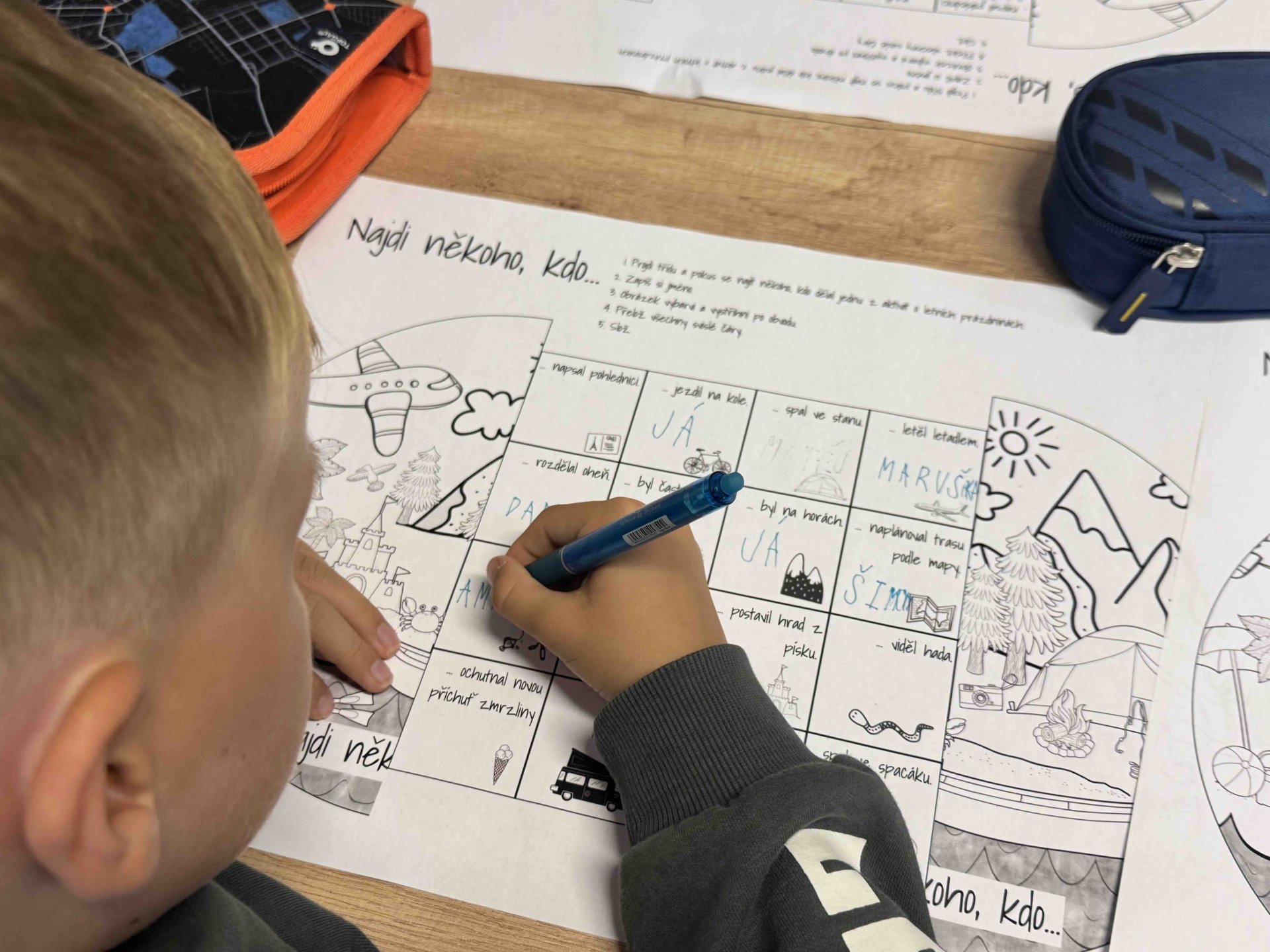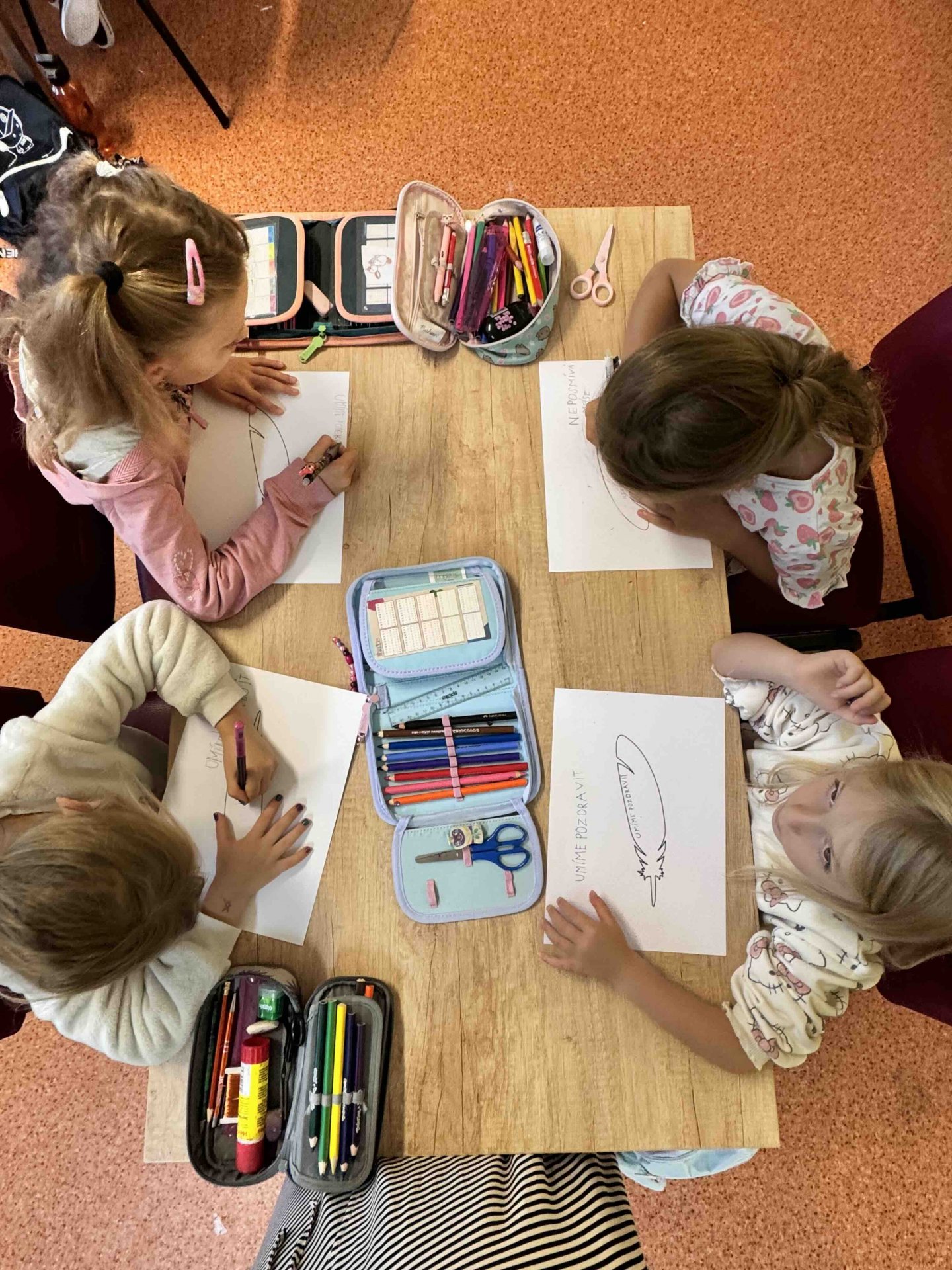 Děti se nenechaly zaskočit změnou prostředí a hned od prvních dní se pustily s nadšením do projektového vyučování s názvem Řetězení. Společně jsme vytvářeli třídní indiánská pravidla, stavěli vlastní totem, vymýšleli indiánská jména, vyráběli barevné čelenky a sdíleli své zážitky z prázdnin.