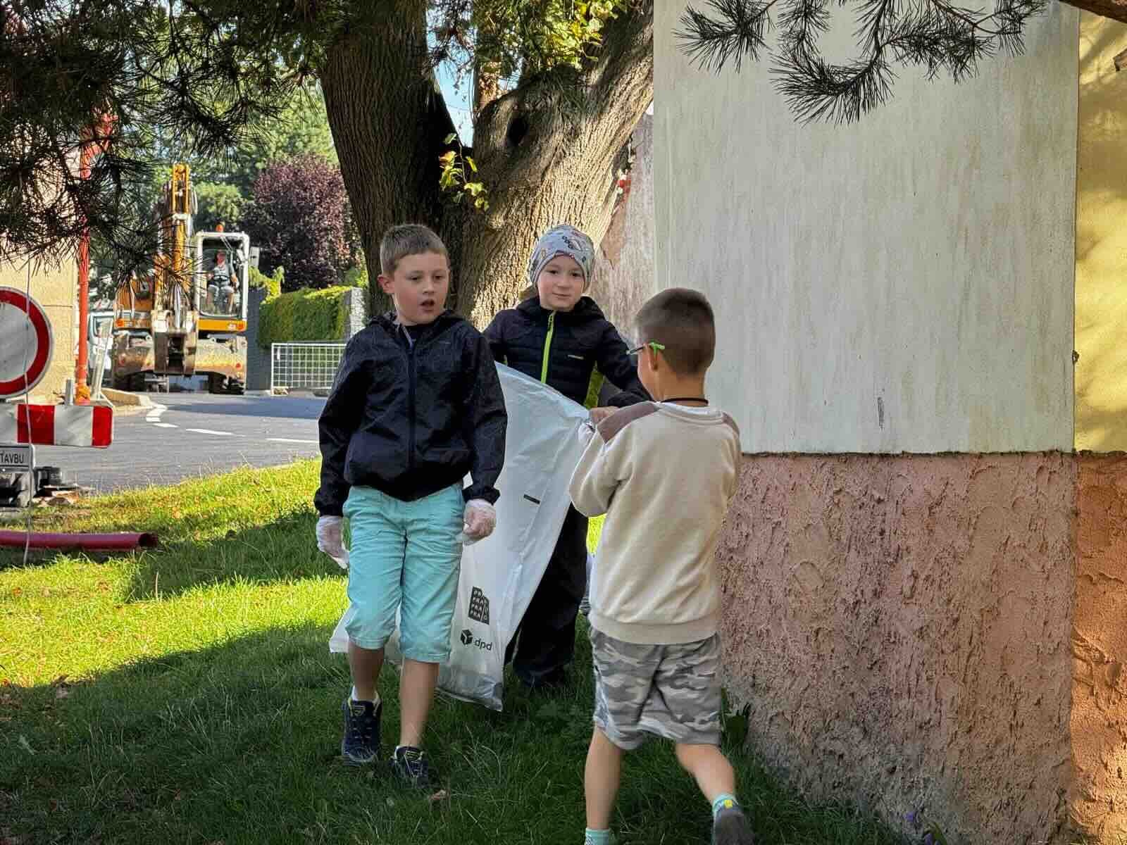 Děti jsme vybavili rukavicemi a pytli na odpadky a vyrazili uklízet okolí školy a náves. Už po krátké chvíli jsme nacházeli plastové lahve, plechovky, papírky a další nepořádek, který do přírody nepatří. Během dvou hodin jsme společně nasbírali mnoho odpadků.