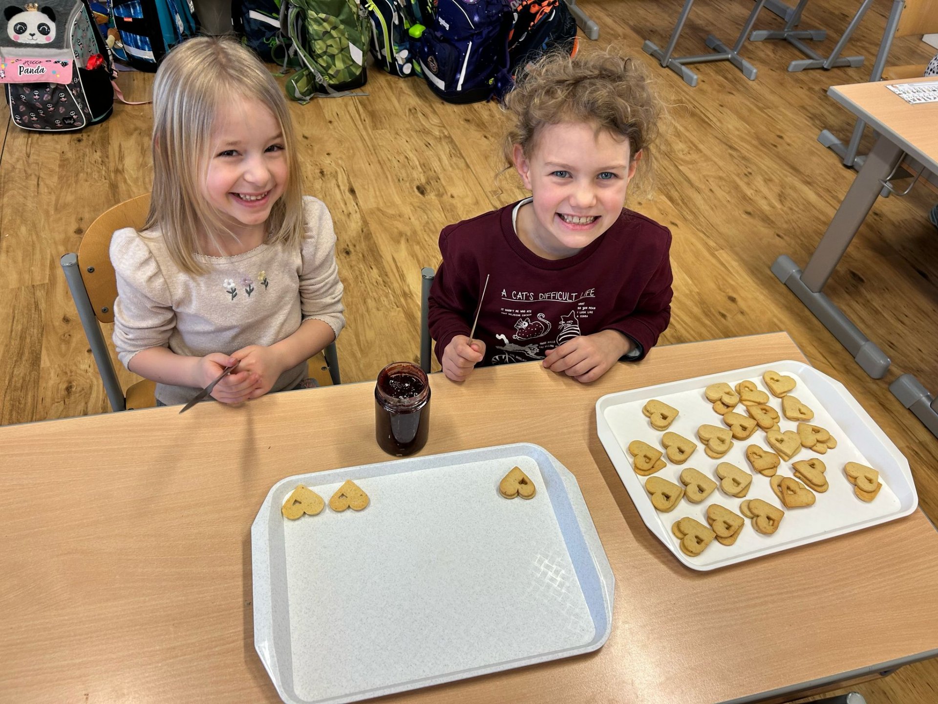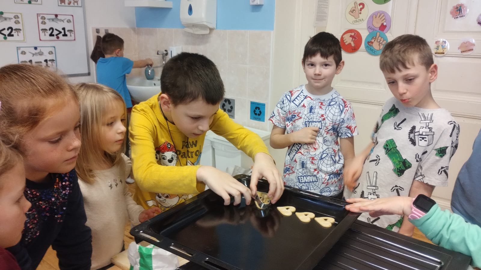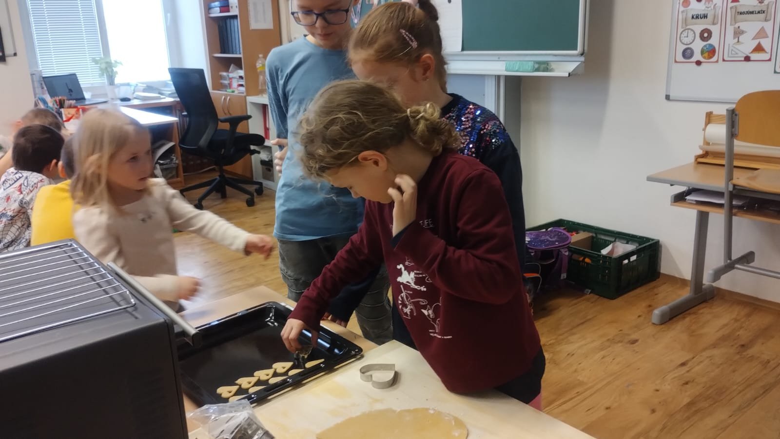 Společně jsme vymysleli, že upečeme srdíčka. Udělali jsme linecké těsto, pekli a mazali