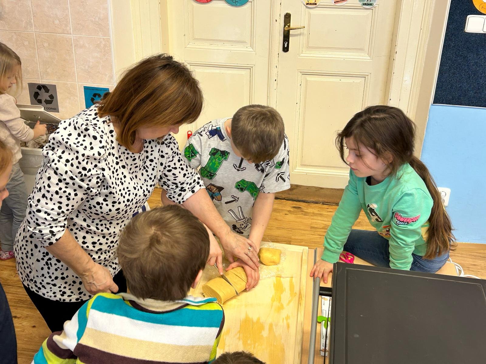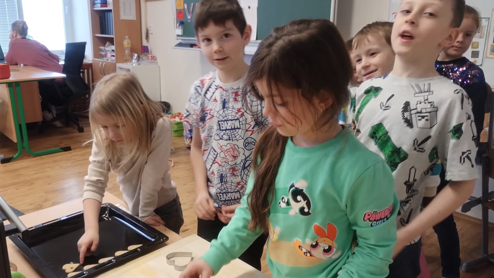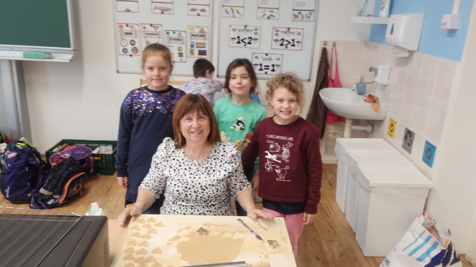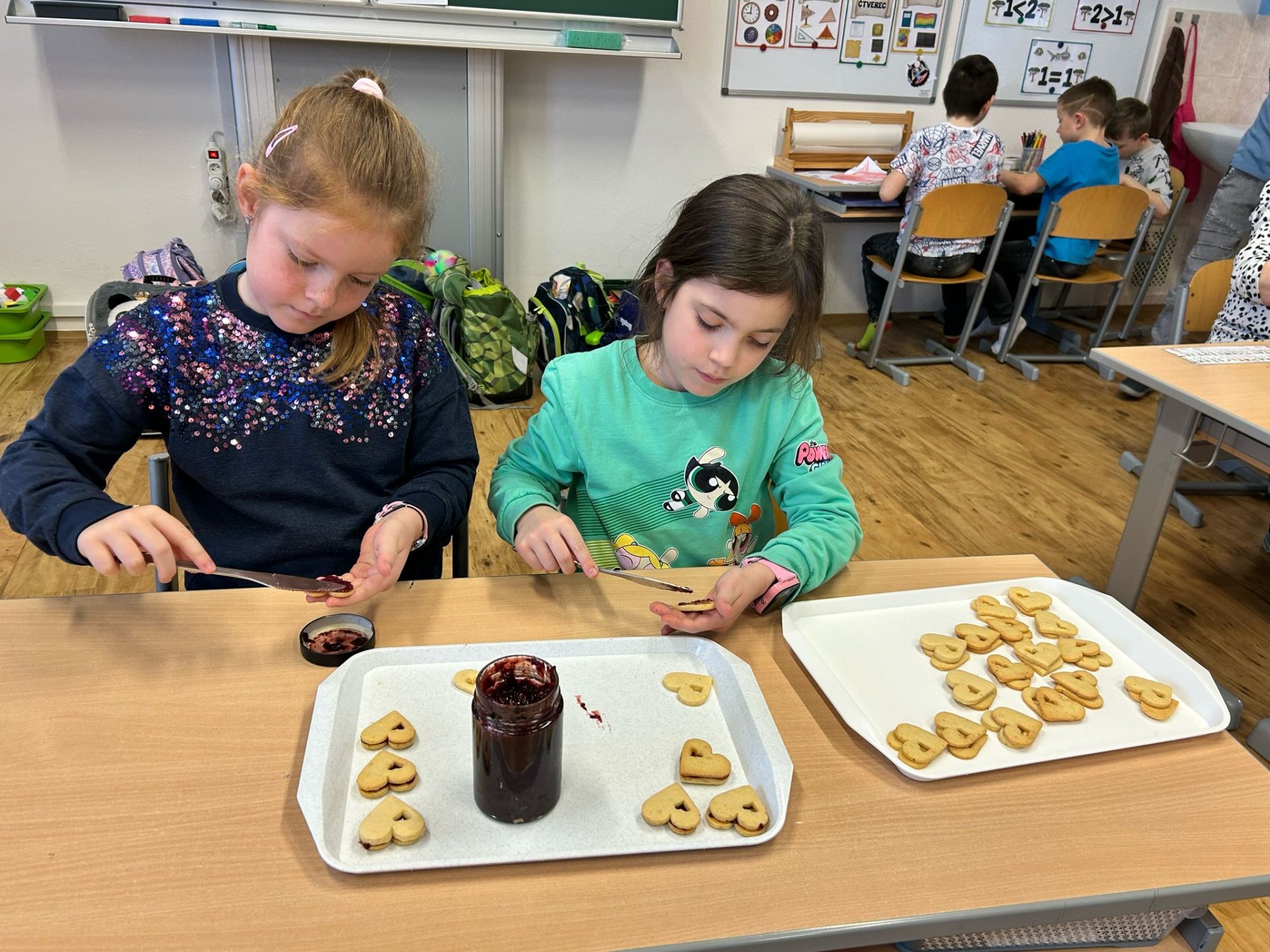 Společně jsme vymysleli, že upečeme srdíčka. Udělali jsme linecké těsto, pekli a mazali