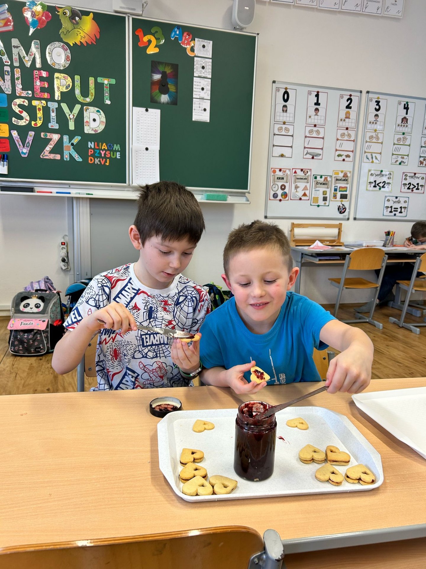je jahodovou marmeládou. Moc jsme si pochutnali a odnesli srdíčko mamince a tatínkovi