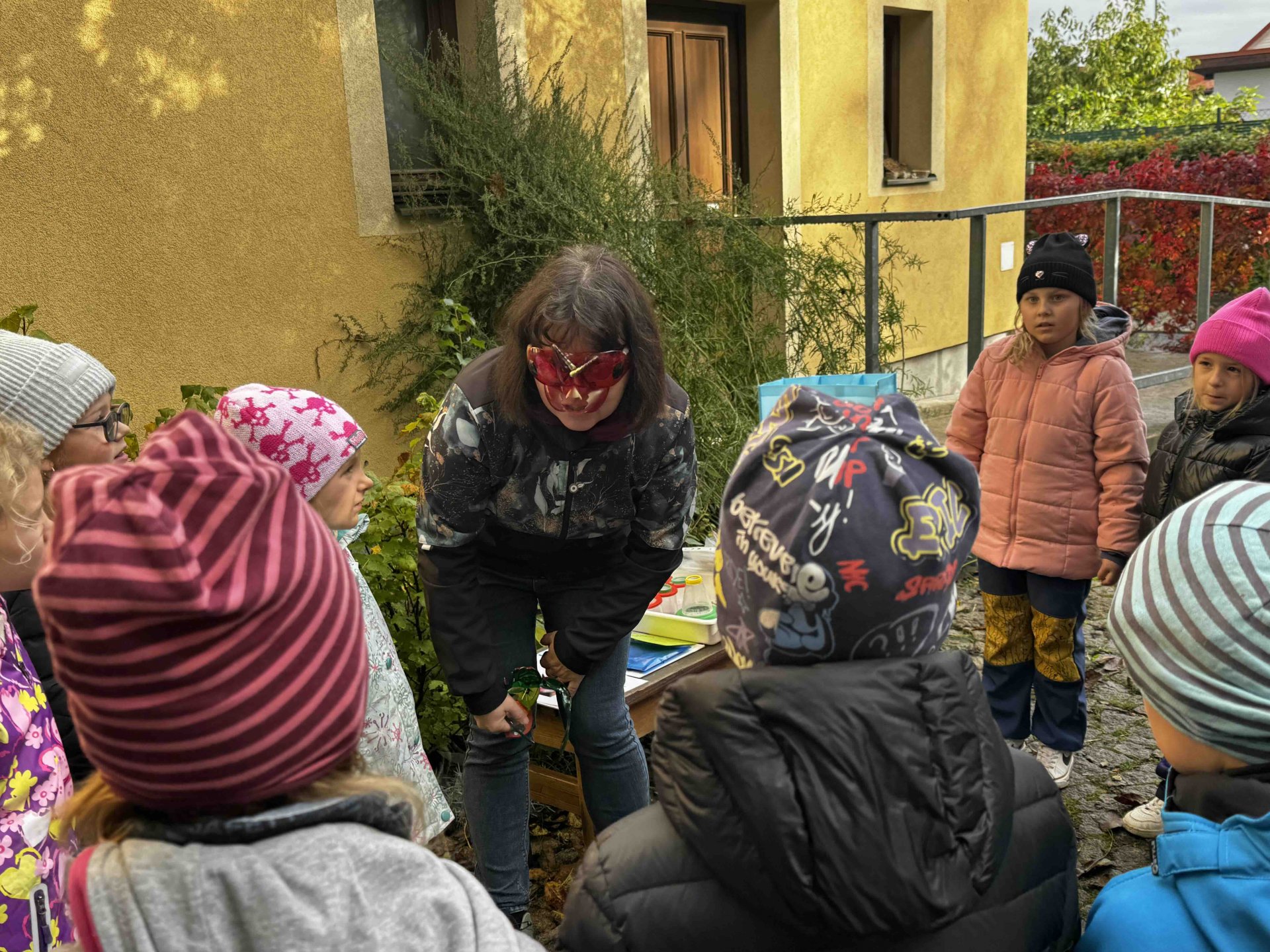 Během programu jsme prozkoumávali, kdo všechno v zahradě žije – objevili jsme nejrůznější broučky, slimáky i pavouky a dozvěděli jsme se, jakou mají v přírodě důležitou roli. Velkým zážitkem bylo ohromné ptačí hnízdo, do kterého jsme si mohli sami vlézt a představit si, jak se v něm cítí malí ptáčci.