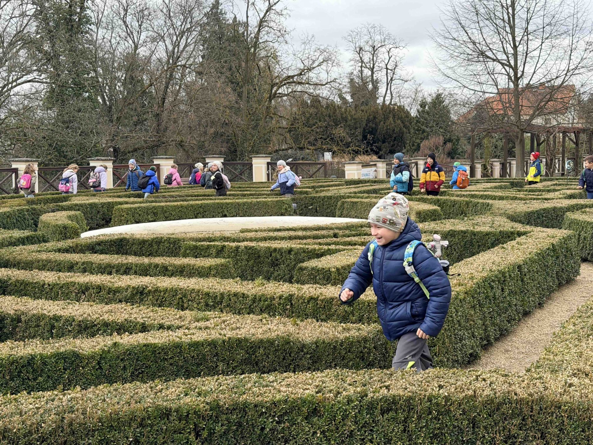 Po prohlídce jsme se přesunuli do zámeckého parku, kde jsme nemohli vynechat místní bludiště. Děti se s nadšením rozběhly hledat cestu ven, nechyběl smích ani trocha soutěžení. Bludiště byla skvělým zakončením celého výletu a děti si při nich užily spoustu pohybu.