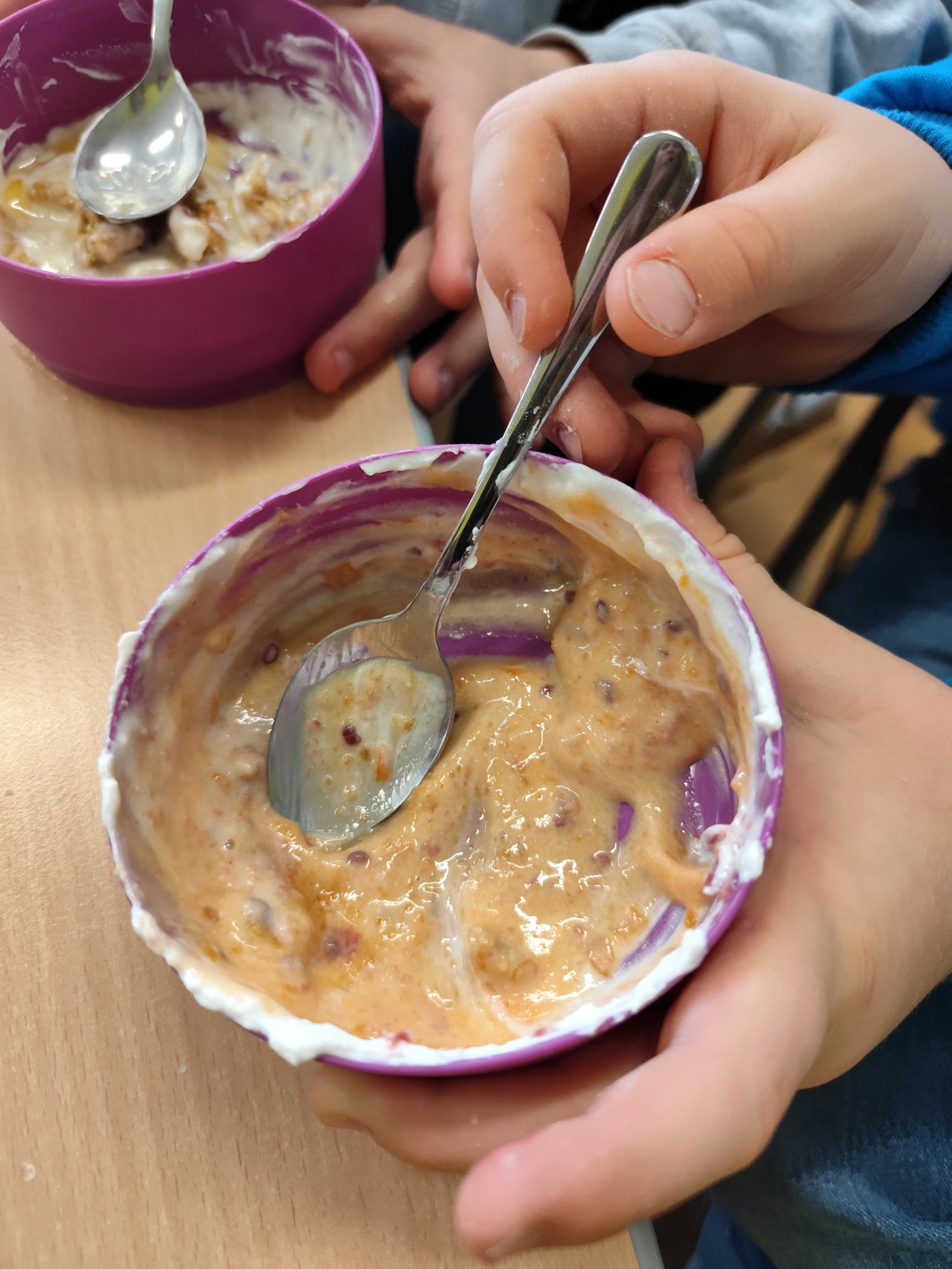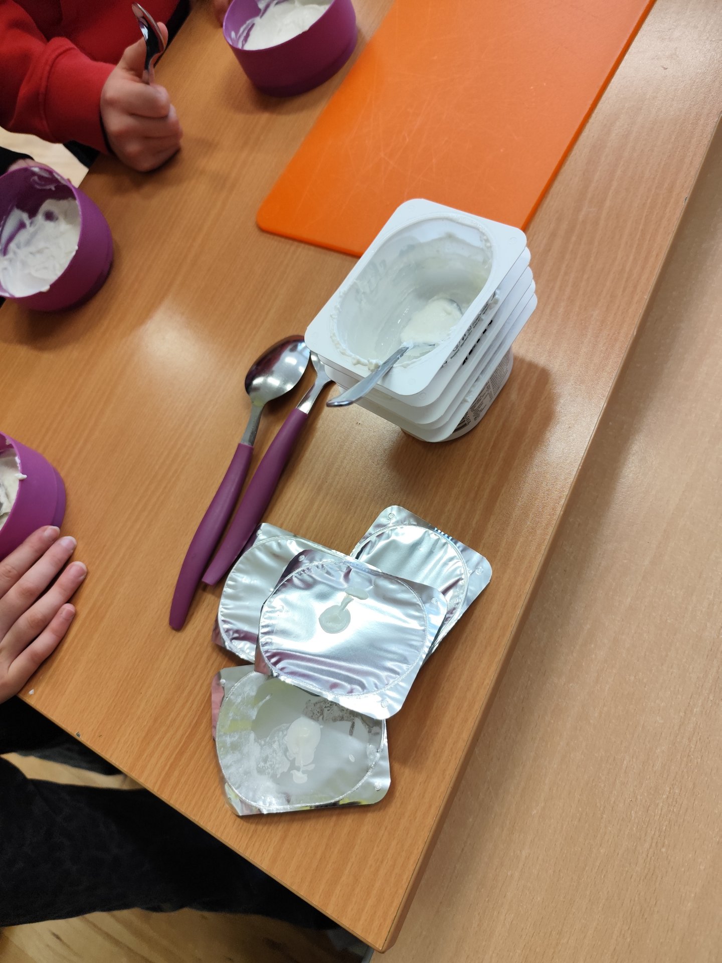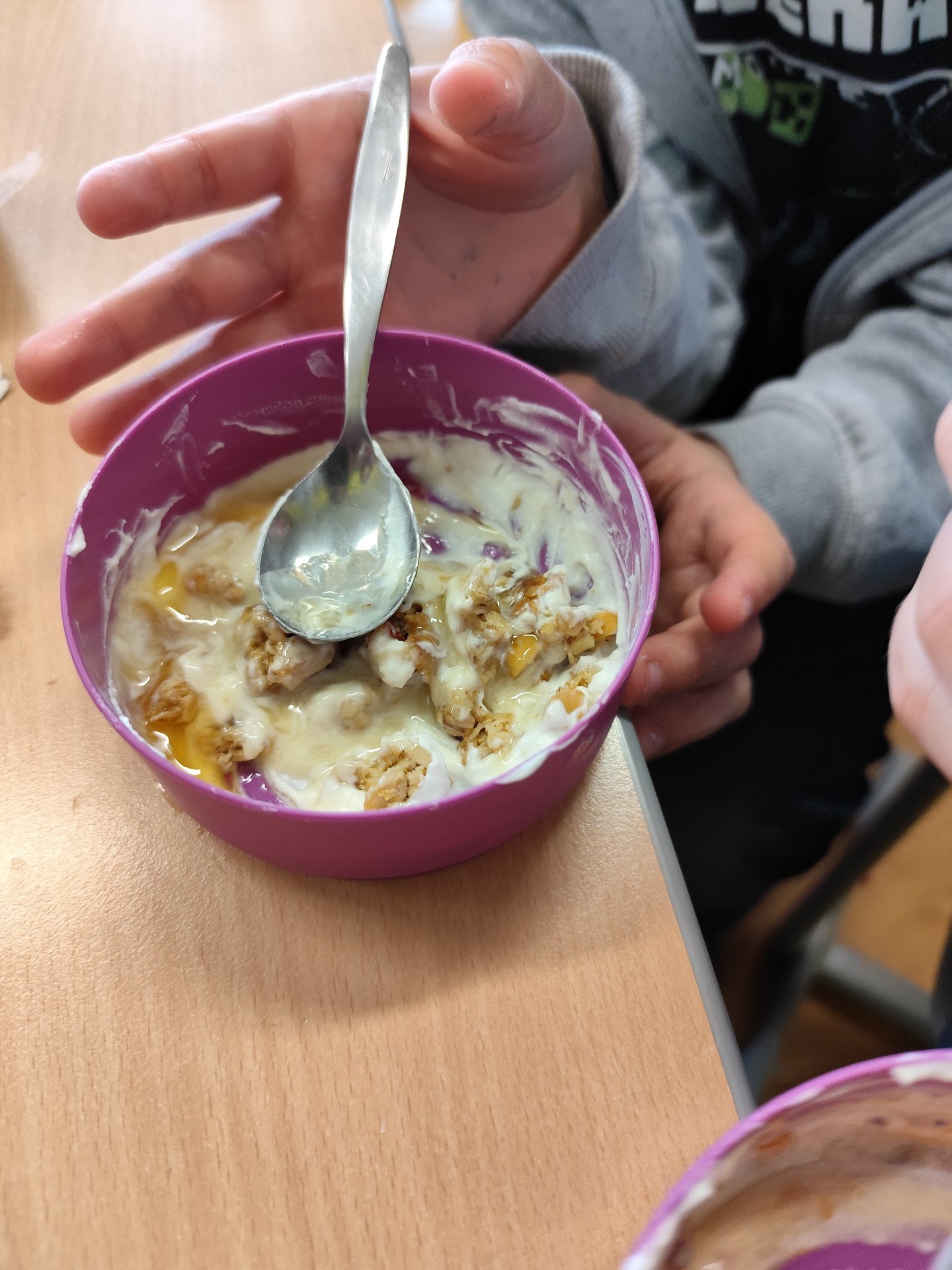 Začali jsme bílými jogurty. Protože víme, že ne každý je má rád samotné, pustili jsme se do vymýšlení, jak je vylepšit. Děti si mohly vybrat z různých dobrot – přidávali jsme müsli, rybízovou, třešňovou i meruňkovou marmeládu a nechyběl ani domácí med. Každý si vytvořil svou vlastní kombinaci podle chuti.