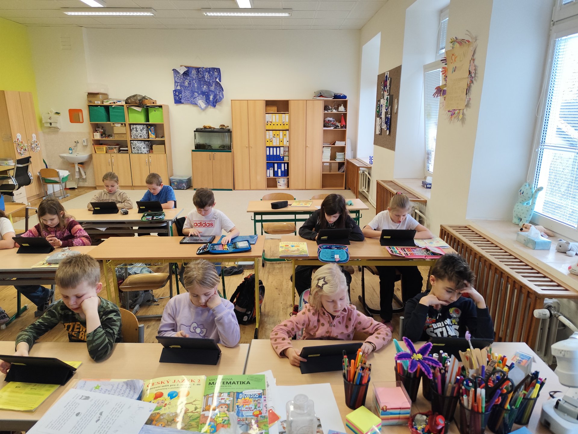 Tento pátek jsme si ve třídě 2. B opět zpestřili výuku využitím našich školních tabletů. Děti se na tuto aktivitu vždy velmi těší, a tak byla práce na tabletech zaslouženou odměnou za jejich celotýdenní snažení a pilnost při učení.