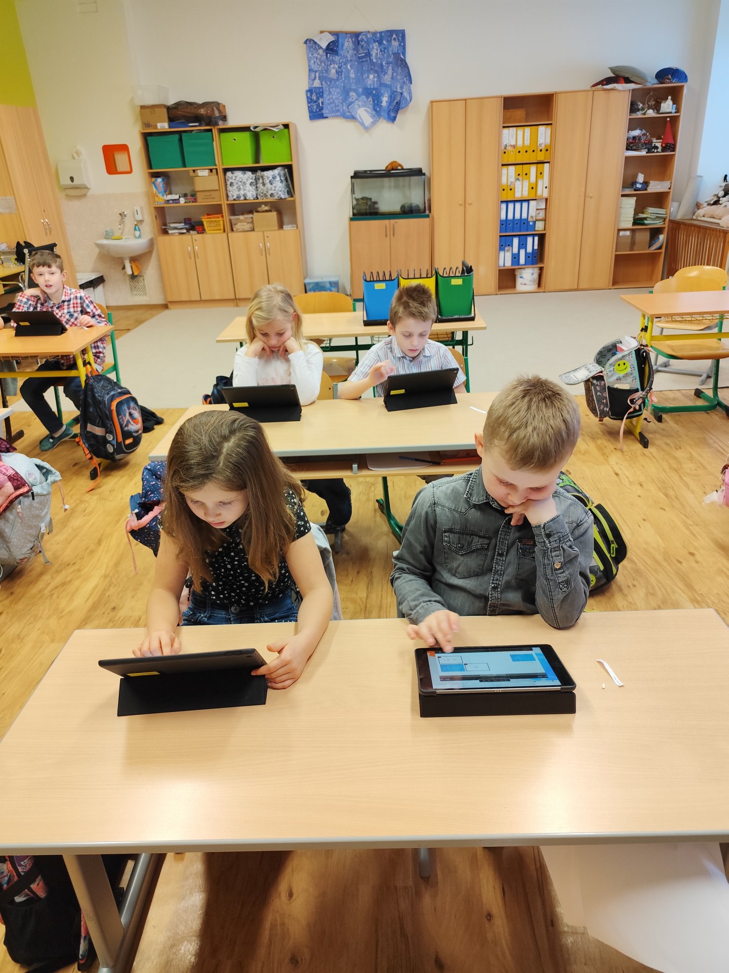 První setkání s tablety hodnotíme velmi pozitivně. Děti pracovaly se zájmem, byly soustředěné a ukázaly, že dokážou nové technologie využívat smysluplně při učení. Těšíme se na další hodiny, ve kterých budeme digitální výuku postupně rozvíjet.