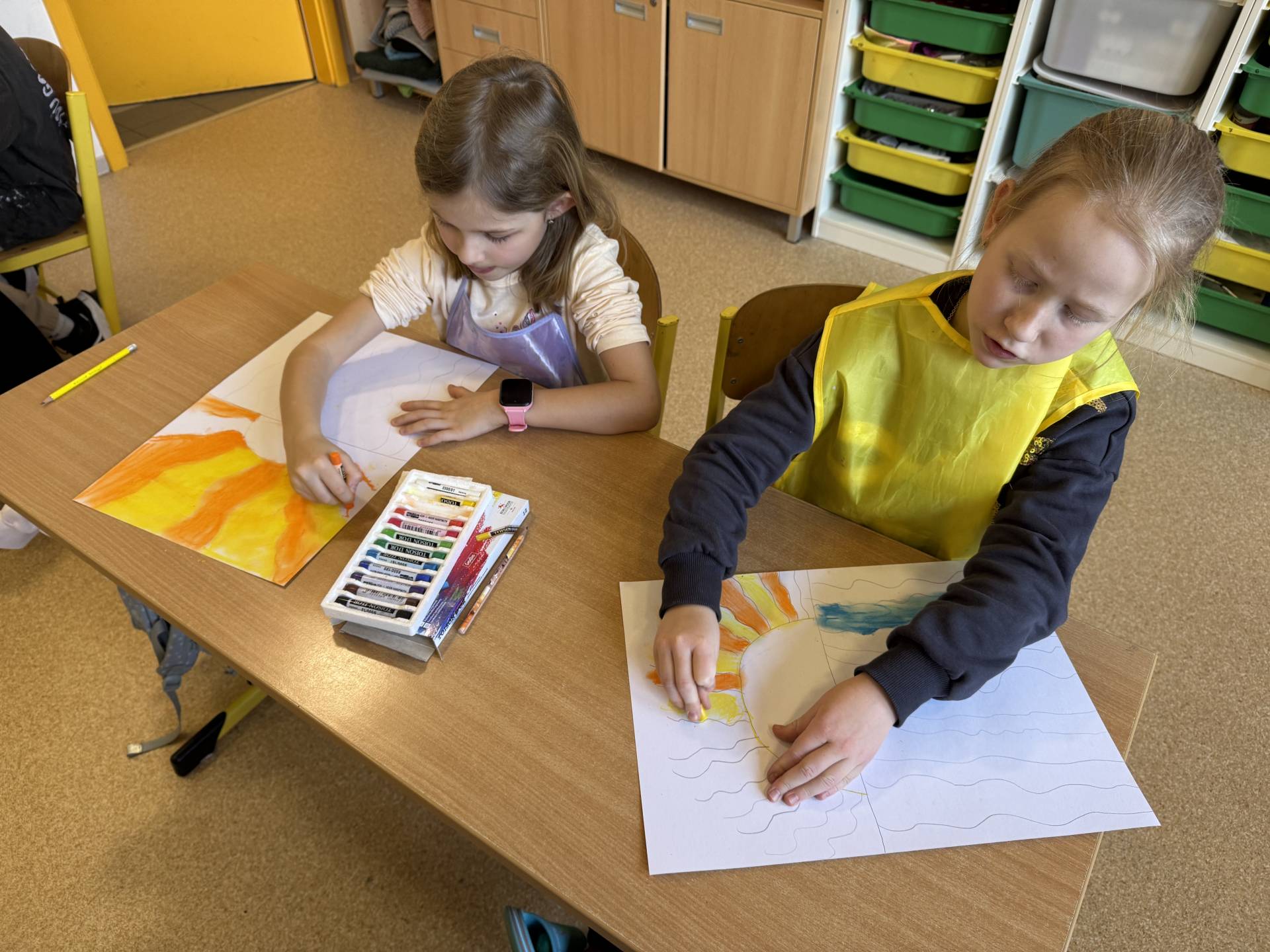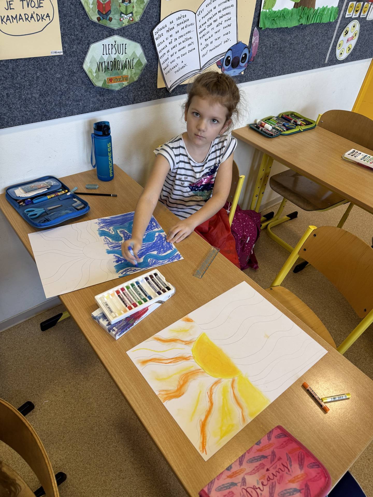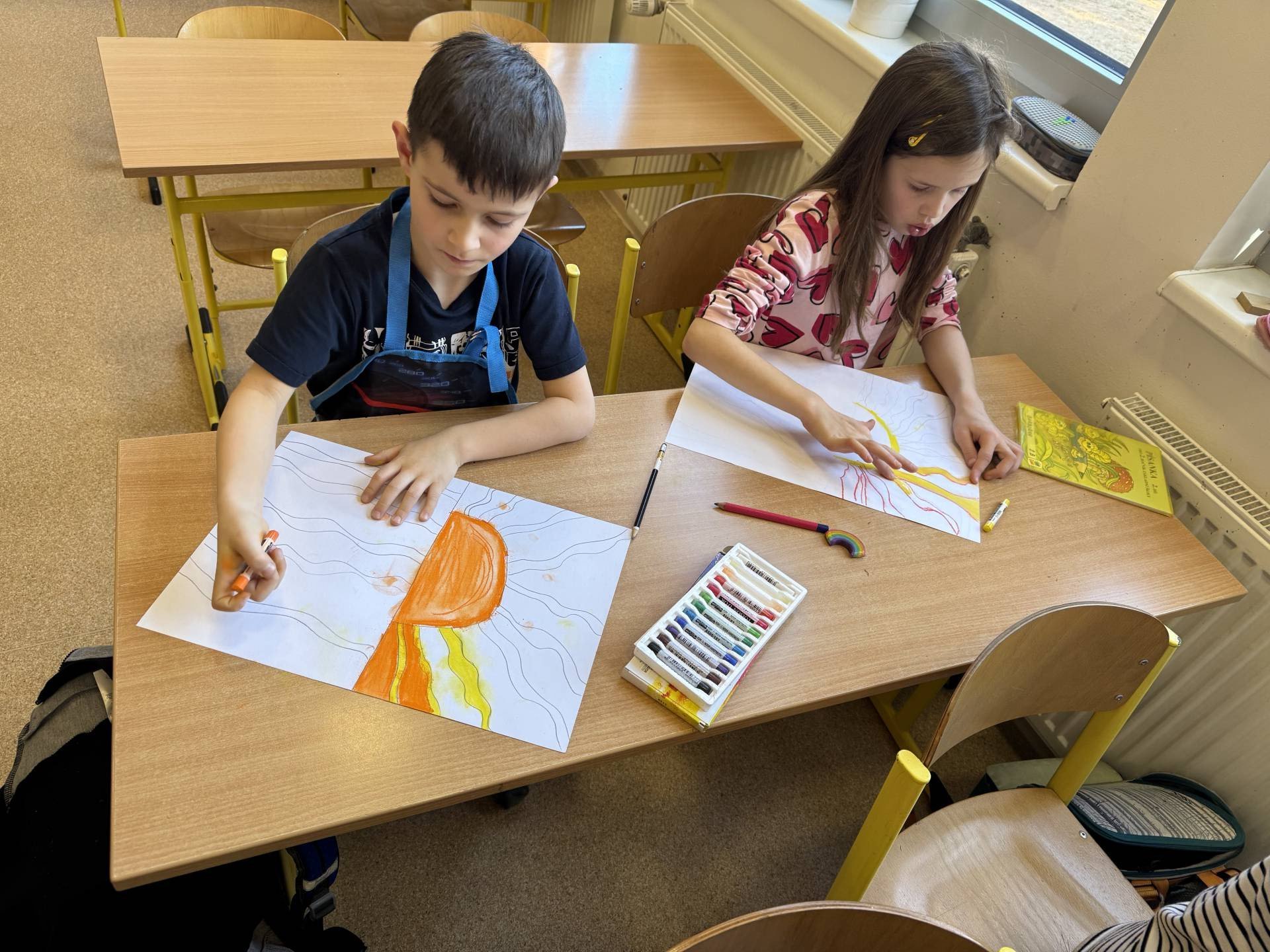 V hodinách výtvarné výchovy zkoušíme různé metody kreslení. A tuto jsme si obzvláště užili. Suché pastely nás prostě baví.