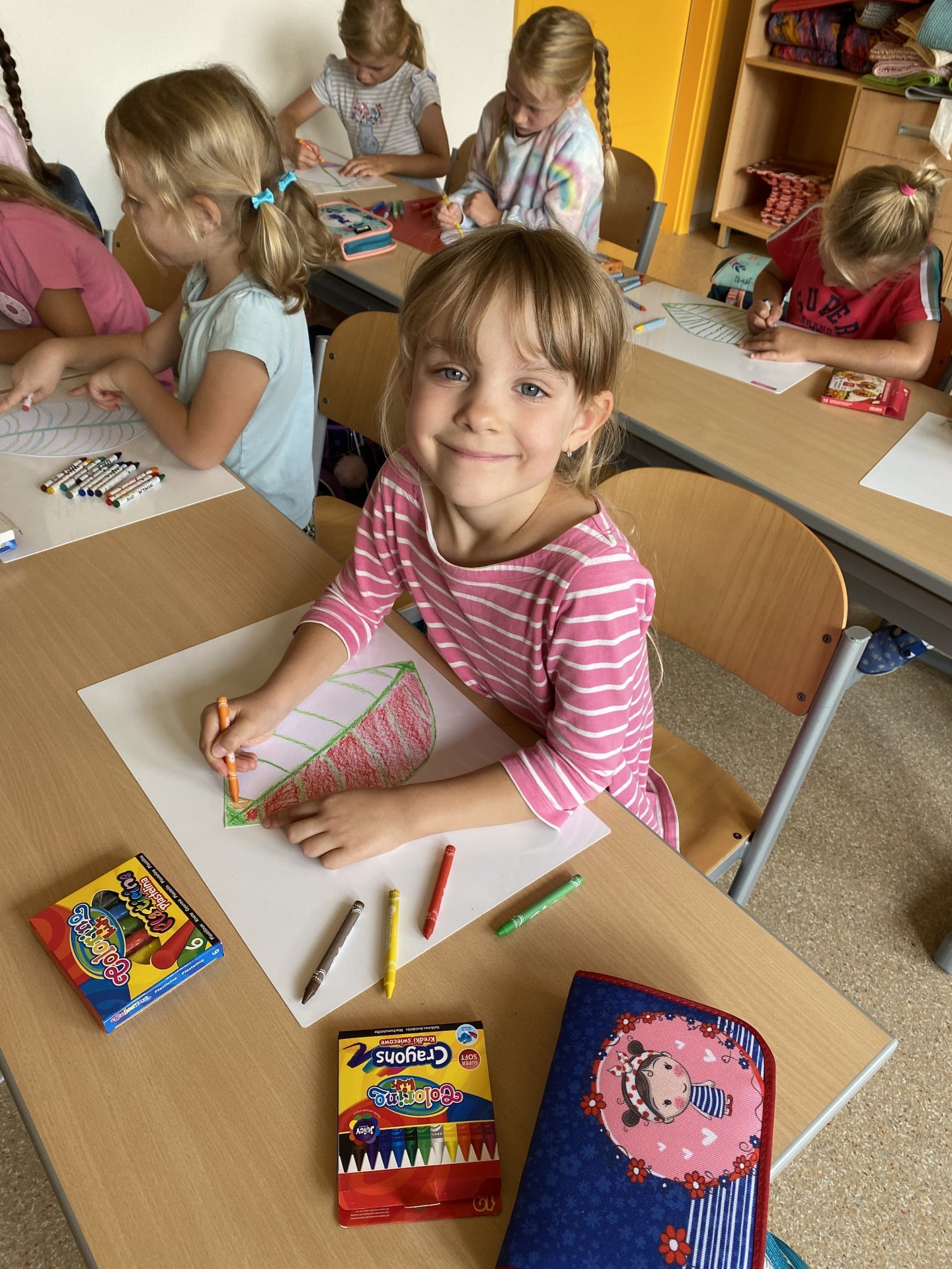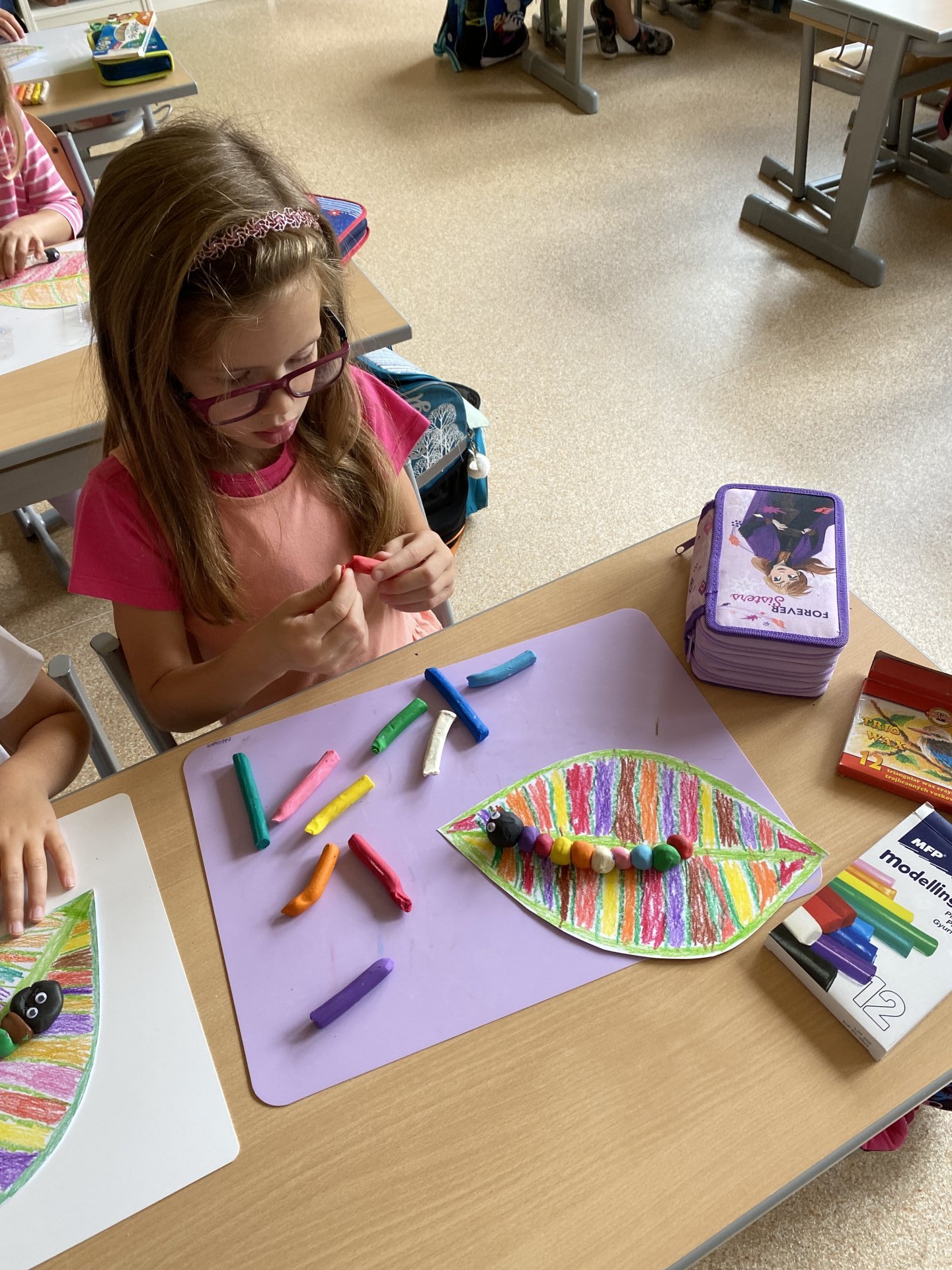 Kdopak se nám to zatoulal do třídy? Že bychom měli ve třídě housenky? Ano....přesně tak....naštěstí jen ty, které které si můžeme sami vyrobit.....