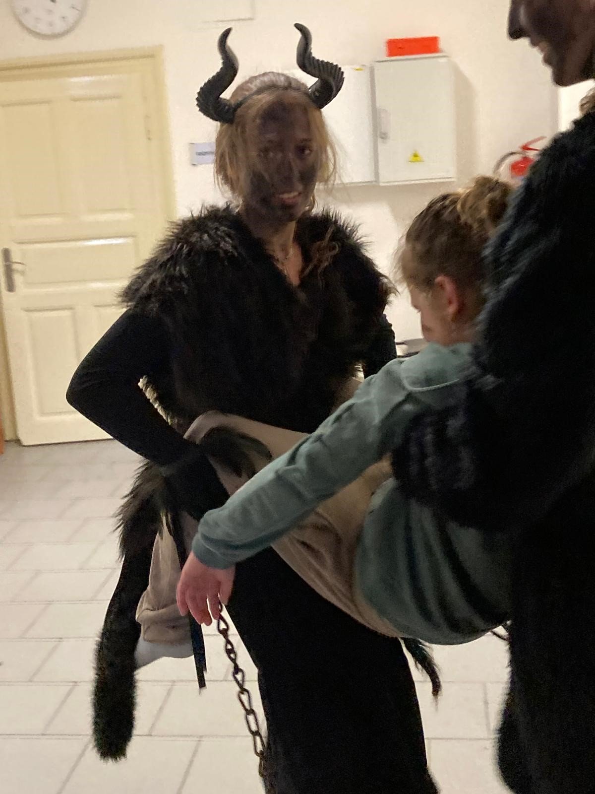 Jsou každým rokem hrozivější a i když víme, že jsou to deváťáci, setkání s nimi není příjemné! Některé z nás si dokonce chtěli odnést s sebou! Velký dík patří paní Piknerové, která pro všechny z naší třídy připravila krásnou nadílku.