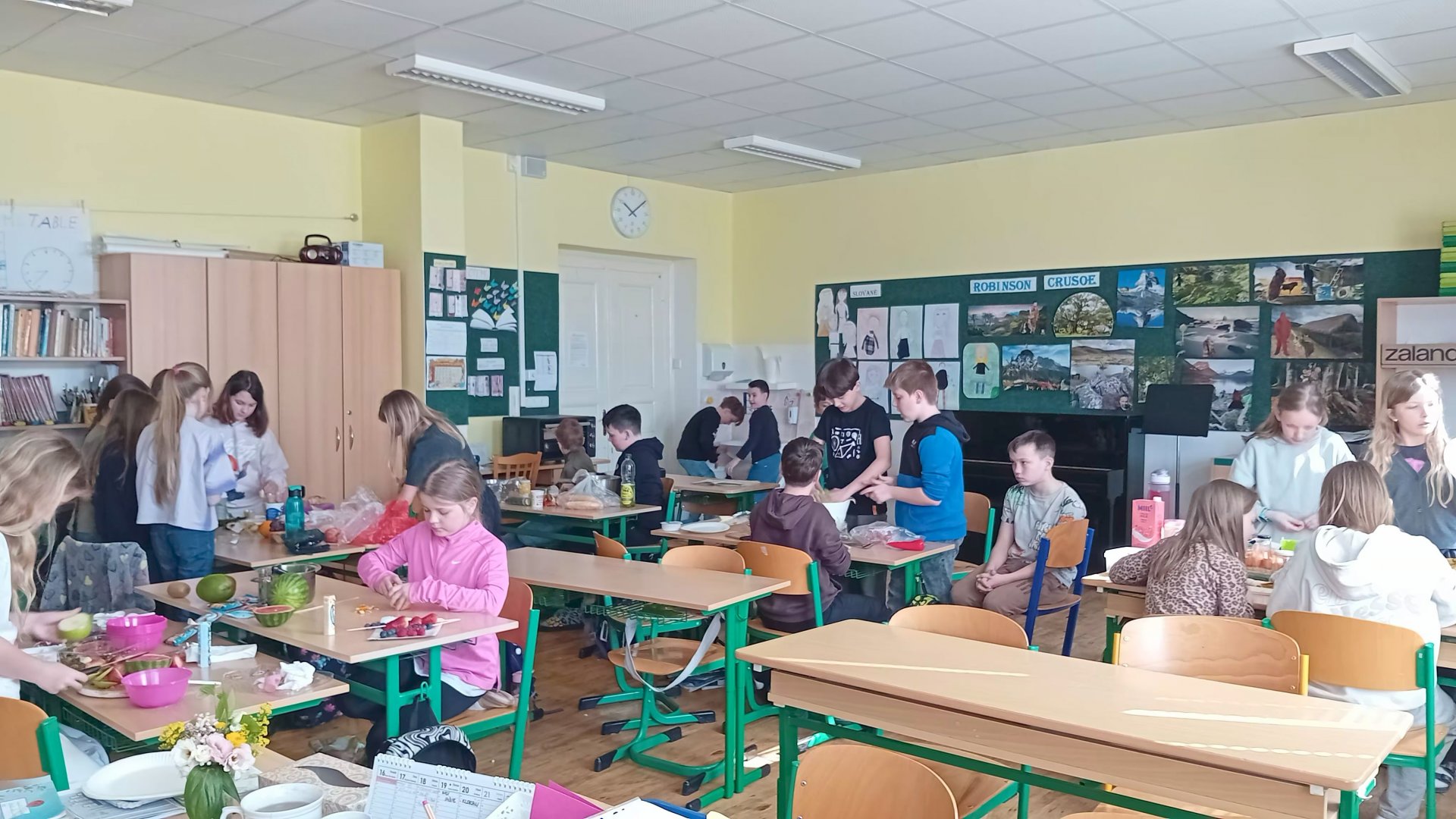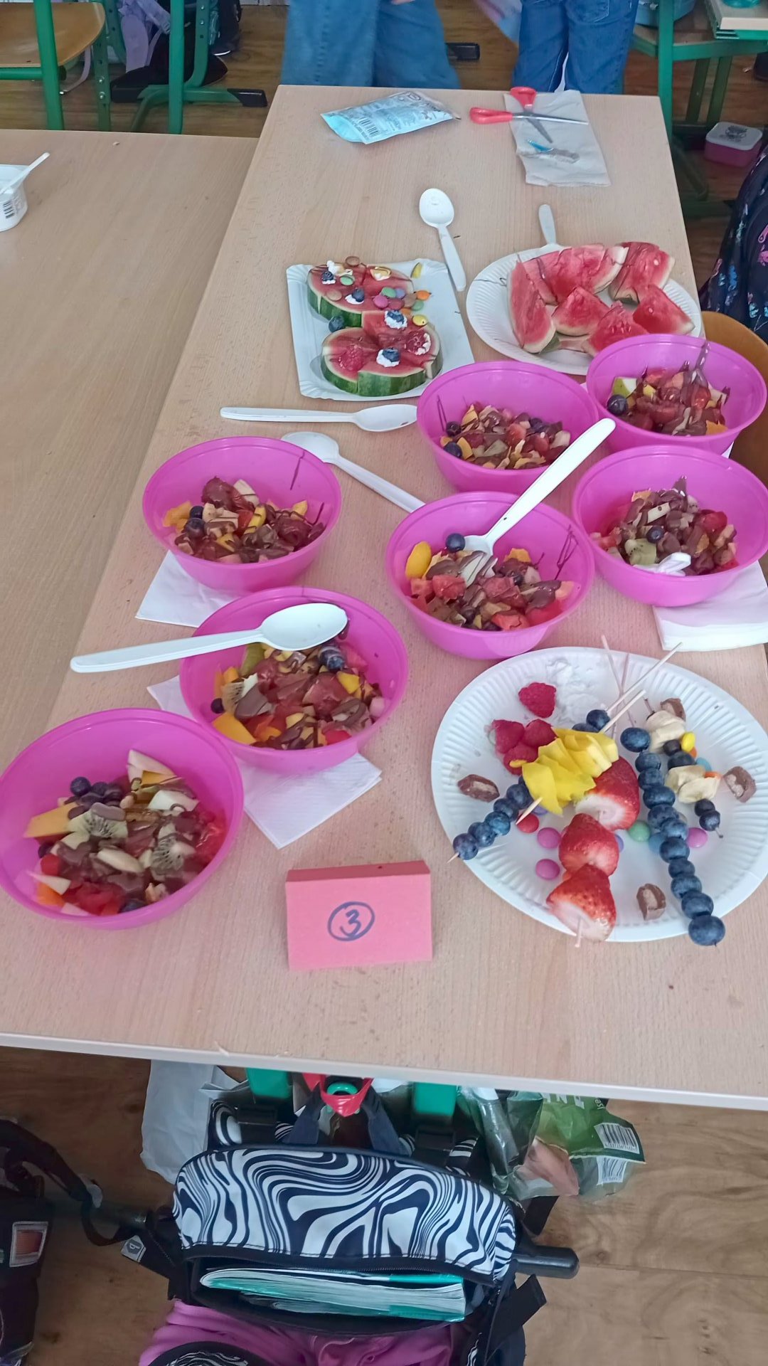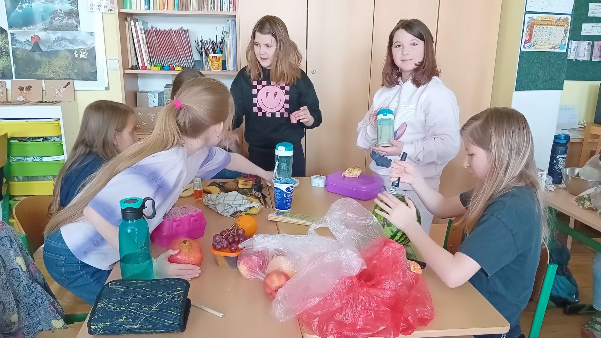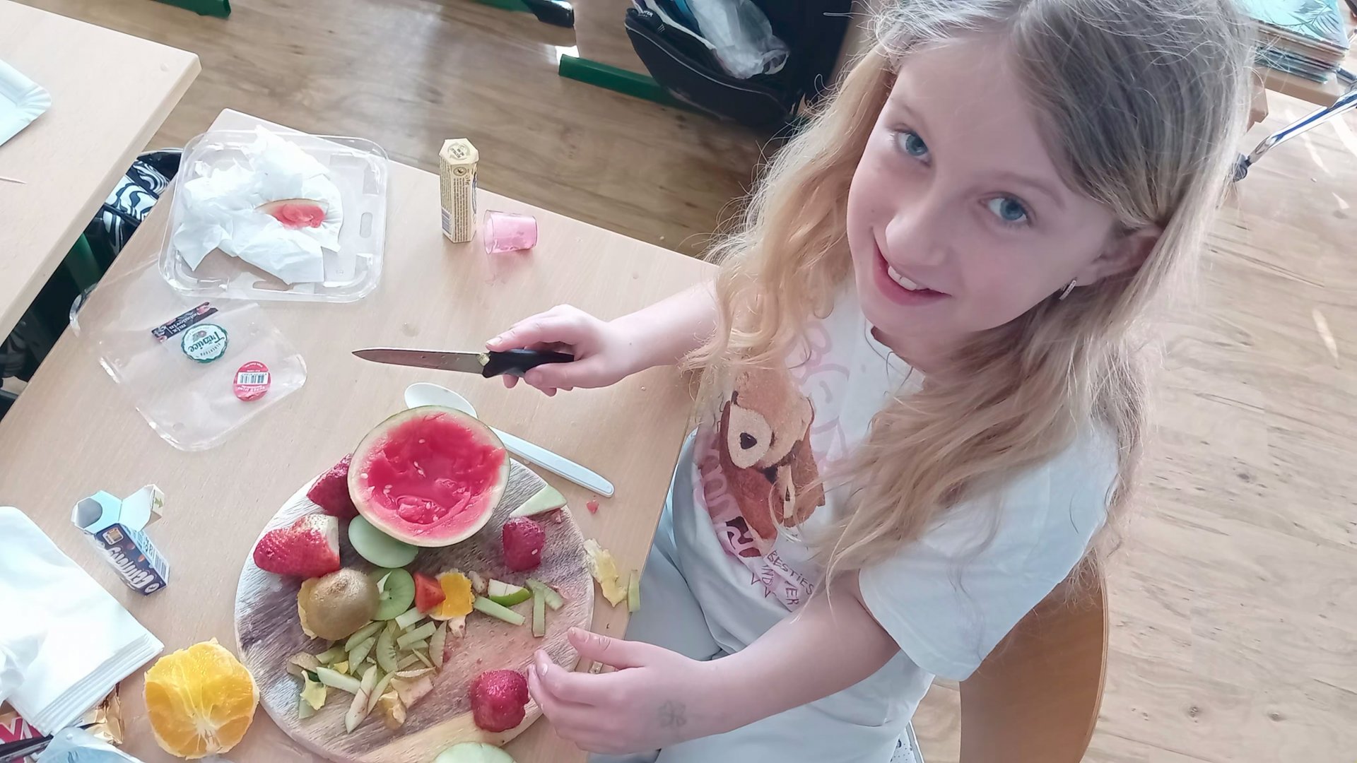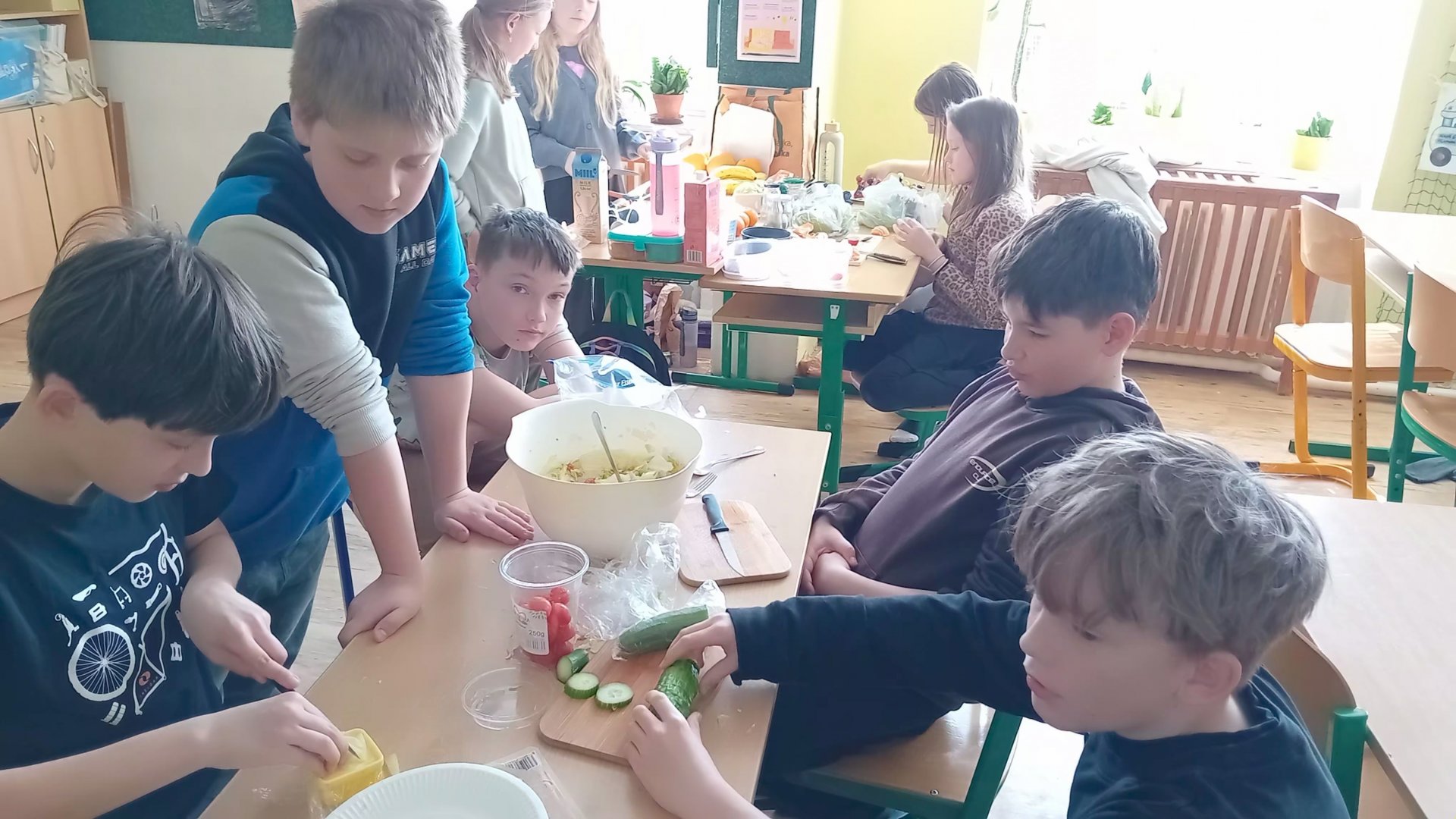 Jídlo nás baví! Připravovat saláty, ať už ovocné nebo zeleninové, zadělat na chléb a upéct ho ve škole, připravit chutnou pomazánkou – to vše se nám sešlo s akcí Mléčné výrobky do škol, kdy jsme mohli ochutnat různé druhy sýrů – žervé, plátkové, kravské, kozí – a zároveň je použít jako ingredienci při vytváření vlastních pokrmů. Pracovali jsme ve skupinách. Nakonec jsme se navzájem ohodnotili, a to nejen chuť, ale i estetickou stránku pokrmu. A že bylo nač koukat!