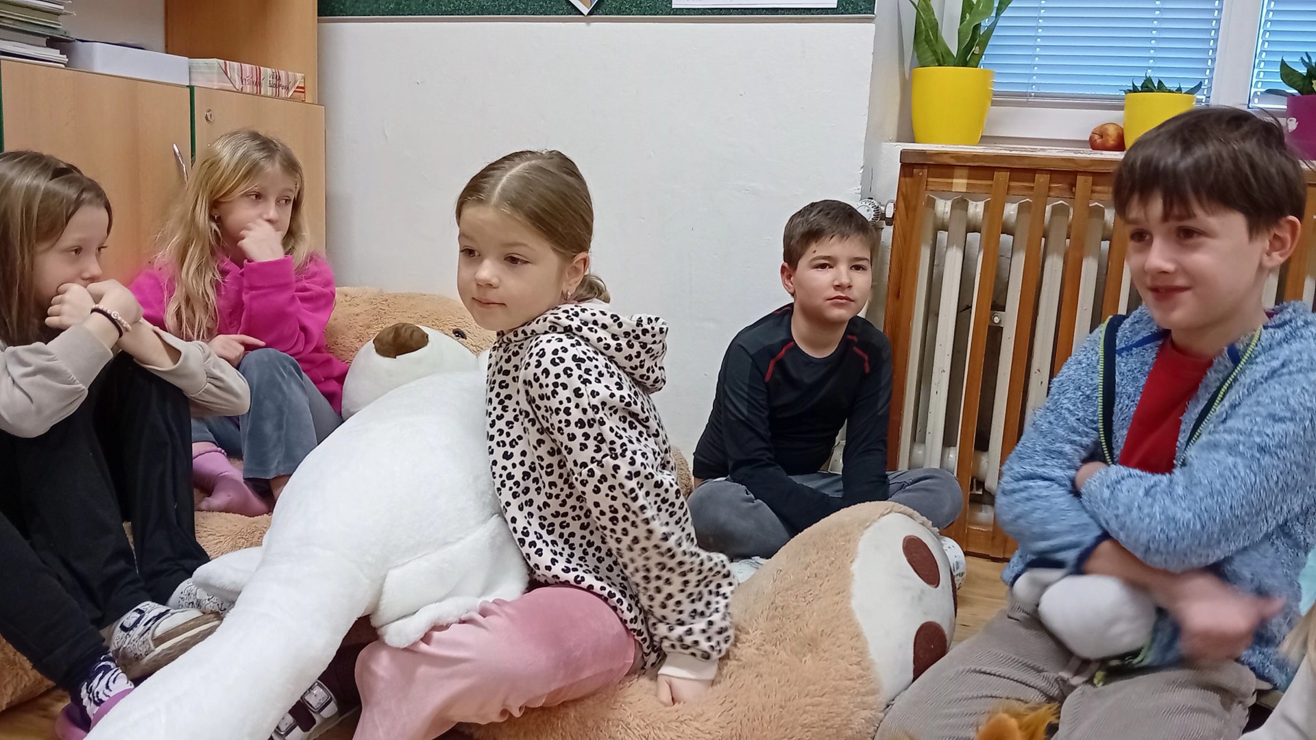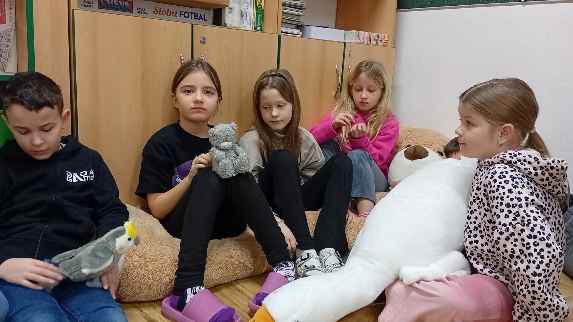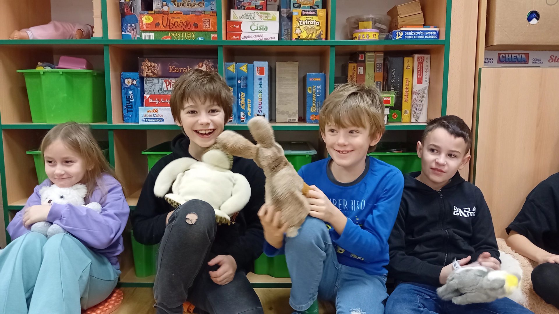 Nápad přinést si do školy svého oblíbeného plyšáka přišel od dětí při hodině českého jazyka. Někteří se nemohli rozhodnout, a tak přinesli rovnou dva. Sešly se nám opravdu zajímavé kousky, nejstaršímu plyšákovi bylo 28 let, ten největší zase svou velikostí předčil i paní učitelku. A tak jsme měli na konci ledna ve třídě plno, neb počet přítomných se rázem zdvojnásobil. Z fotek jest patrno, jak silný je vztah dětí k jejich plyšovým mazlíkům.