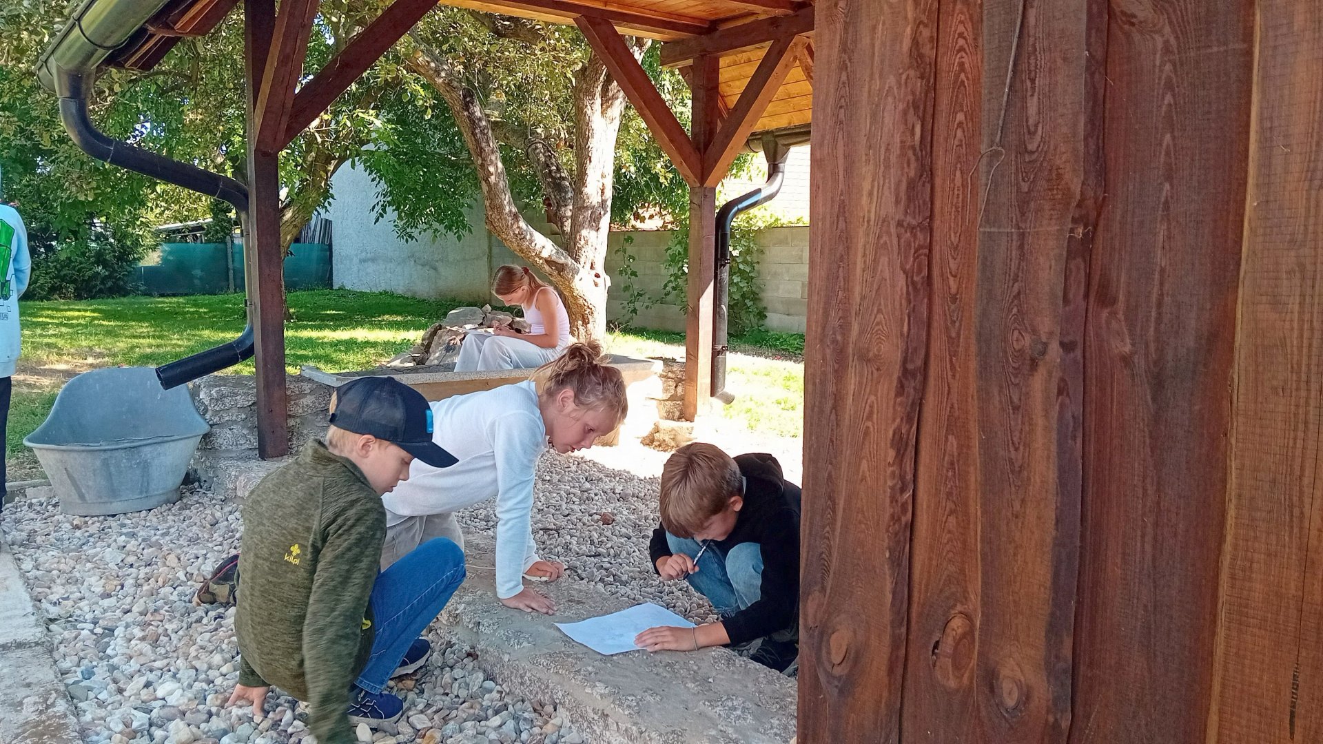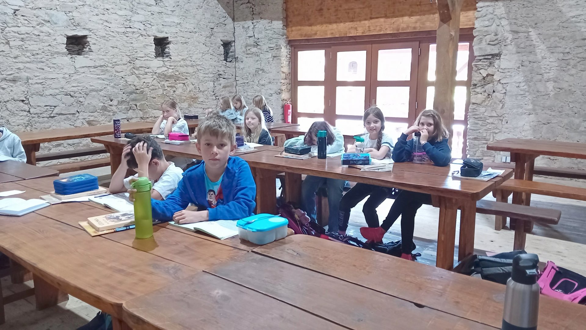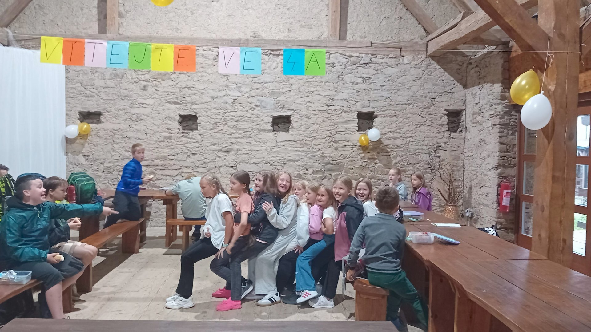Třebohostice procházely během celého léta rekonstrukcí silnice, což s sebou přineslo i výrazné změny kolem školy. Skládka stavebního materiálu a výkopy nám nedovolily vrátit se do školních lavic hned 1.září, a tak začal celý první stupeň výuku v náhradních prostorách. Naše třída se učila ve Škvoreckém dvoře, ve stodole, kde se obvykle odehrávají svatby a hostiny. Naskytl se nám jedinečný zážitek. Kdykoli bylo hezké počasí, mohli jsme vyběhnout ven na obrovskou zahradu, nahřát se na zápraží nebo si s paní asistentkou zacvičit jógu.