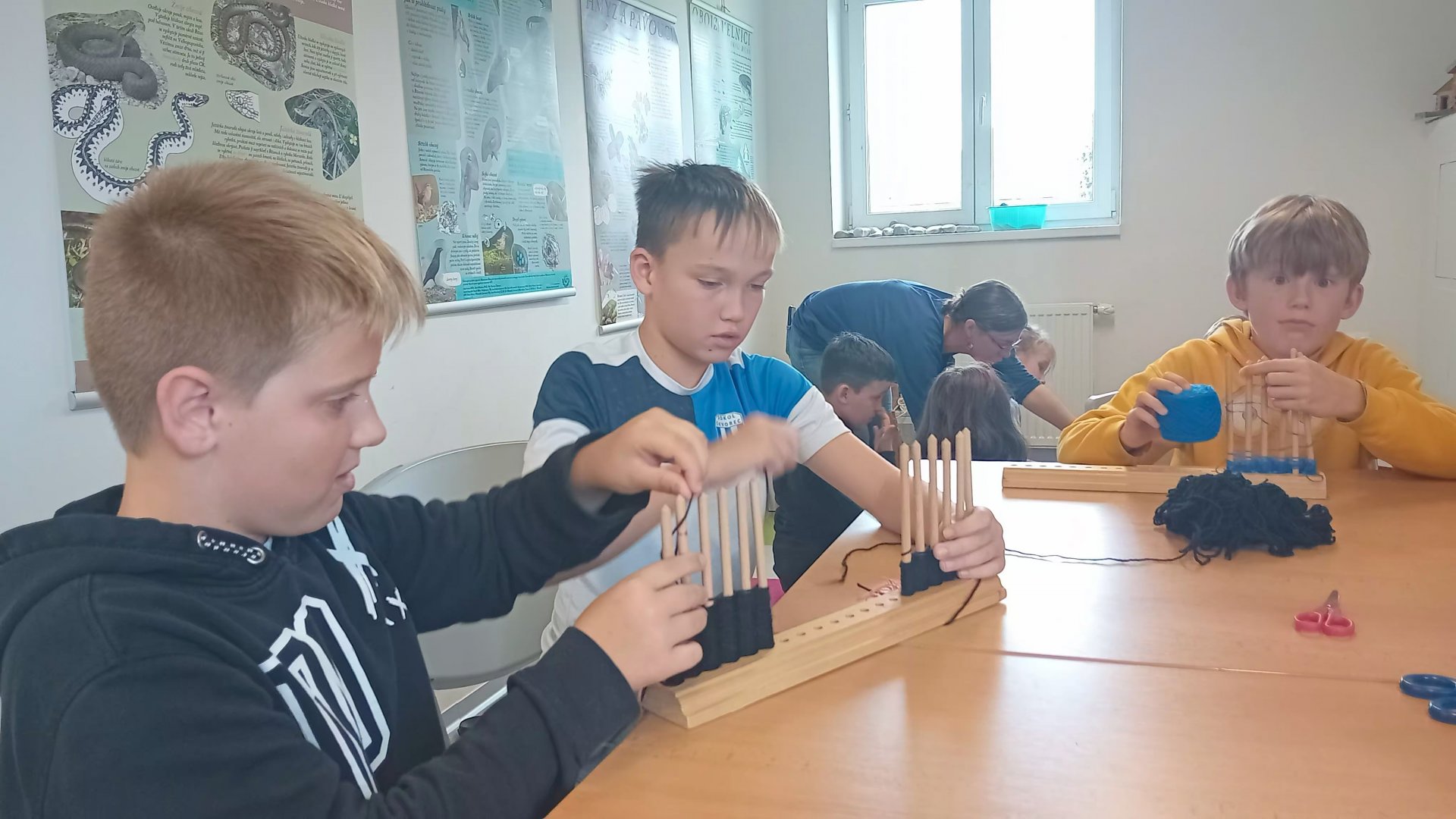Těsně před podzimními prázdninami jsme vyrazili do muzea v Říčanech, které nabízí mnoho zajímavých programů pro školy. My jsme si vybrali Stará řemesla. Paní lektorka přinesla nástroje a nářadí, která už dnes nejsou běžná, například šídlo, lub, modlu, vřeteno. Povídali jsme si o řemeslech, která už dnes neexistují, ale i o těch, která potřebujeme dnes. Rozdělili jsme se do čtyř skupin a během dopoledne jsme si vyzkoušeli práci bednáře, tkalce, provazníka a pekaře. Domů jsme si každý odnesli vlastnoruční výrobek.