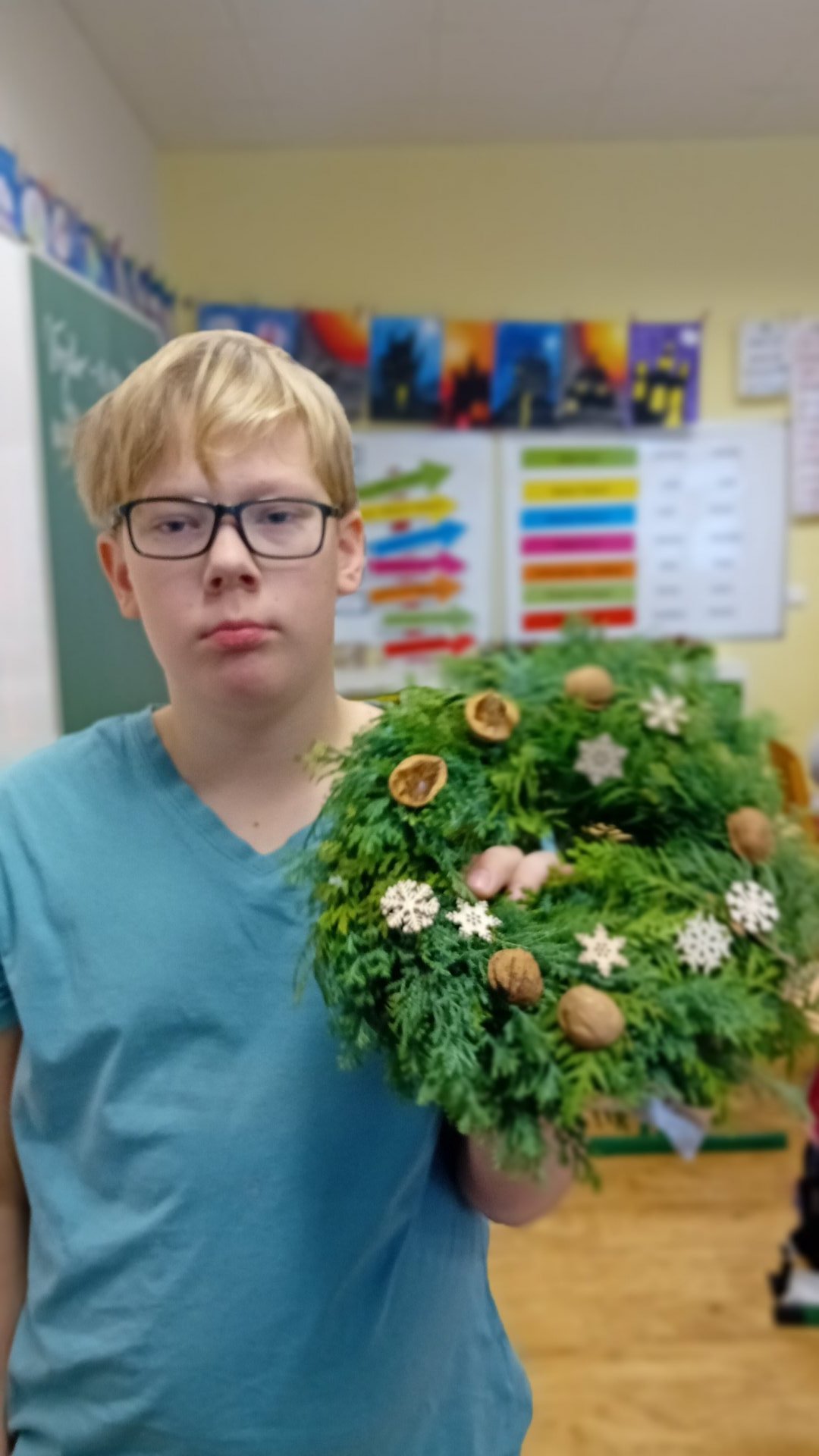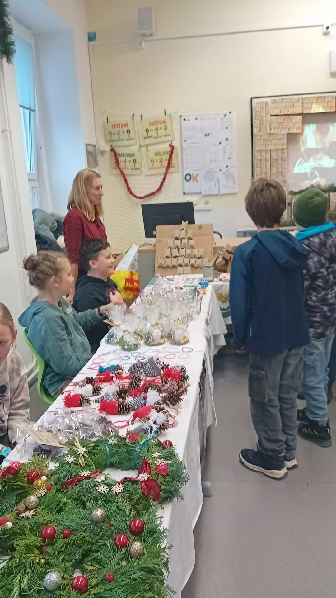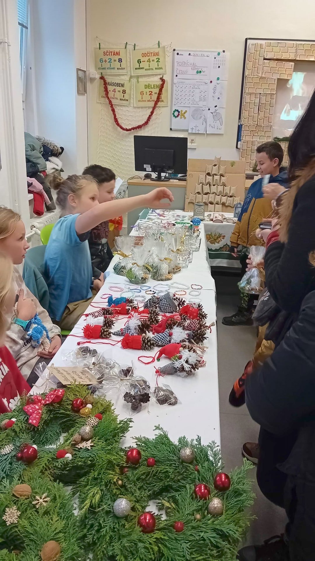 Poslední listopadový čtvrtek s sebou přinesl nejen bohatou sněhovou nadílku, ale také vánoční dílny. Letos jsme se do výroby pustili s nebývalou vervou, a tak jsem upekli vanilkové rohlíčky, nazdobili věnce, slepili dárkové krabičky, vytvořili celé adventní kalendáře, nazdobili svícny, navlékli korálkové náramky a mnoho dalšího. O přestávce jsme nabrali sil koulovačkou na školním pozemku. V neděli na jarmark pak dorazili rodiče, kteří nás nejen podpořili koupí výrobků, ale mnozí také sami přinesli věci, které jsme mohli nabídnout návštěvníkům této předvánoční akce. Naše třída vytěžila neuvěřitelných 7 634 Kč.