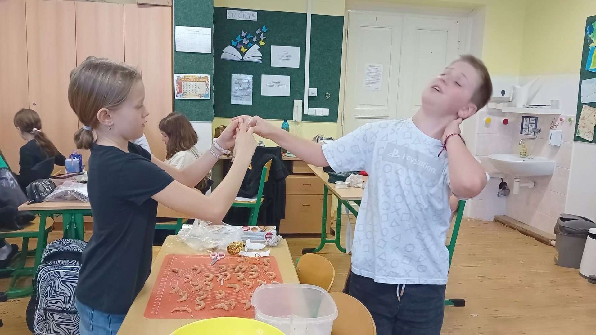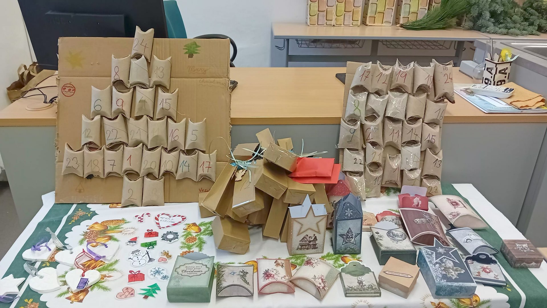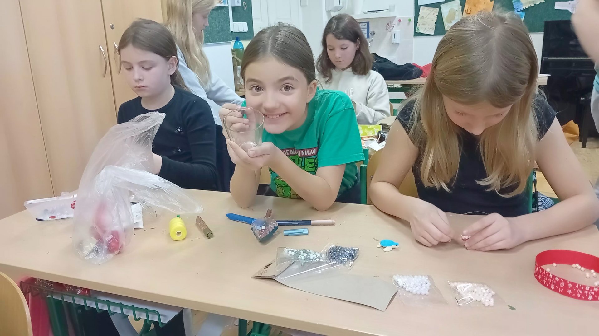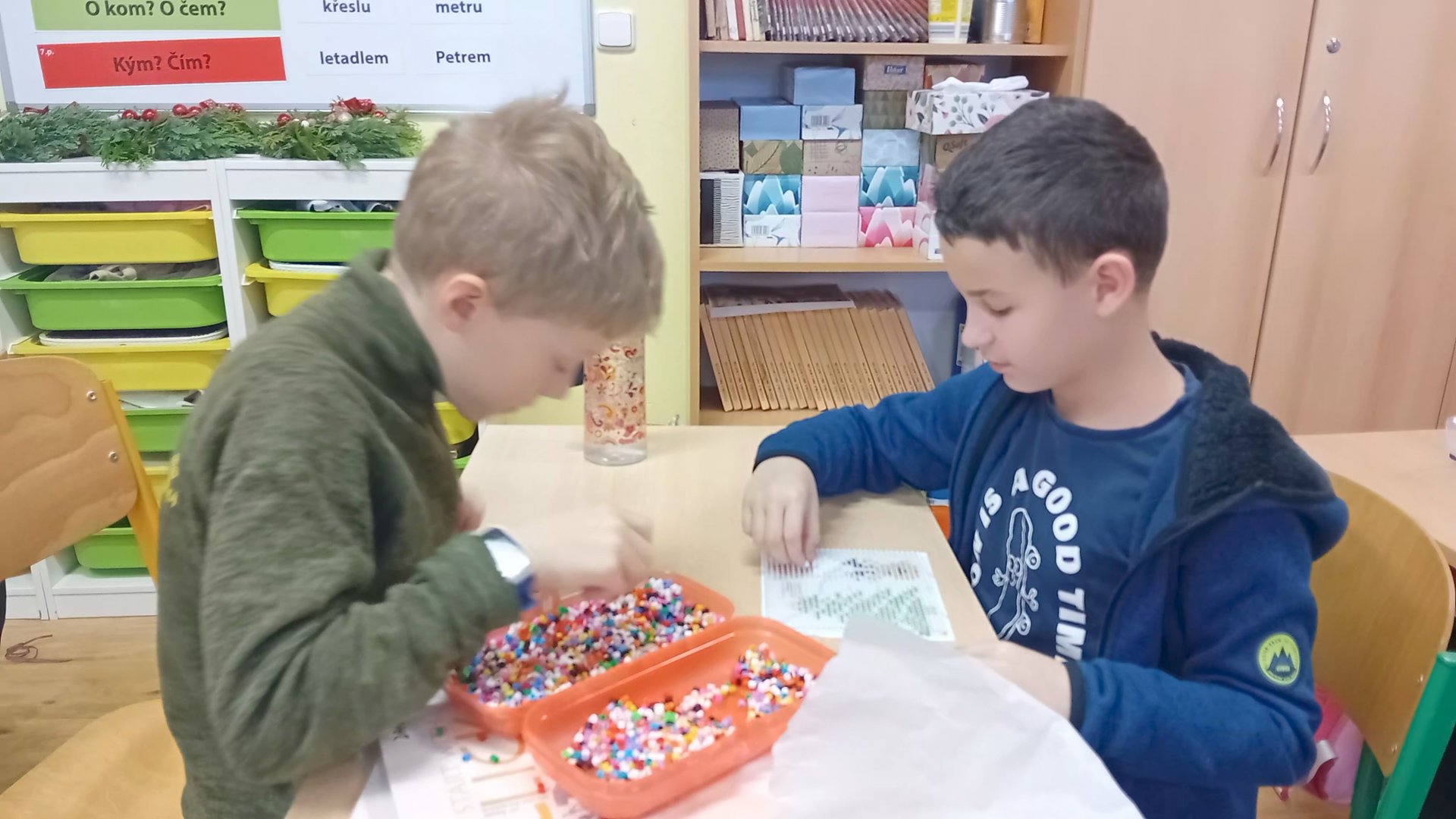 Poslední listopadový čtvrtek s sebou přinesl nejen bohatou sněhovou nadílku, ale také vánoční dílny. Letos jsme se do výroby pustili s nebývalou vervou, a tak jsem upekli vanilkové rohlíčky, nazdobili věnce, slepili dárkové krabičky, vytvořili celé adventní kalendáře, nazdobili svícny, navlékli korálkové náramky a mnoho dalšího. O přestávce jsme nabrali sil koulovačkou na školním pozemku. V neděli na jarmark pak dorazili rodiče, kteří nás nejen podpořili koupí výrobků, ale mnozí také sami přinesli věci, které jsme mohli nabídnout návštěvníkům této předvánoční akce. Naše třída vytěžila neuvěřitelných 7 634 Kč.