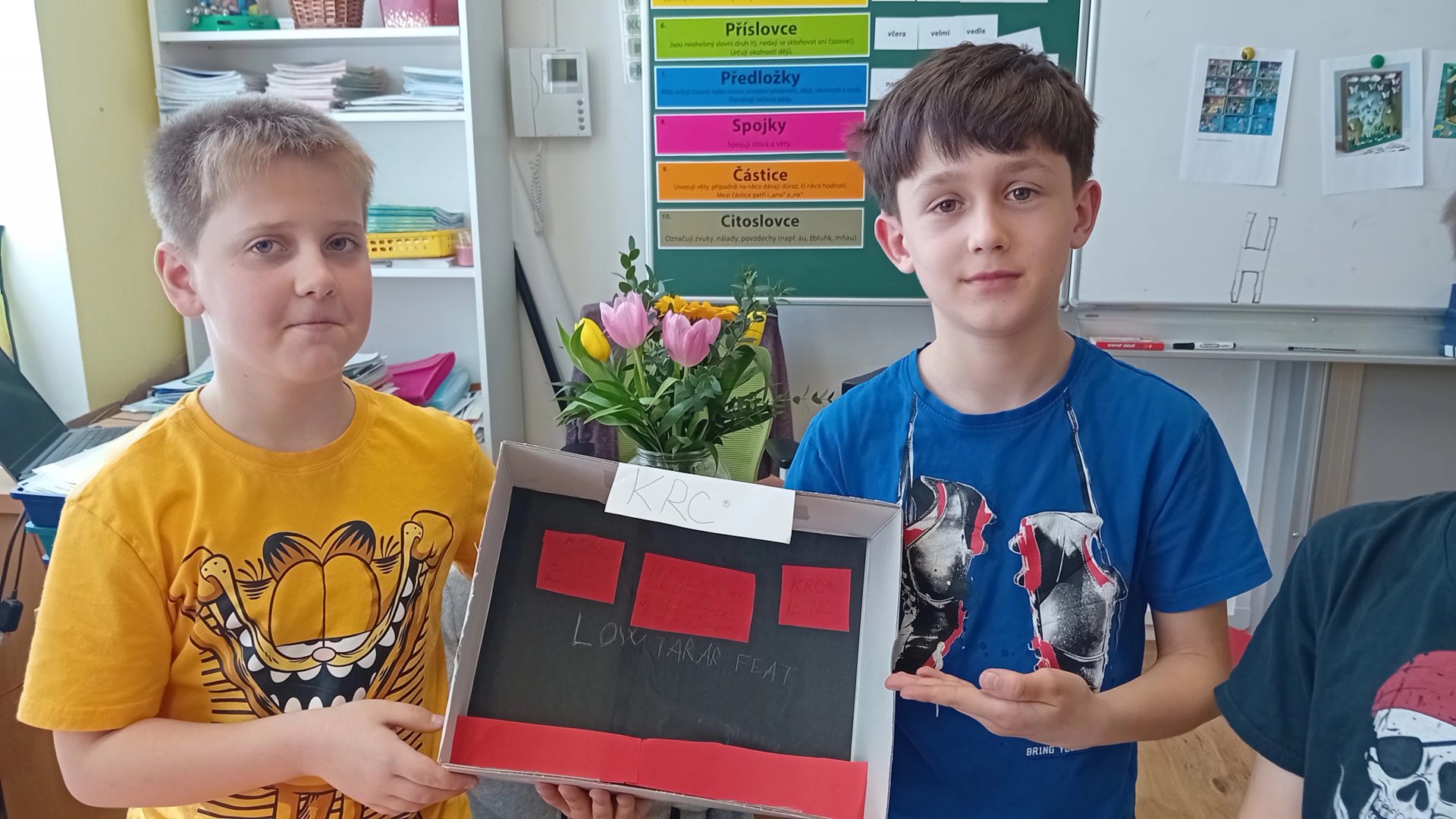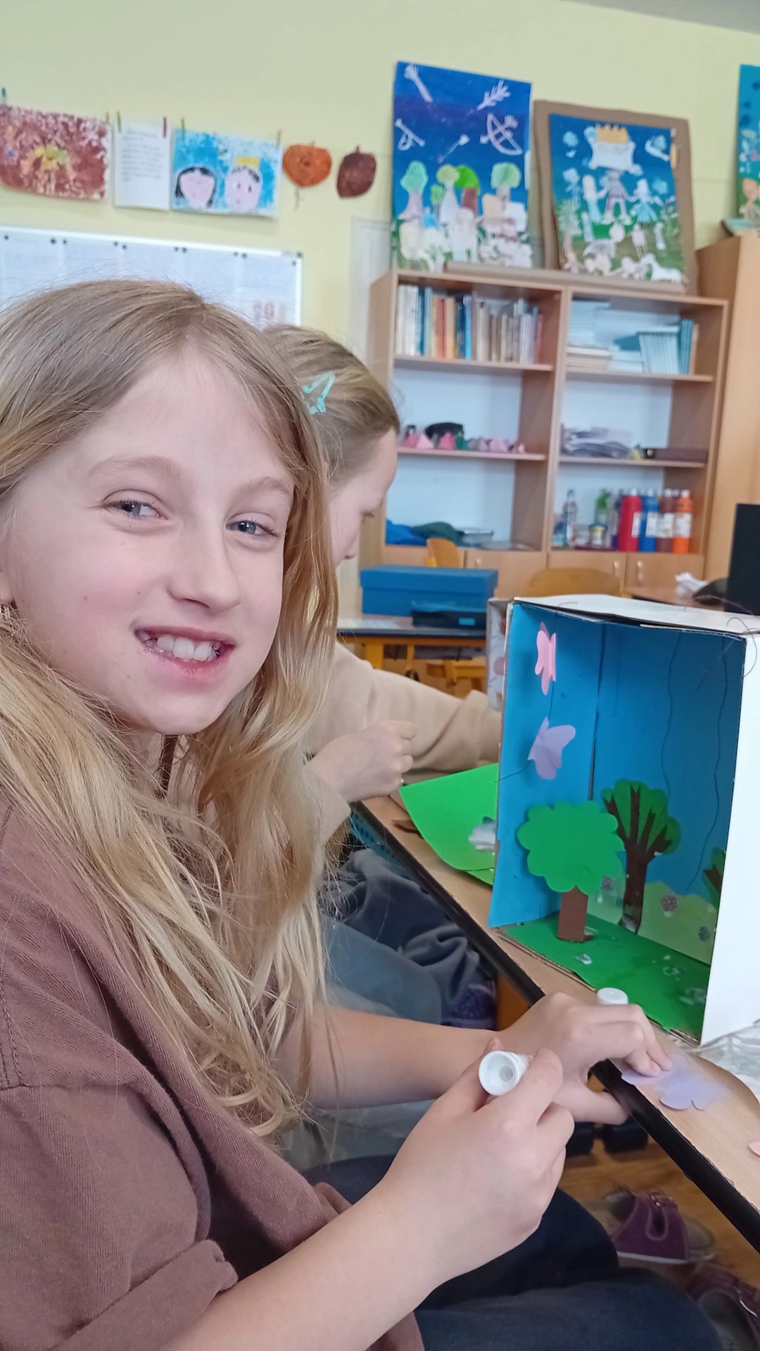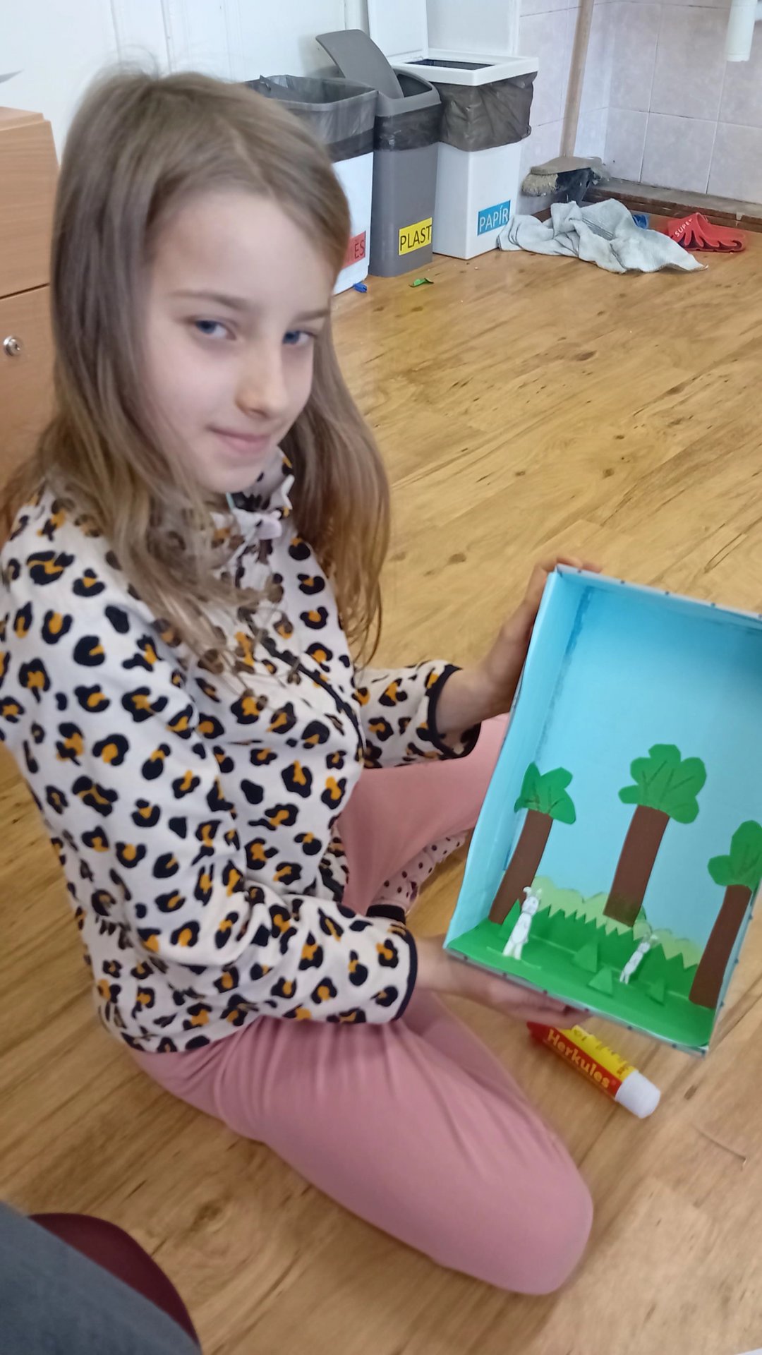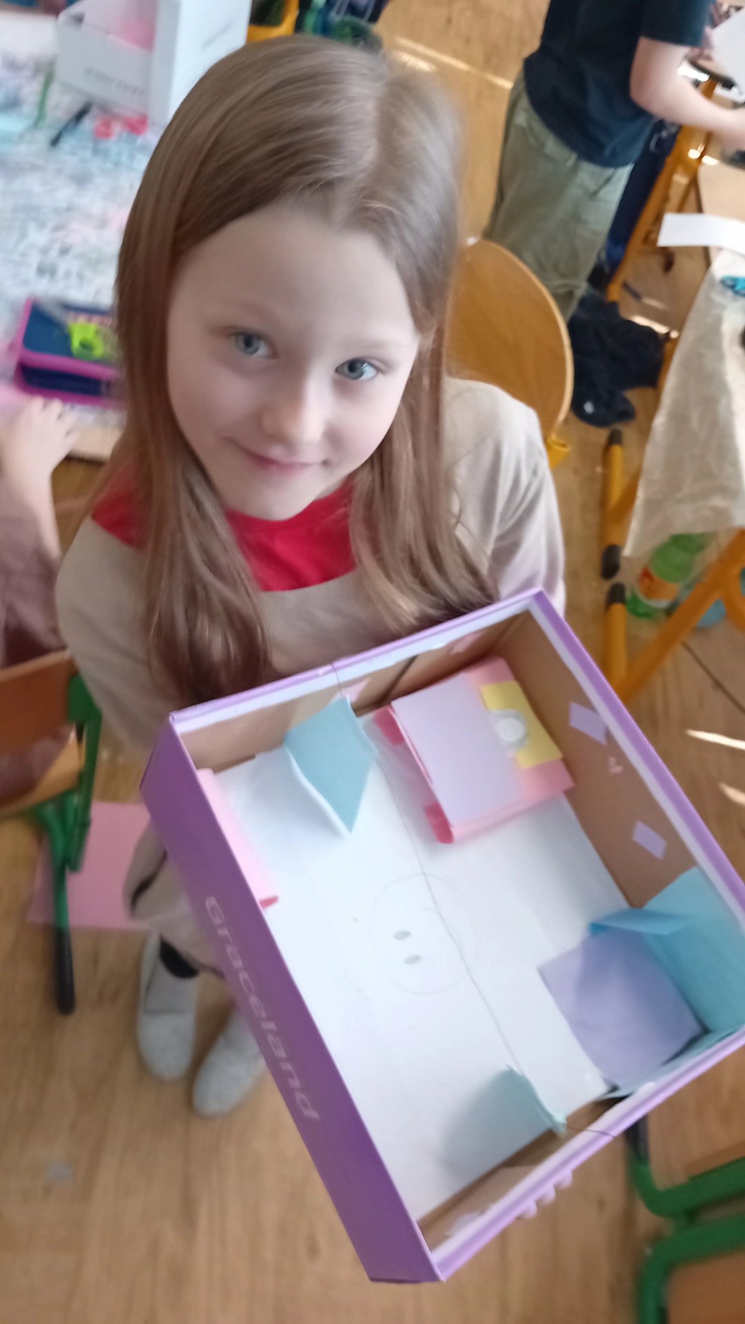 Výtvarka a pracovní činnosti nás baví a máme šikovné ruce. Do školy jsme si všichni přinesli krabici od bot a mohli jsme se pustit do výroby prostorových modelů. Původně se mělo jednat o pokojíky, ale protože dětská fantazie je bezbřehá, vznikla psí bouda, KFC, fotbalové hřiště, zahrada, zkrátka všechno, na co jsme si troufli. Výsledkem byly výtvory radost pohledět.