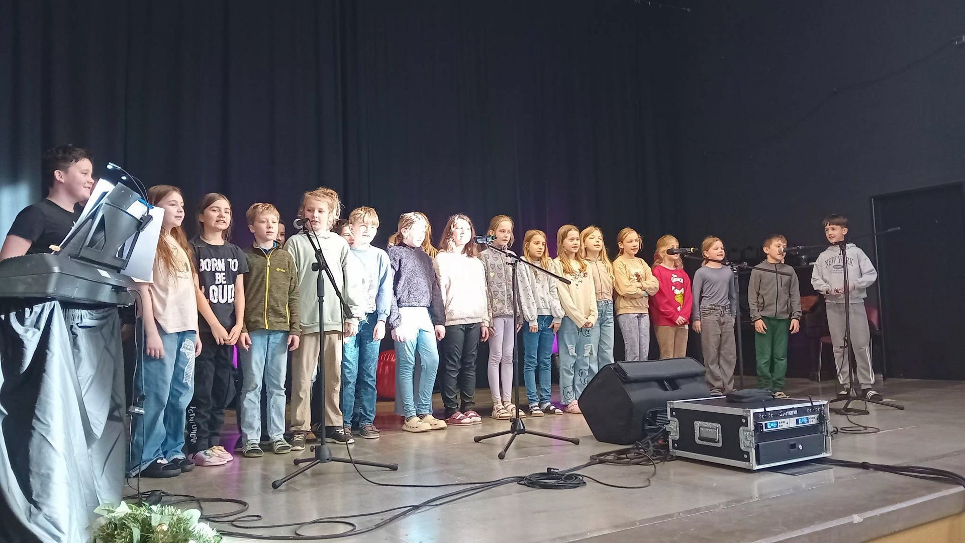 Na konci listopadu a začátkem prosince nás čekalo hodně zpěvu. Začali jsme vystoupením na vánočním jarmarku na náměstí, pokračovali pravidelnými zkouškami ve škole, generální zkouškou v sokolovně a zakončili vánočním koncertem tamtéž. Místa na ochozu byla ta nejlepší, co jsme si mohli přát. Velký dík patří všem paním učitelkám hudebnicím, které s námi trpělivě nacvičovaly.