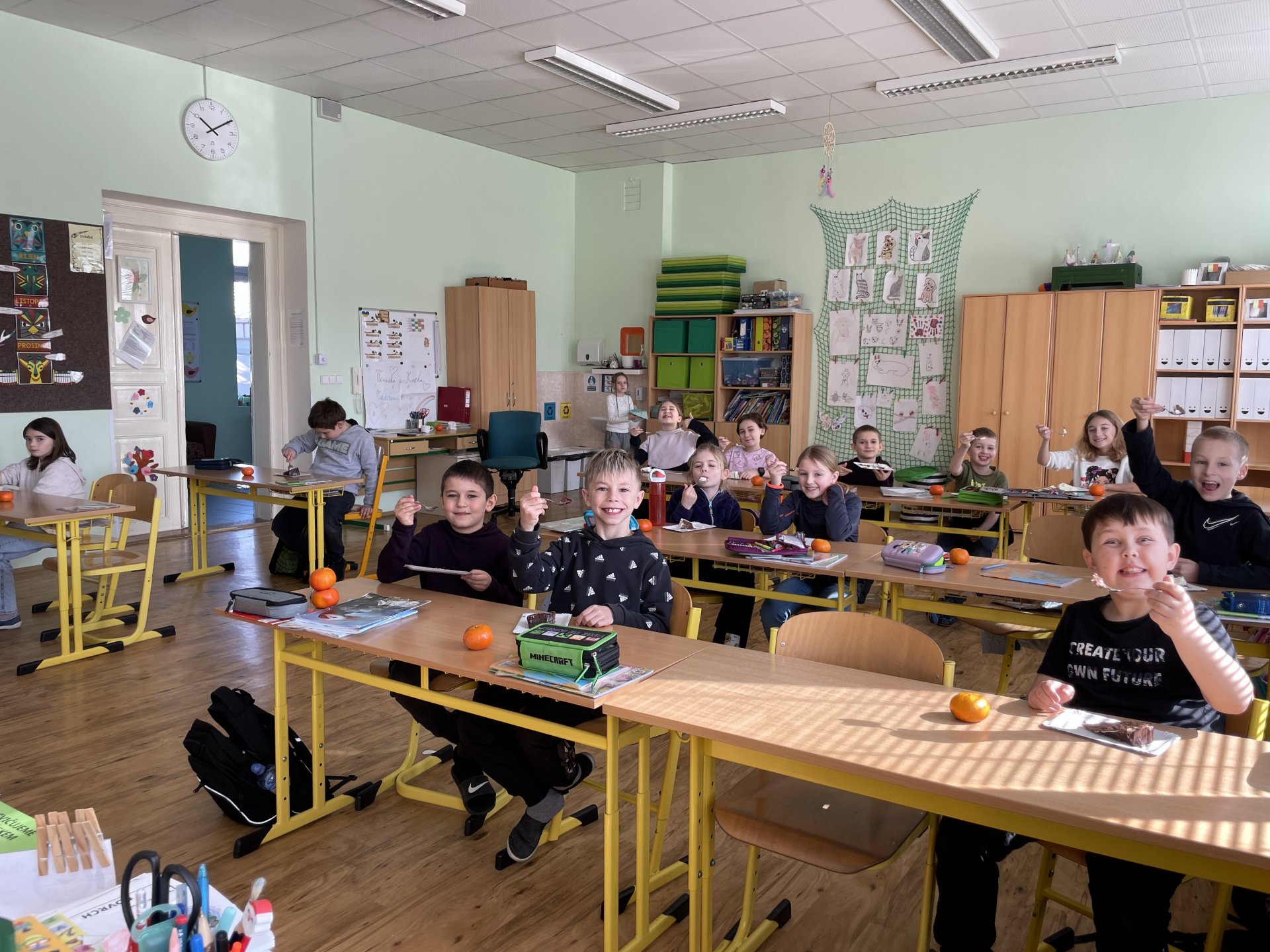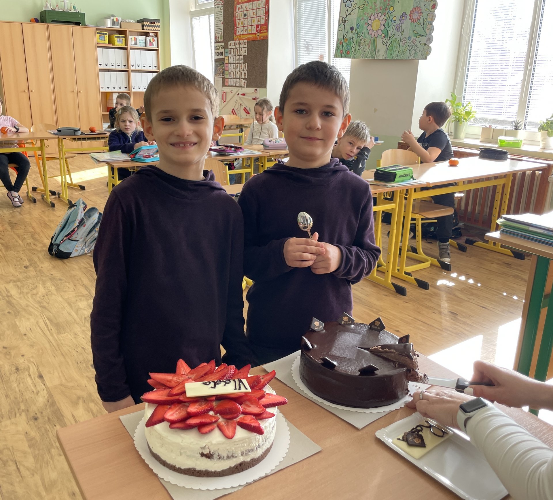 Maminka Oxana Hubarjeva nás zásobila nejen dortíky, ale také přípitkem a pořádnou dávkou vitamínů v podobě ovoce.