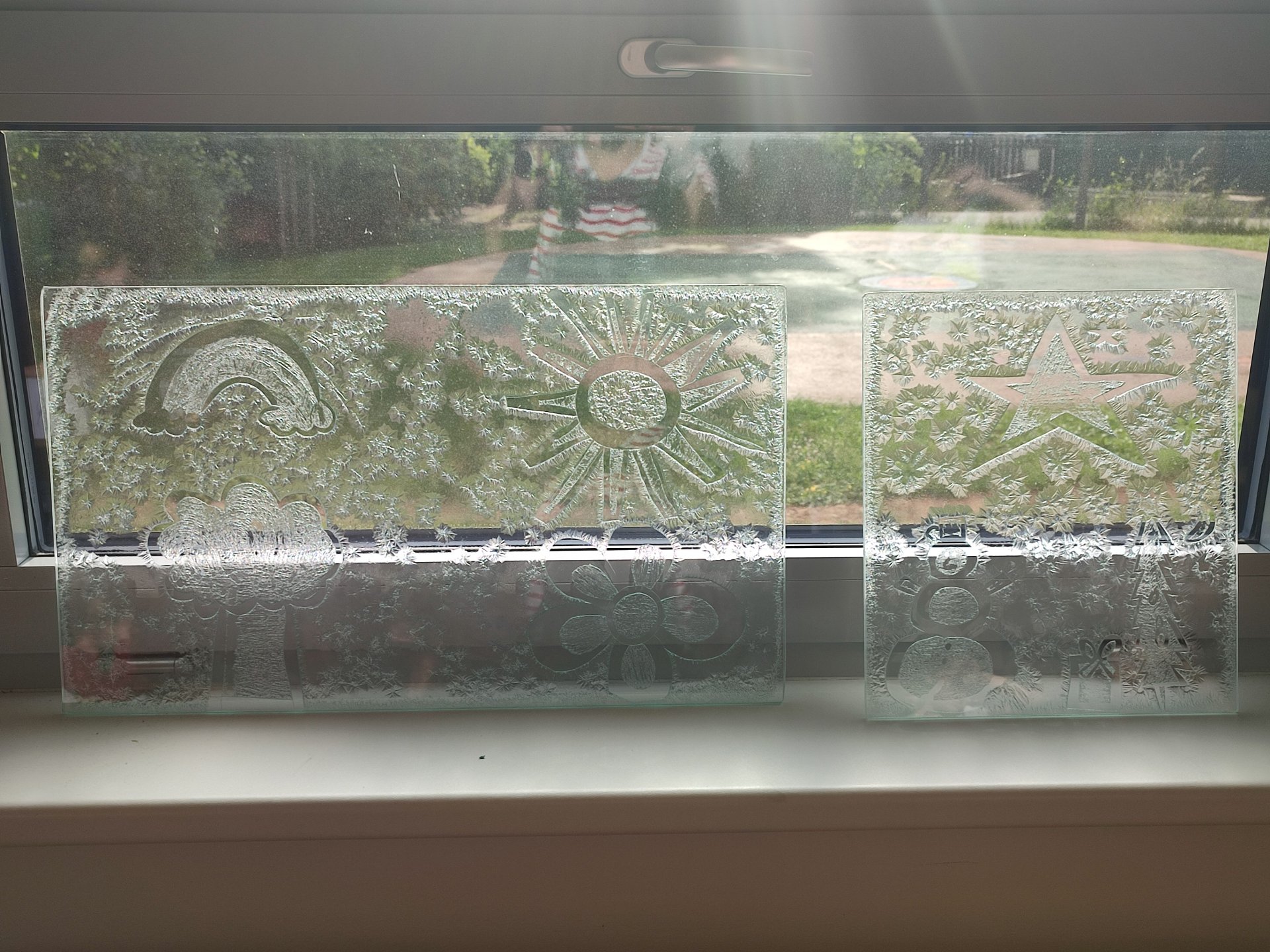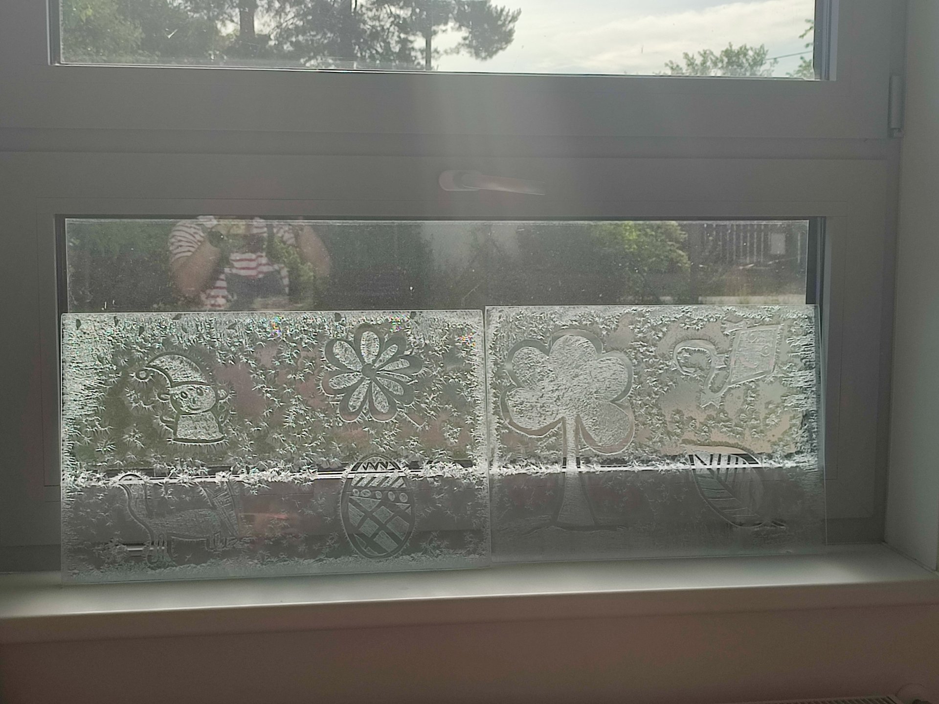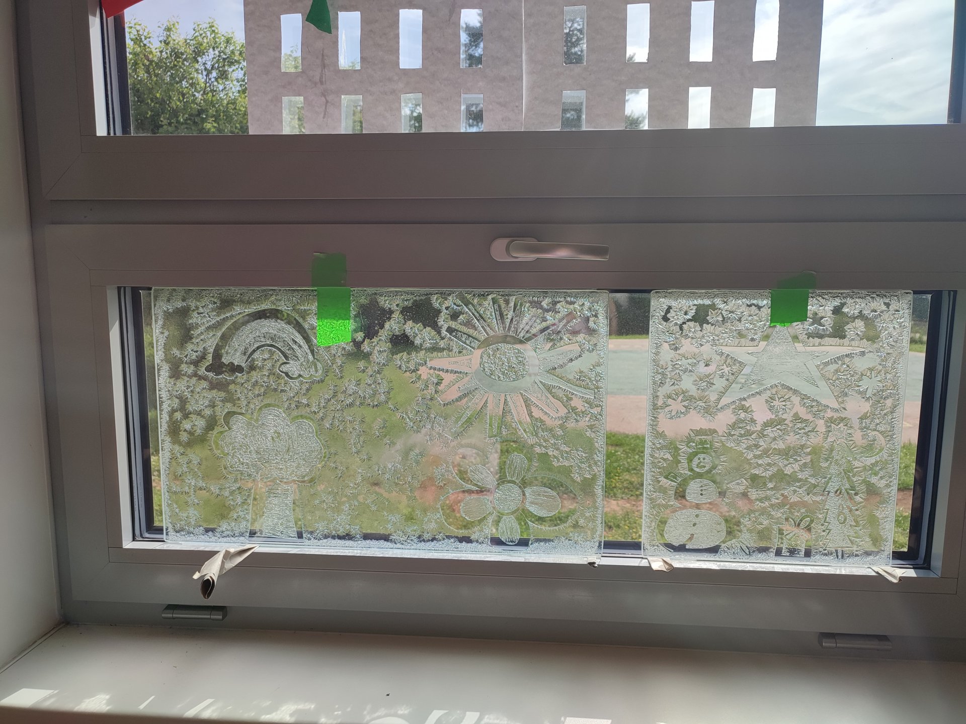 Děti dostaly krásné skleněné čtvero roční období, které nám momentálně zdobí okna.