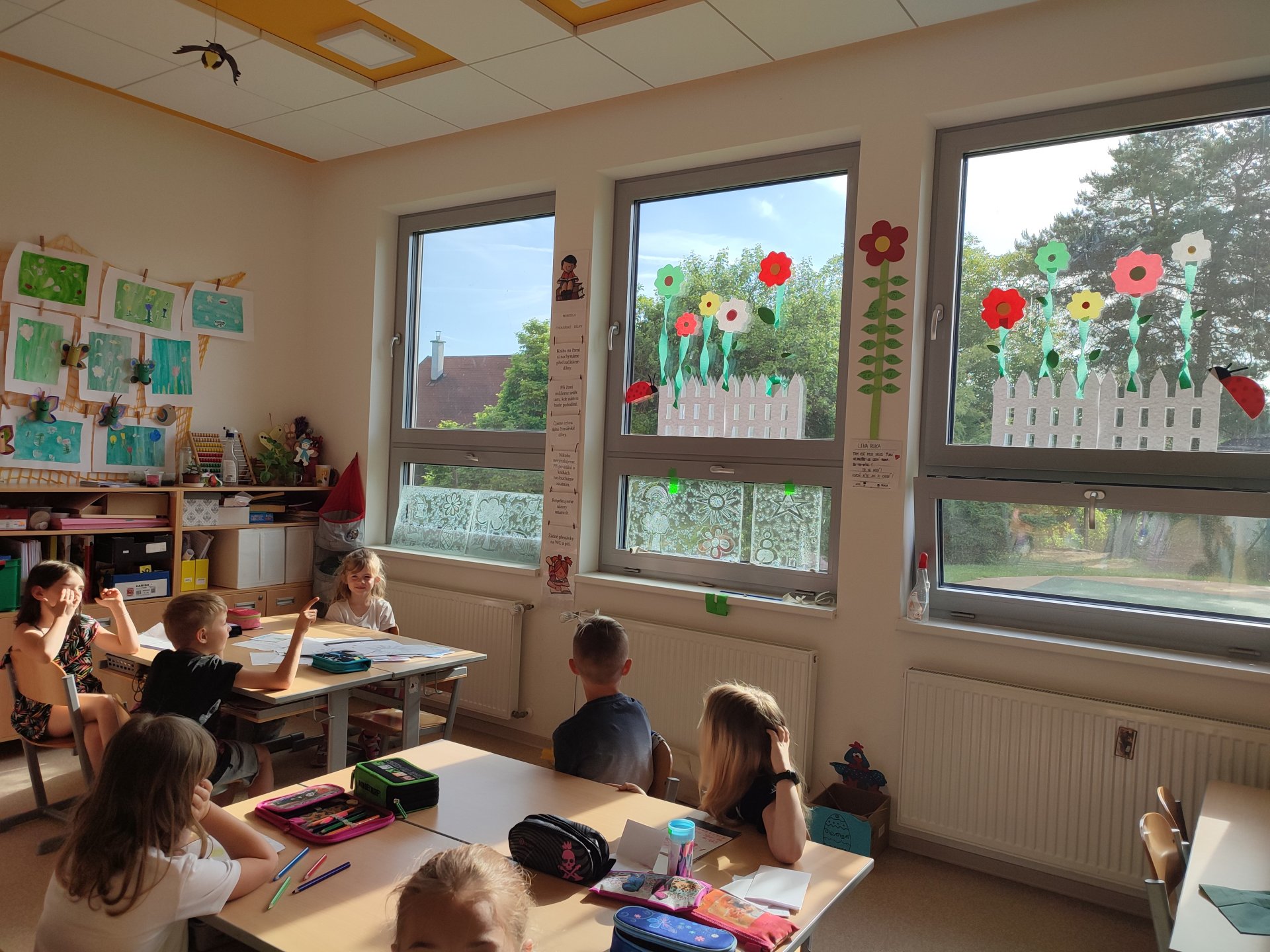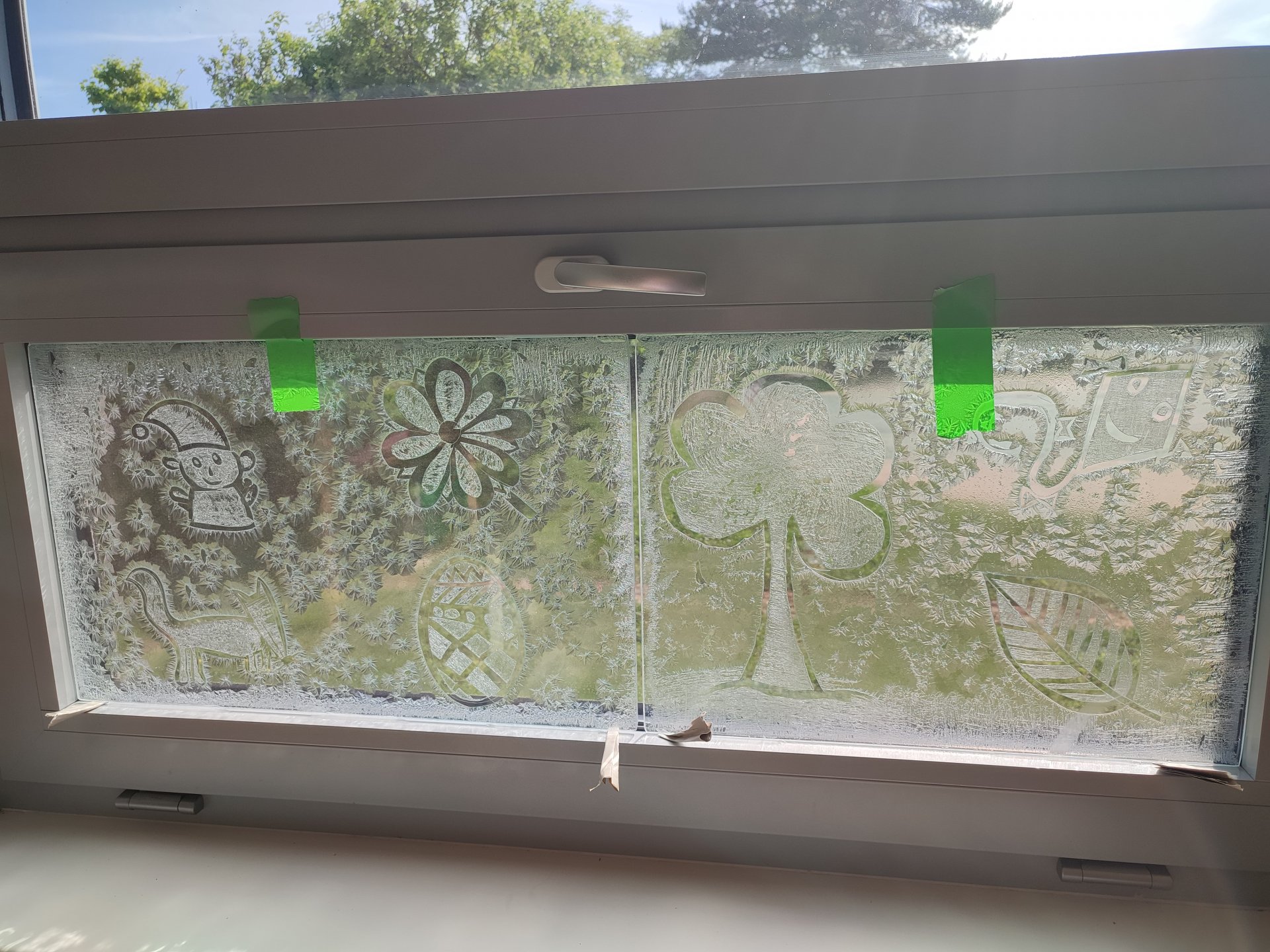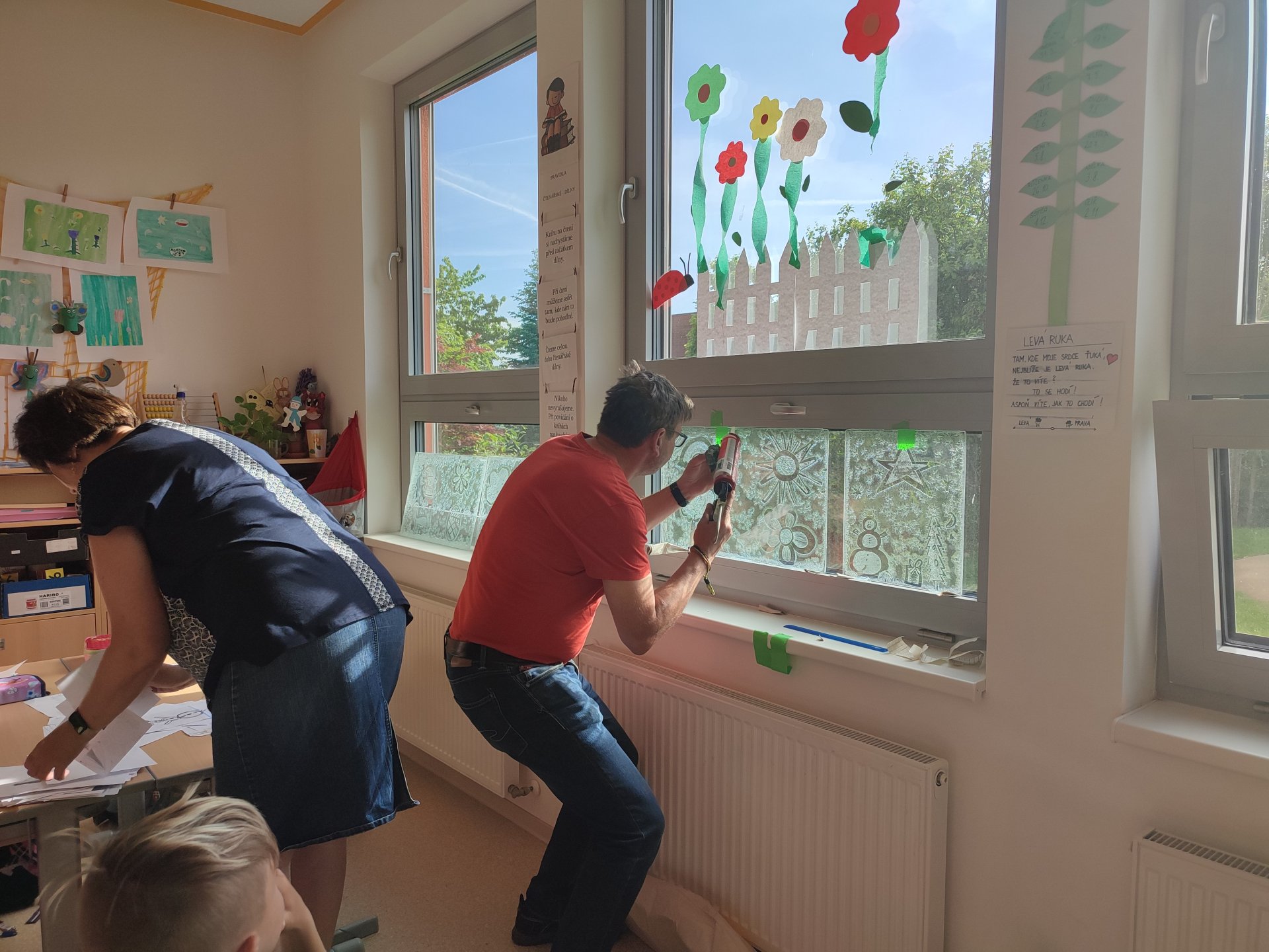 Děti dostaly krásné skleněné čtvero roční období, které nám momentálně zdobí okna.