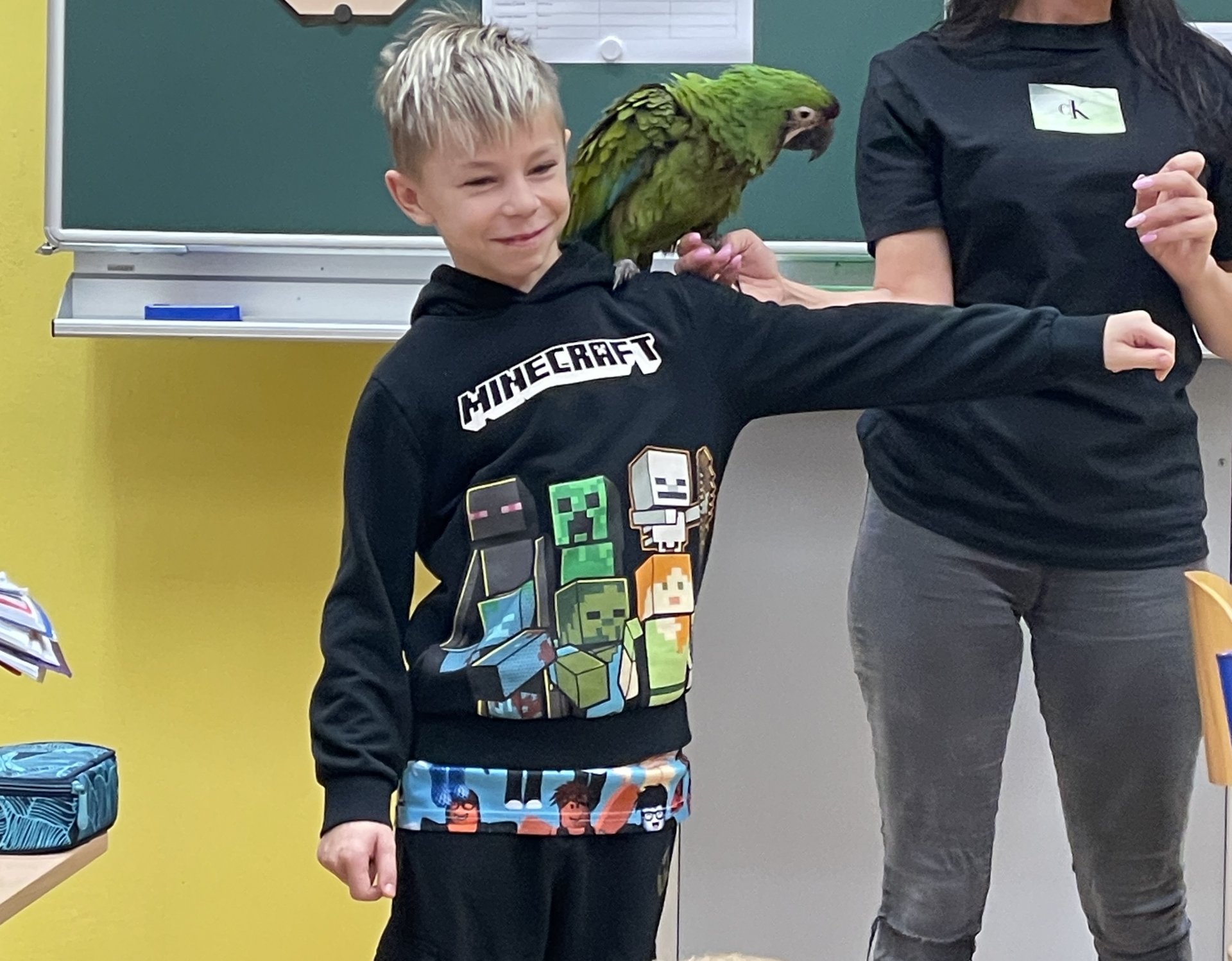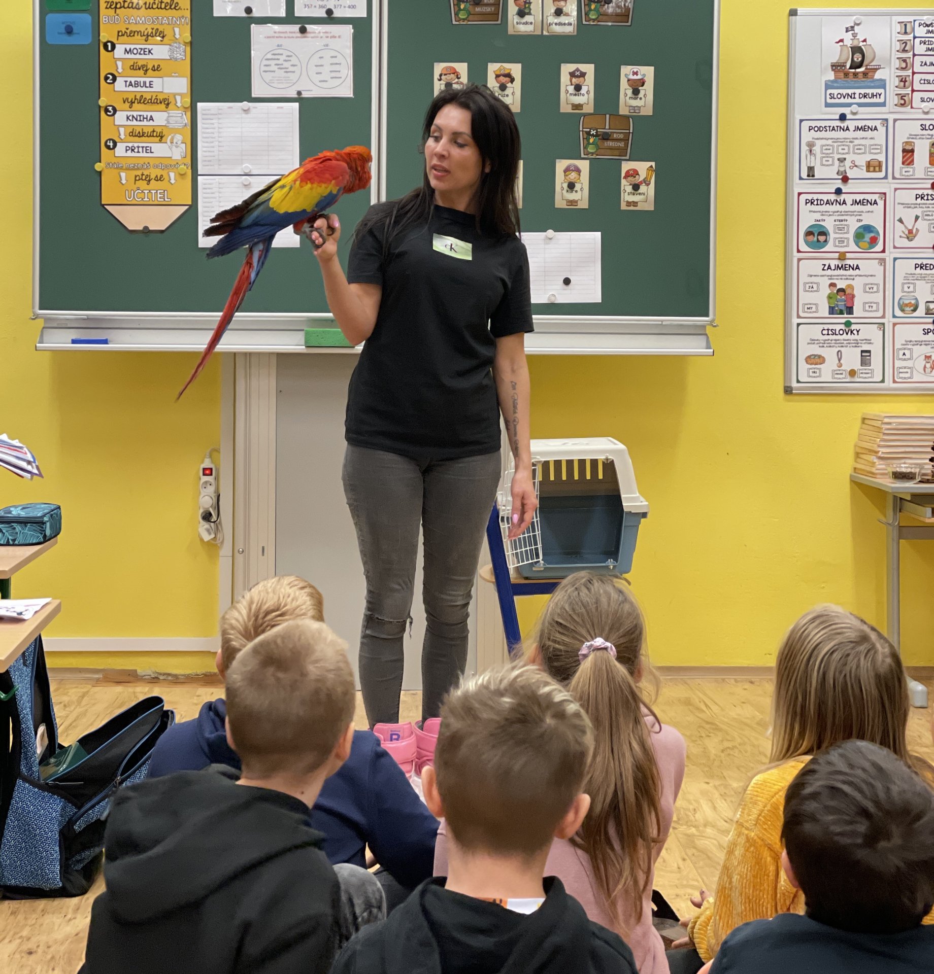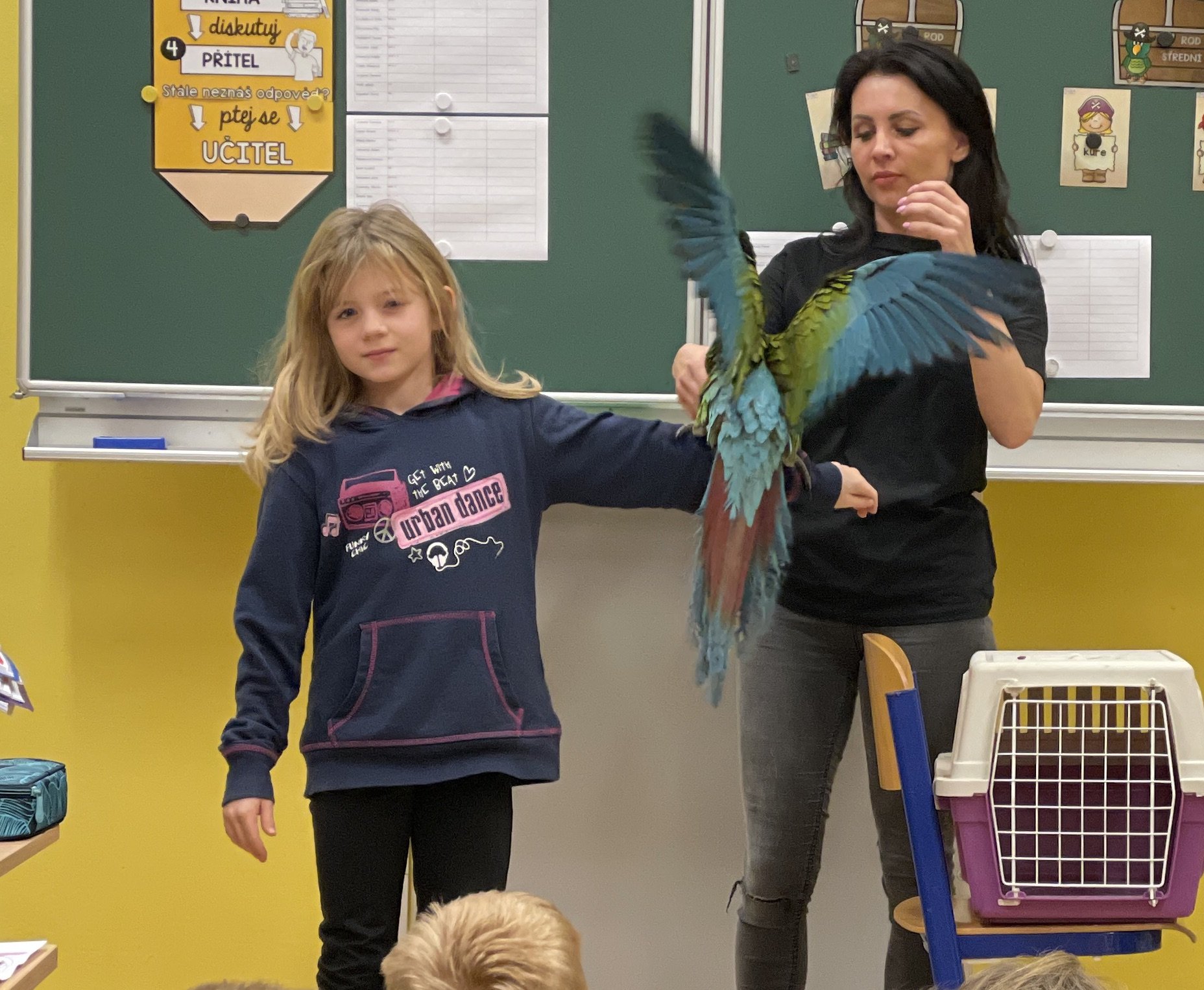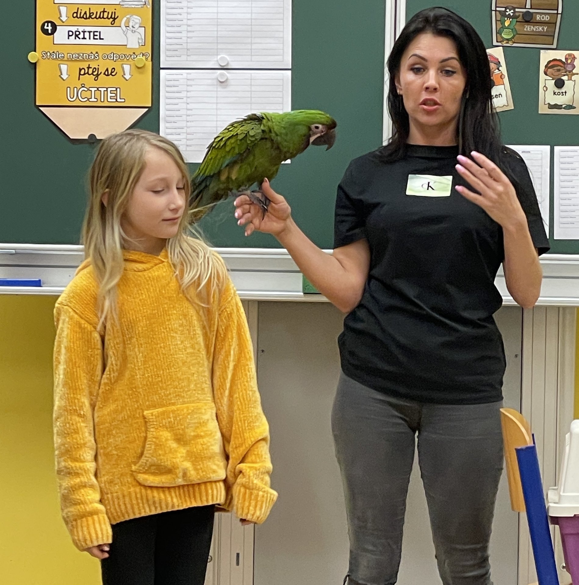 Moc děkujeme třídě 4.A, že jsme se společně s nimi mohli zůčastnit přednášky maminky Danielky Junkové, která je hrdou majitelkou těchto dvou krásných opeřenců.