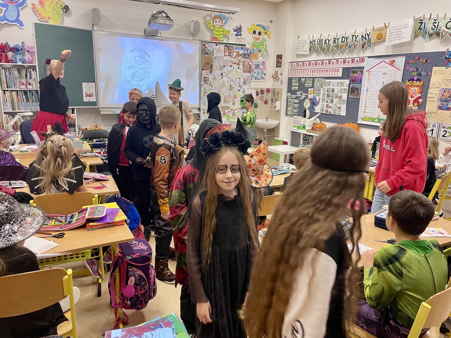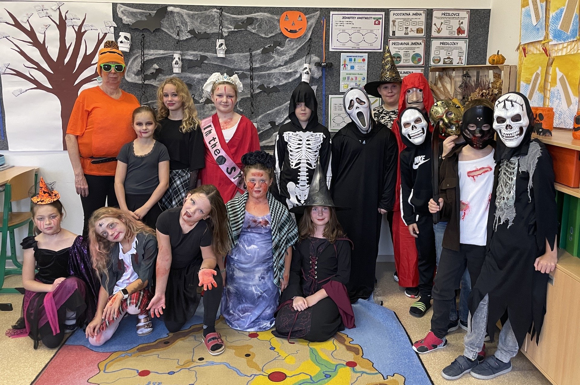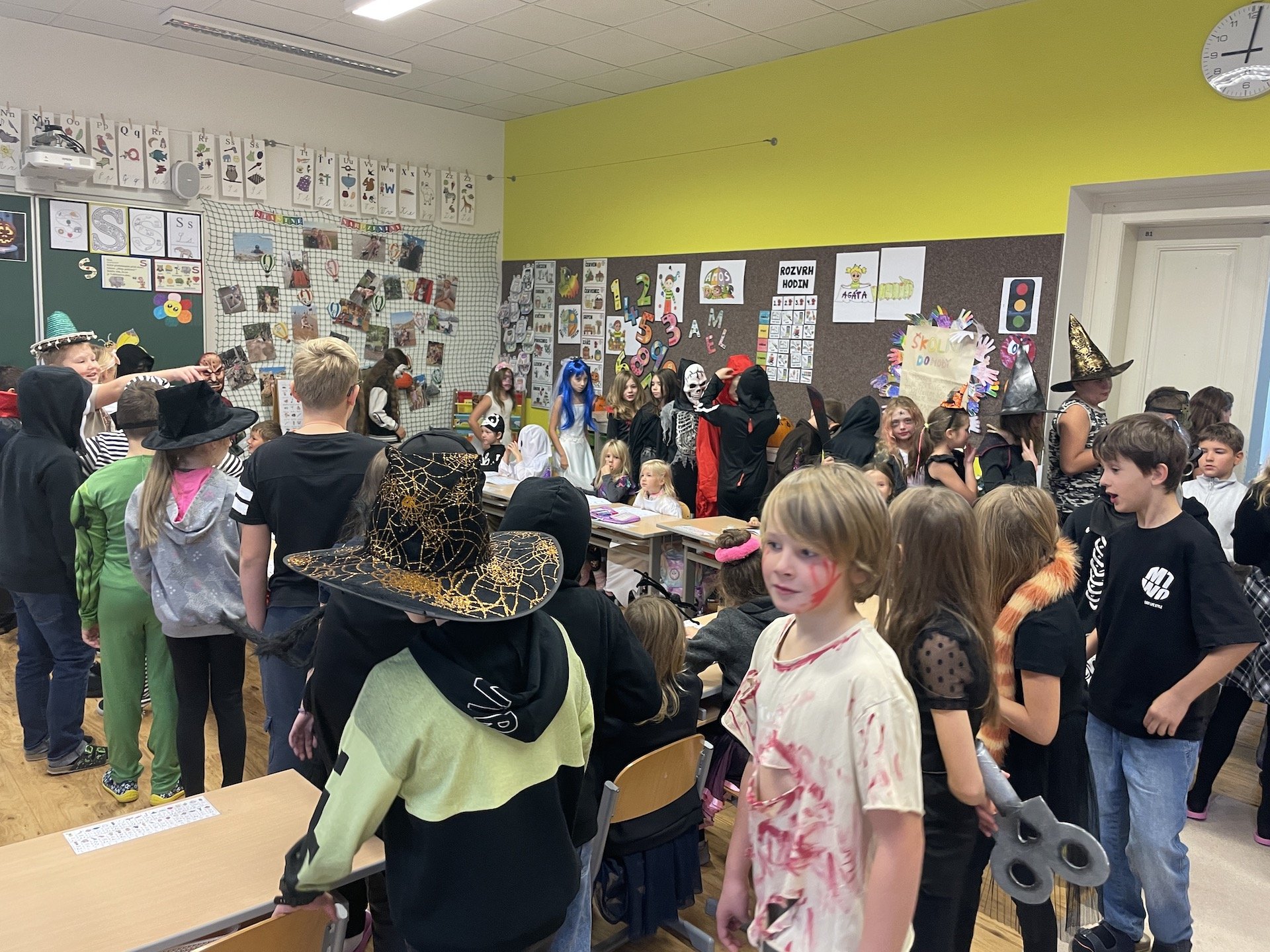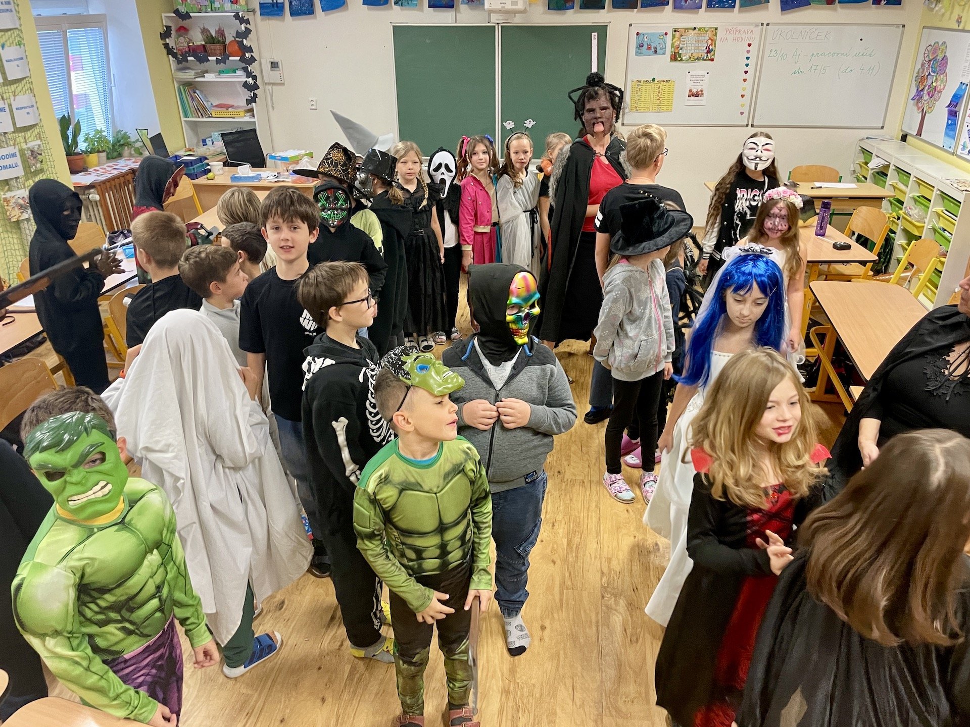 Letos se masky obzvlášť vydařily a tak jsme si je nemohli nechat jen pro sebe a podnikli jsme společně se 4.B průvod masek po škole.