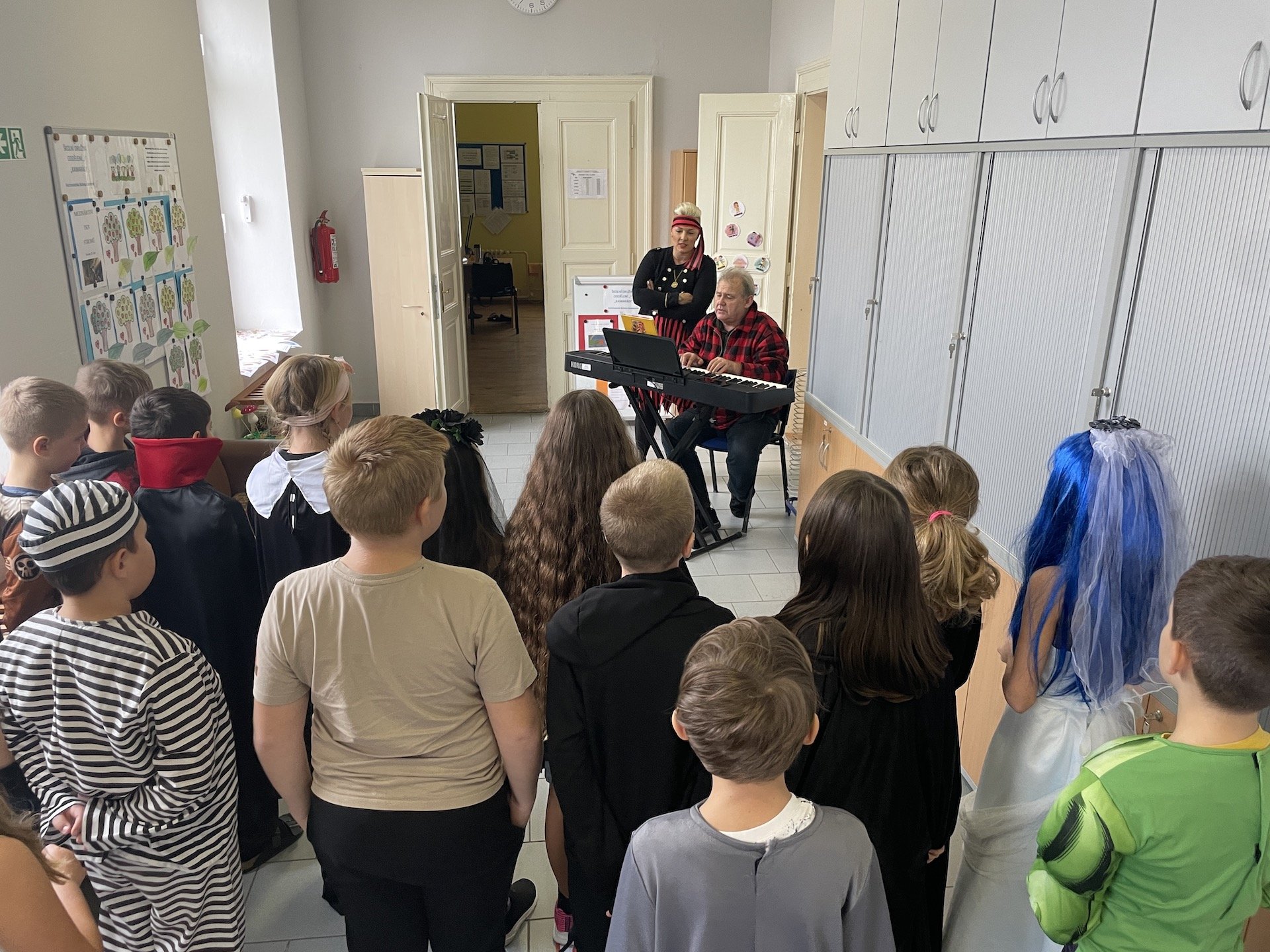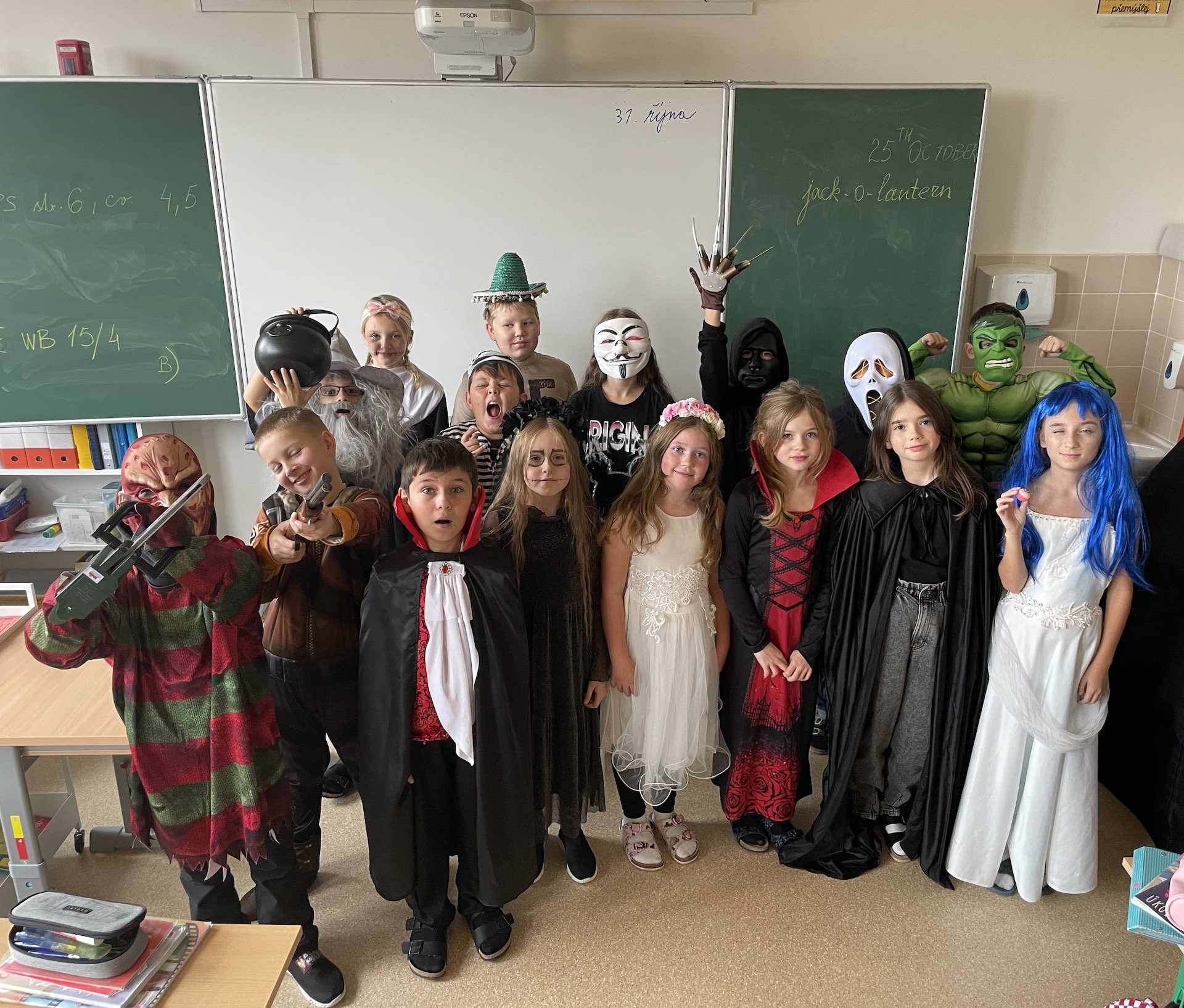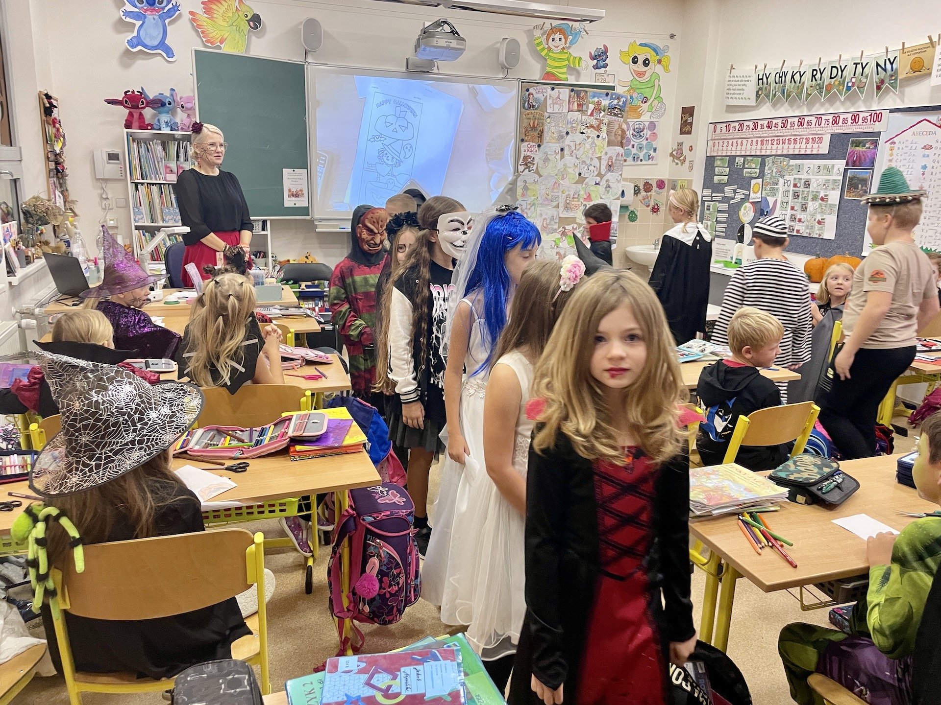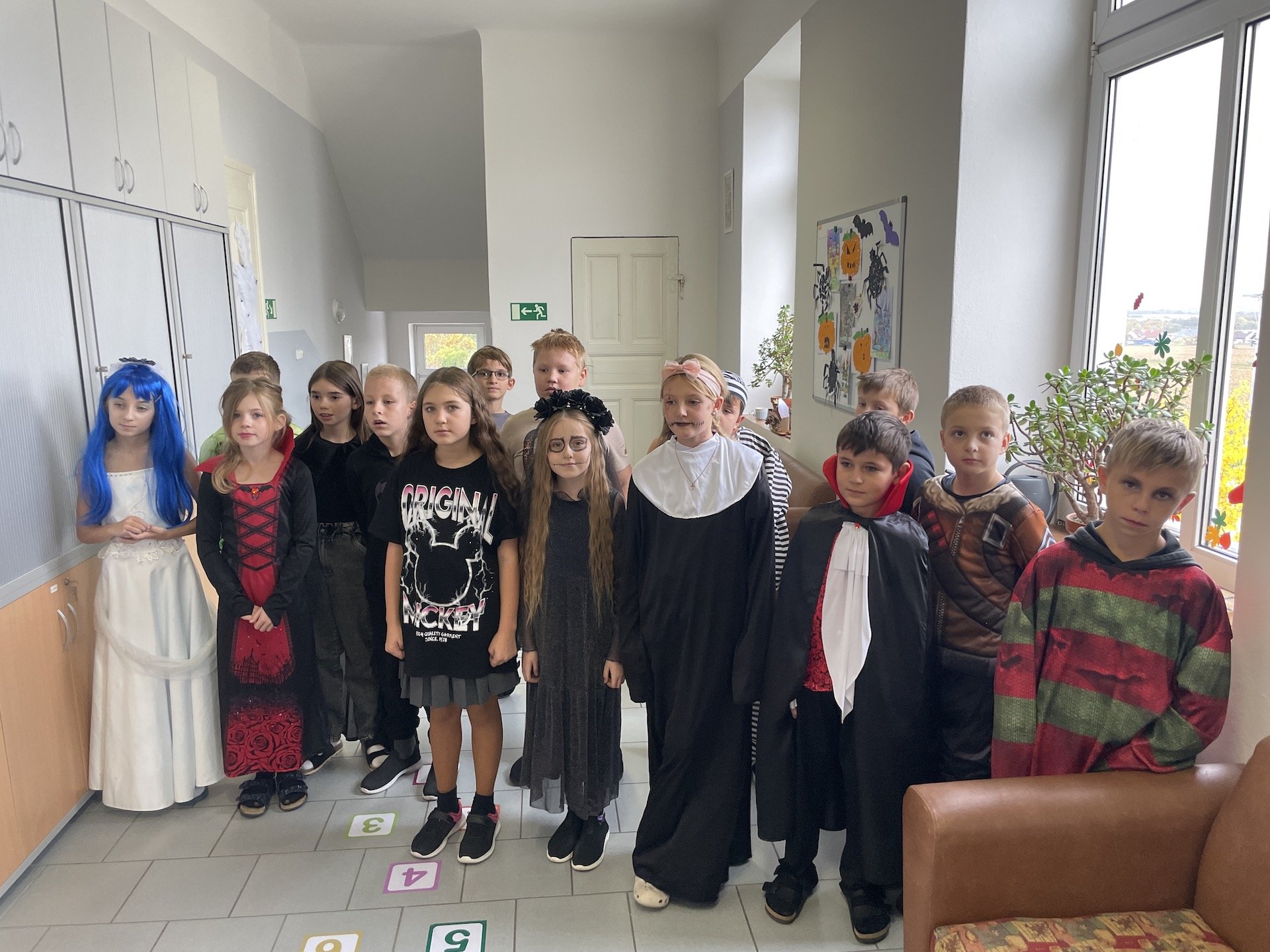 Letos se masky obzvlášť vydařily a tak jsme si je nemohli nechat jen pro sebe a podnikli jsme společně se 4.B průvod masek po škole.