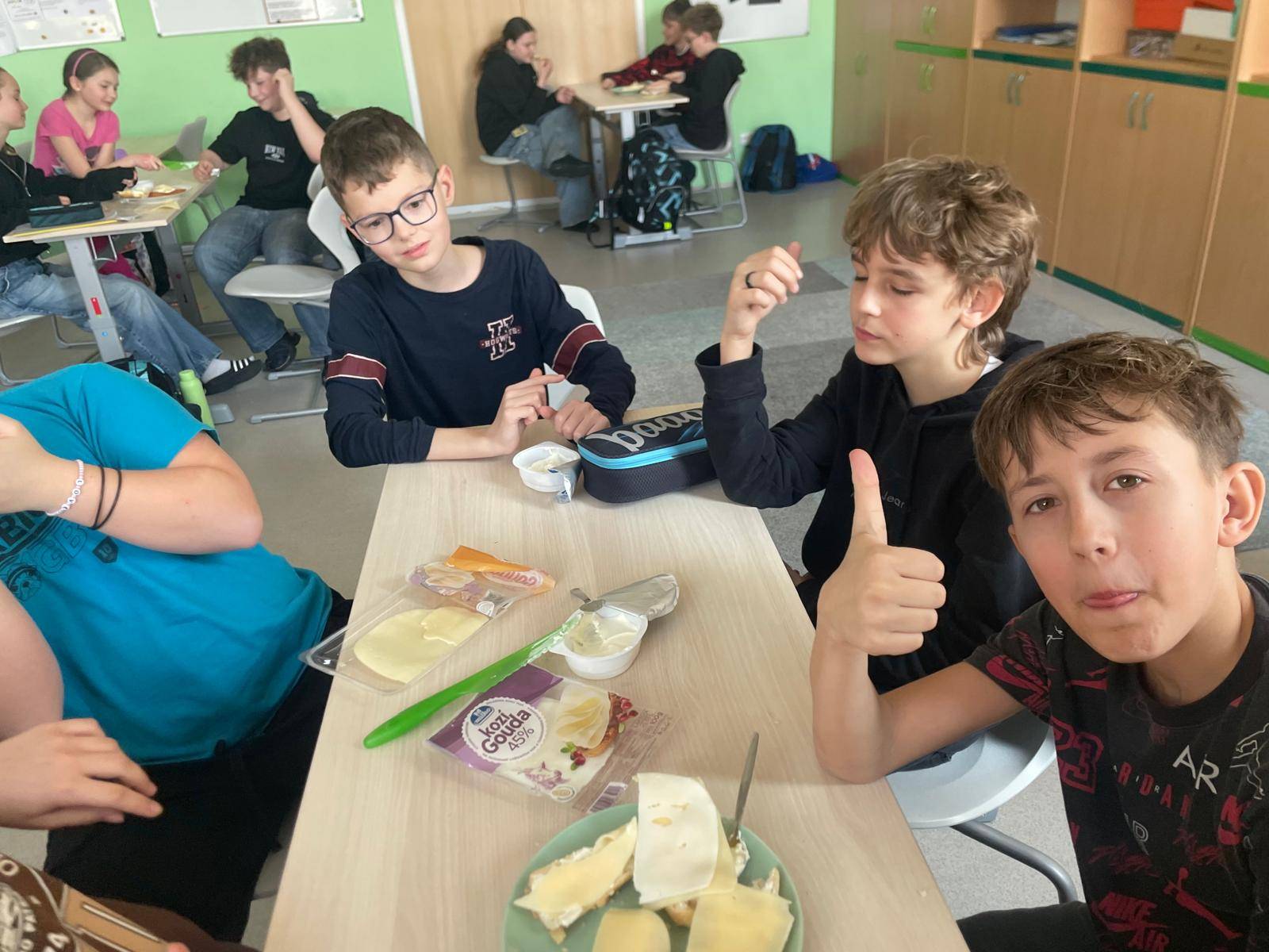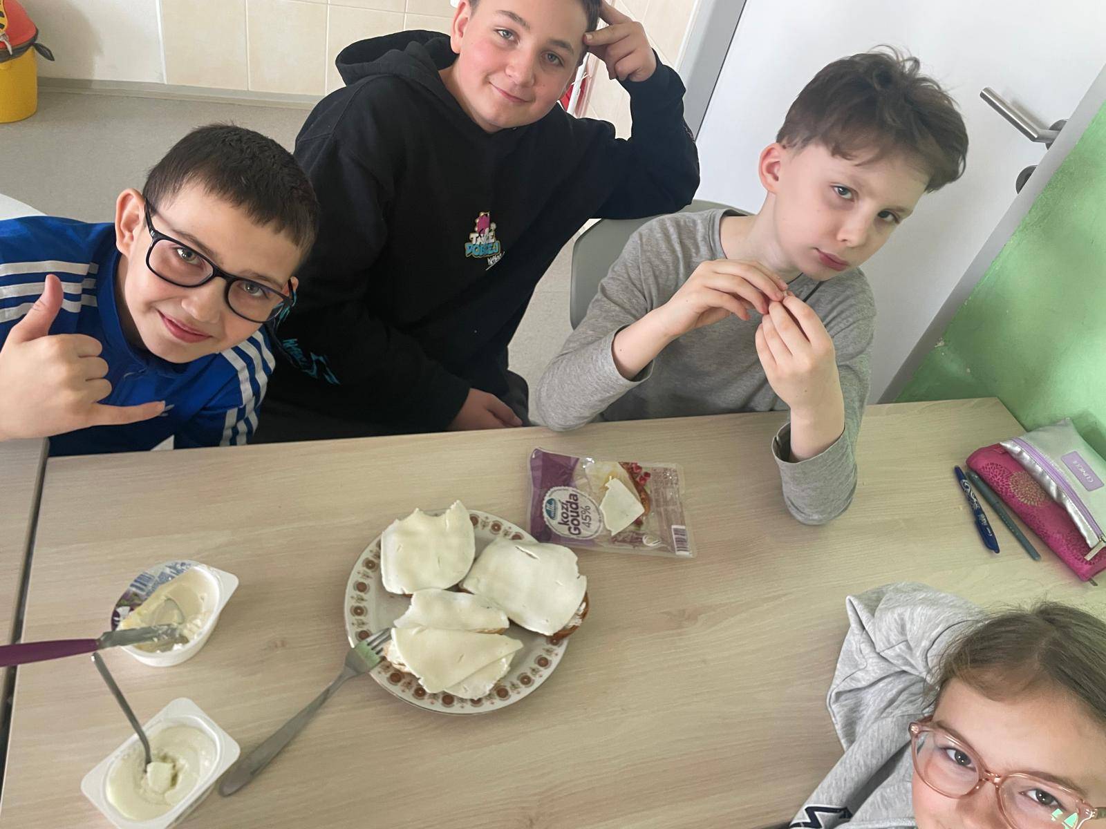 V hodině pracovních činností dostali pečivo a vyzkoušeli různé druhy sýrů a tvarohů.