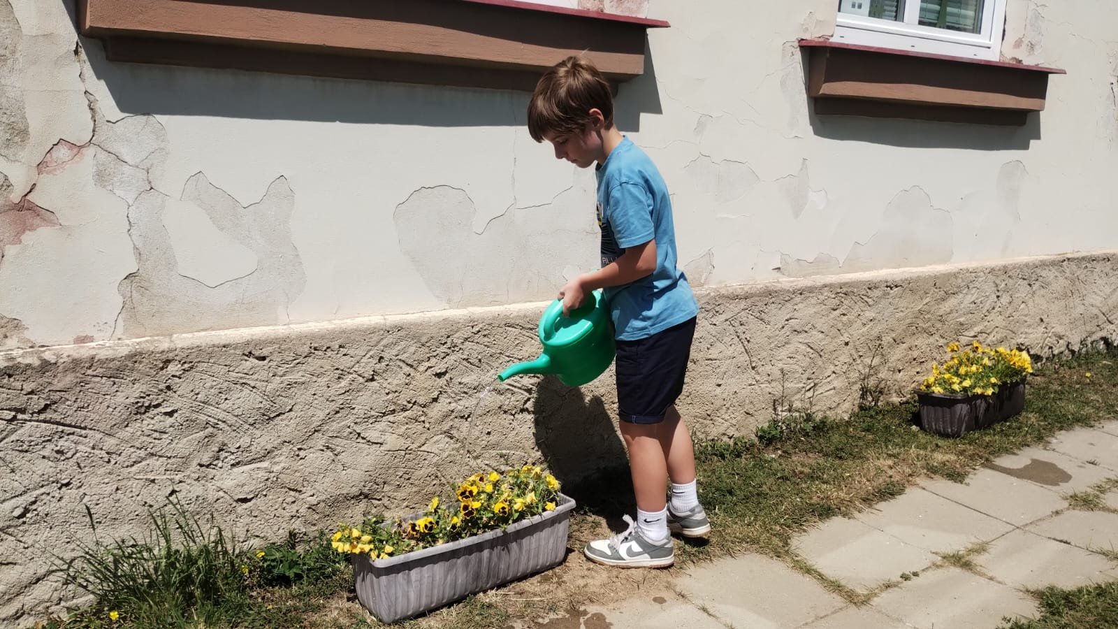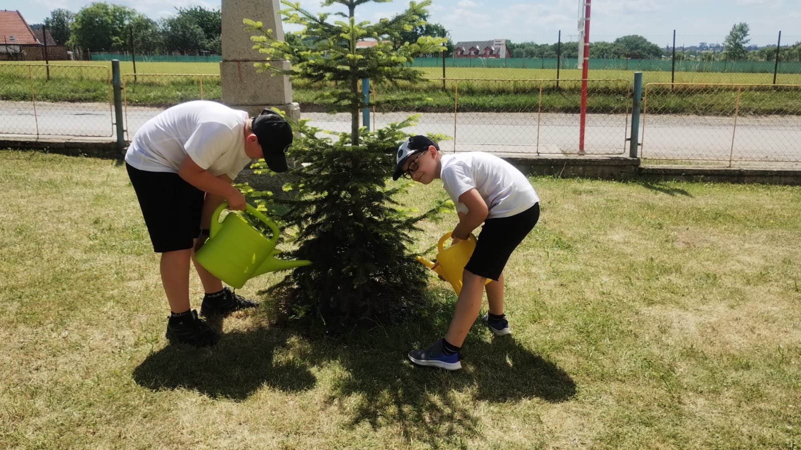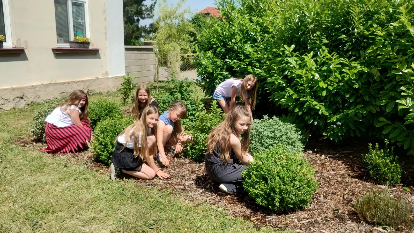 Celé čtyři roky se staráme o předzahrádku před naší školou a tak jsme pleli a zalévali, aby nástup
