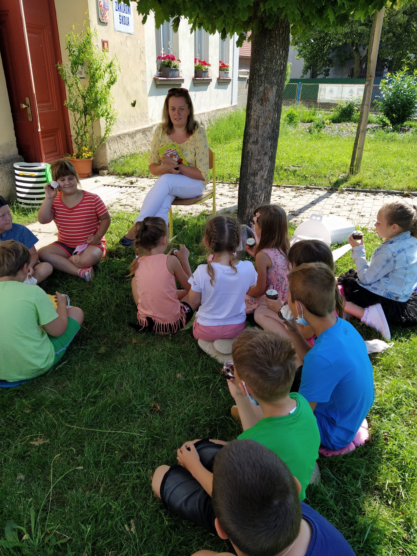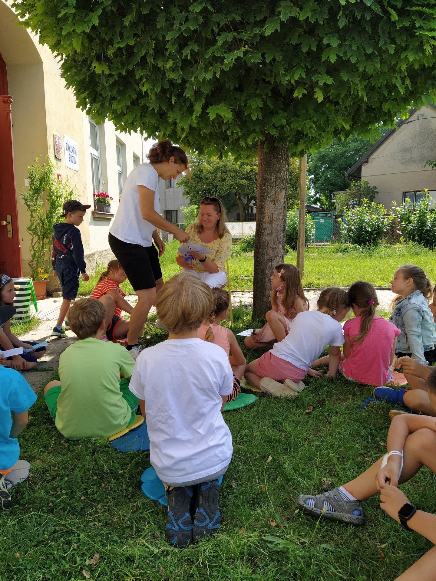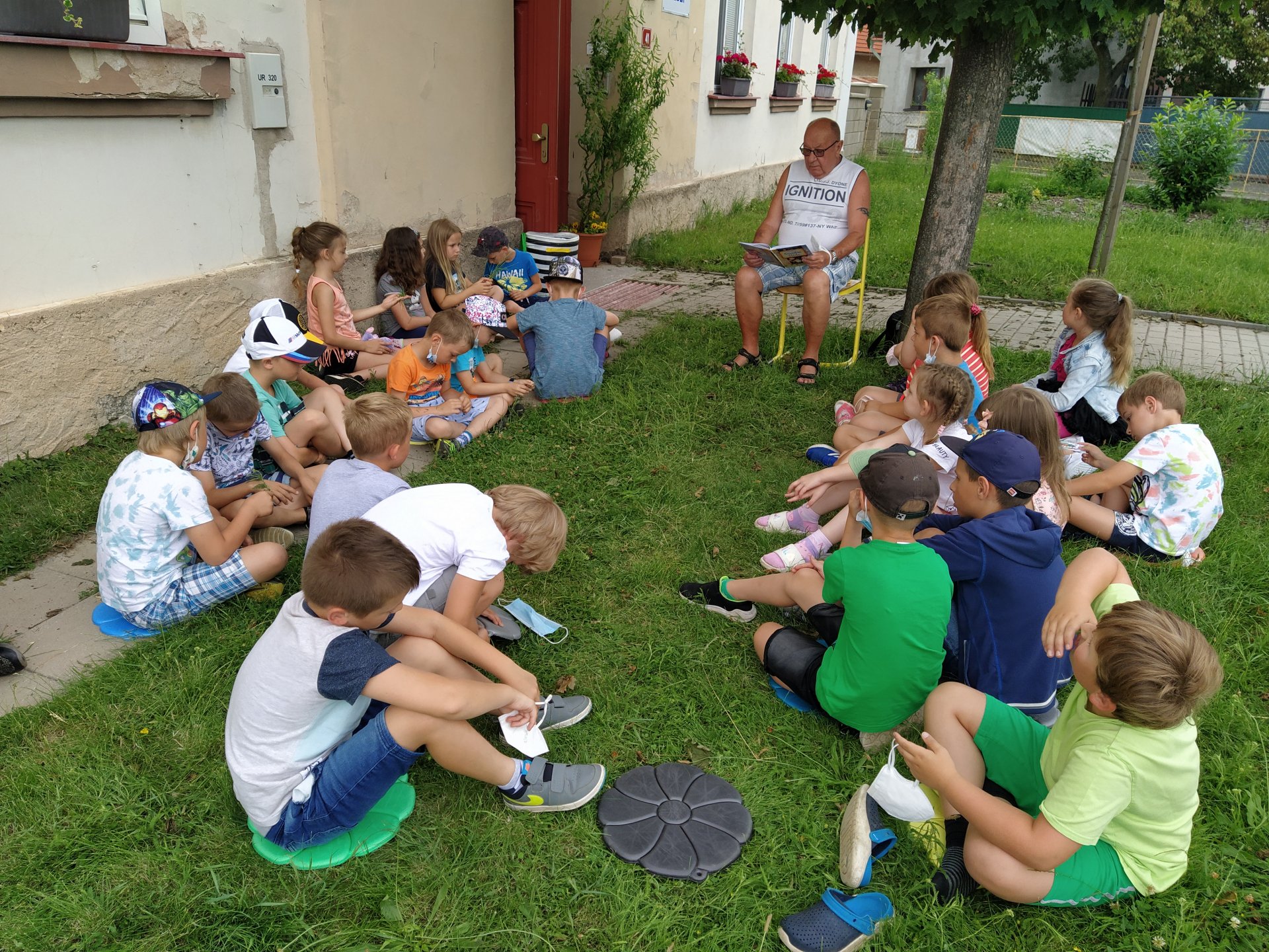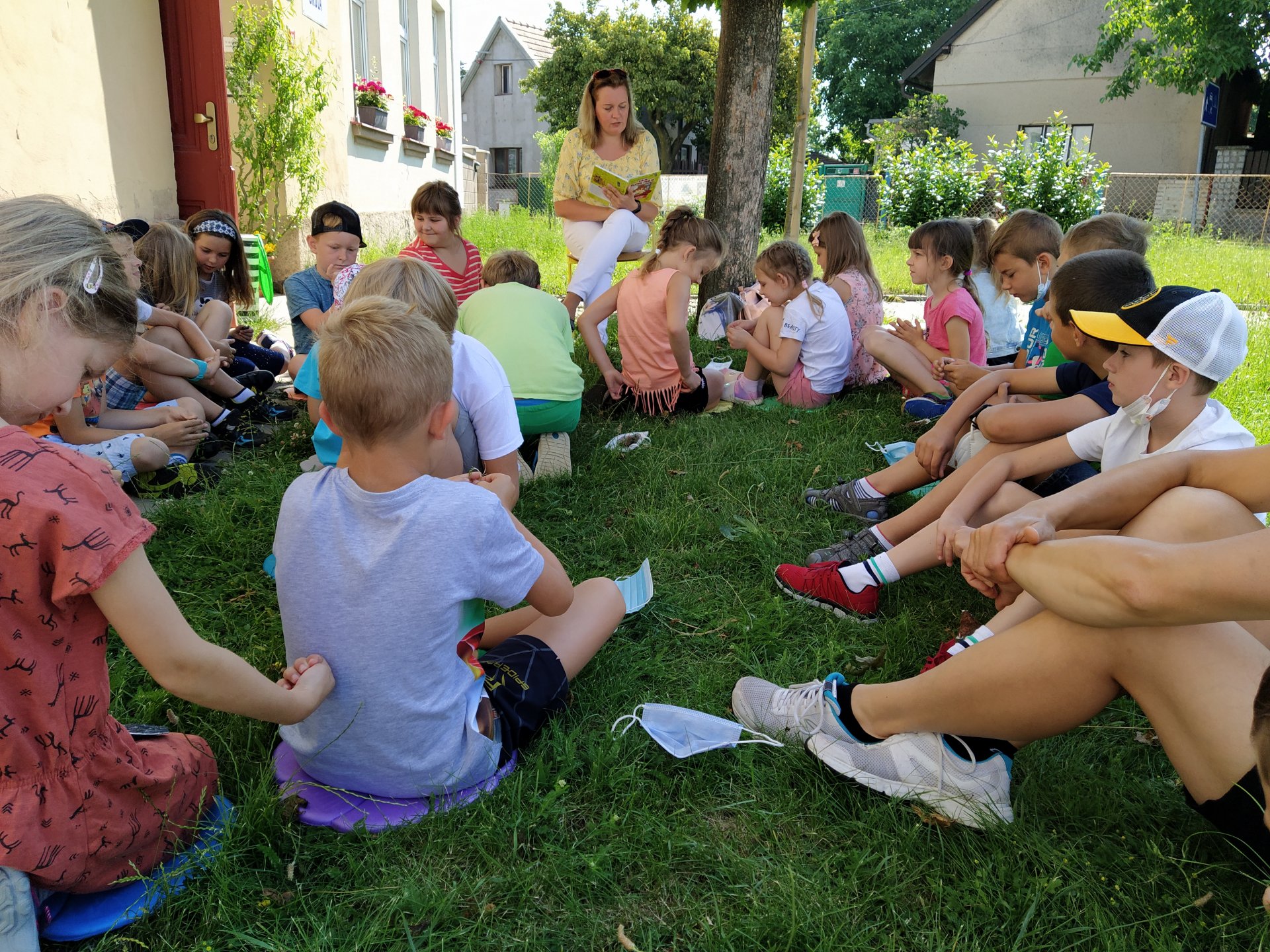 Závěr školního roku jsme trávili s netradiční návštěvou. Přišla nás navštívit jedna maminka a jeden dědeček našich spolužáků. Oba dospěláci nám předčítali, my jsme bedlivě poslouchali. K poslechu jsme se i občerstvili. Na památku dostal každý záložku se svým jménem. Děkujeme paní Audyové a panu Kopeckému za návštěvu a těšíme se, že třeba příští rok podobnou akci zase zopakujeme.