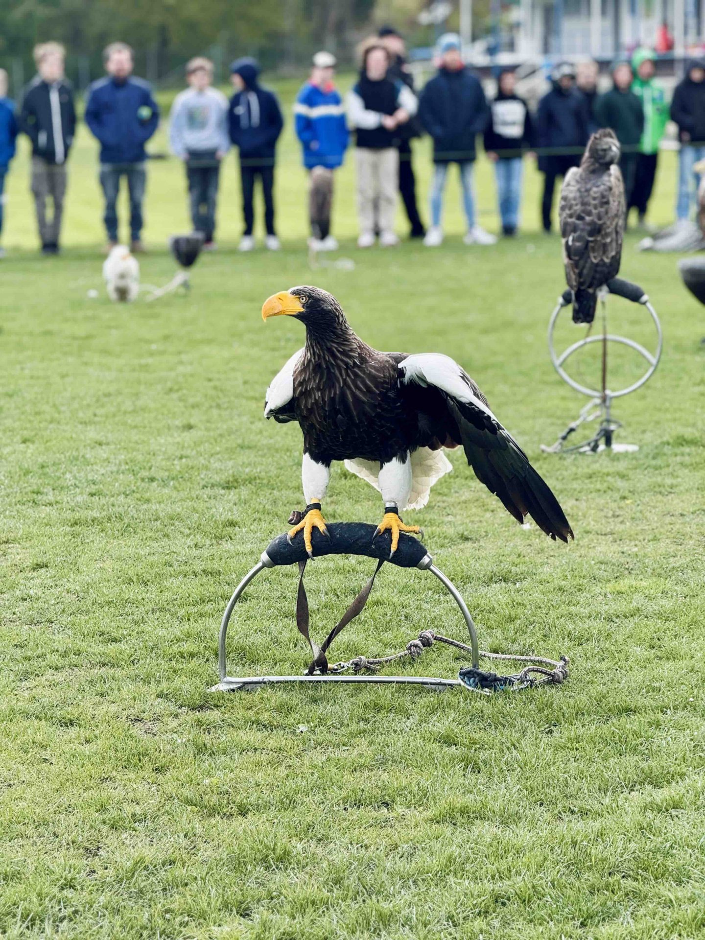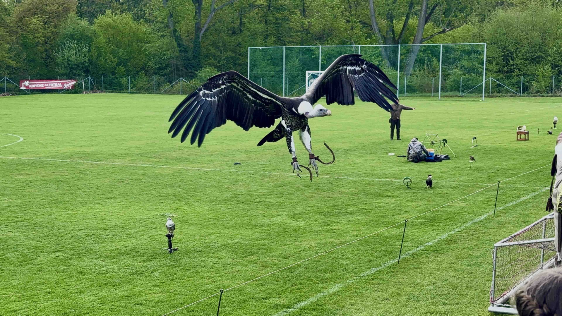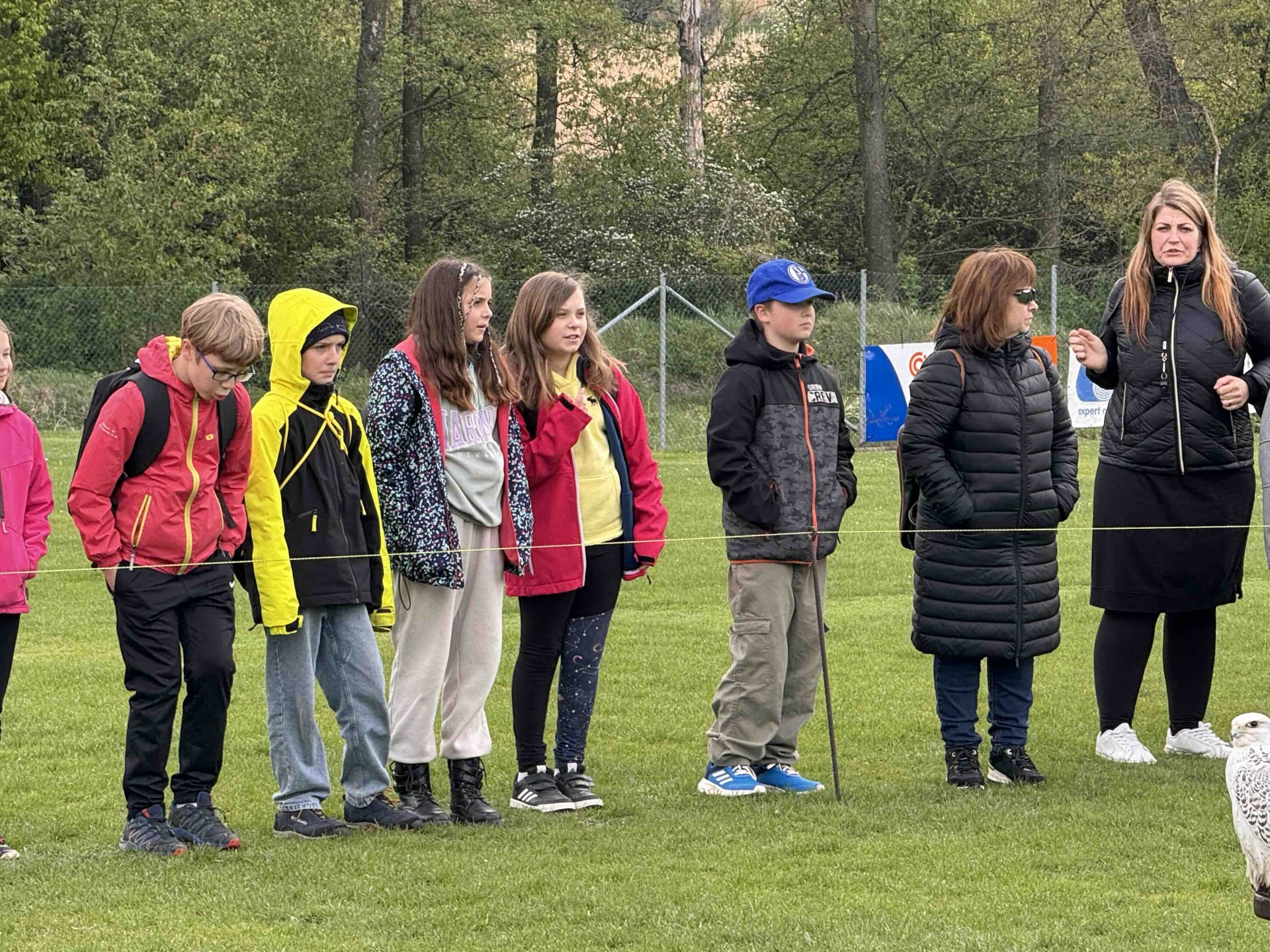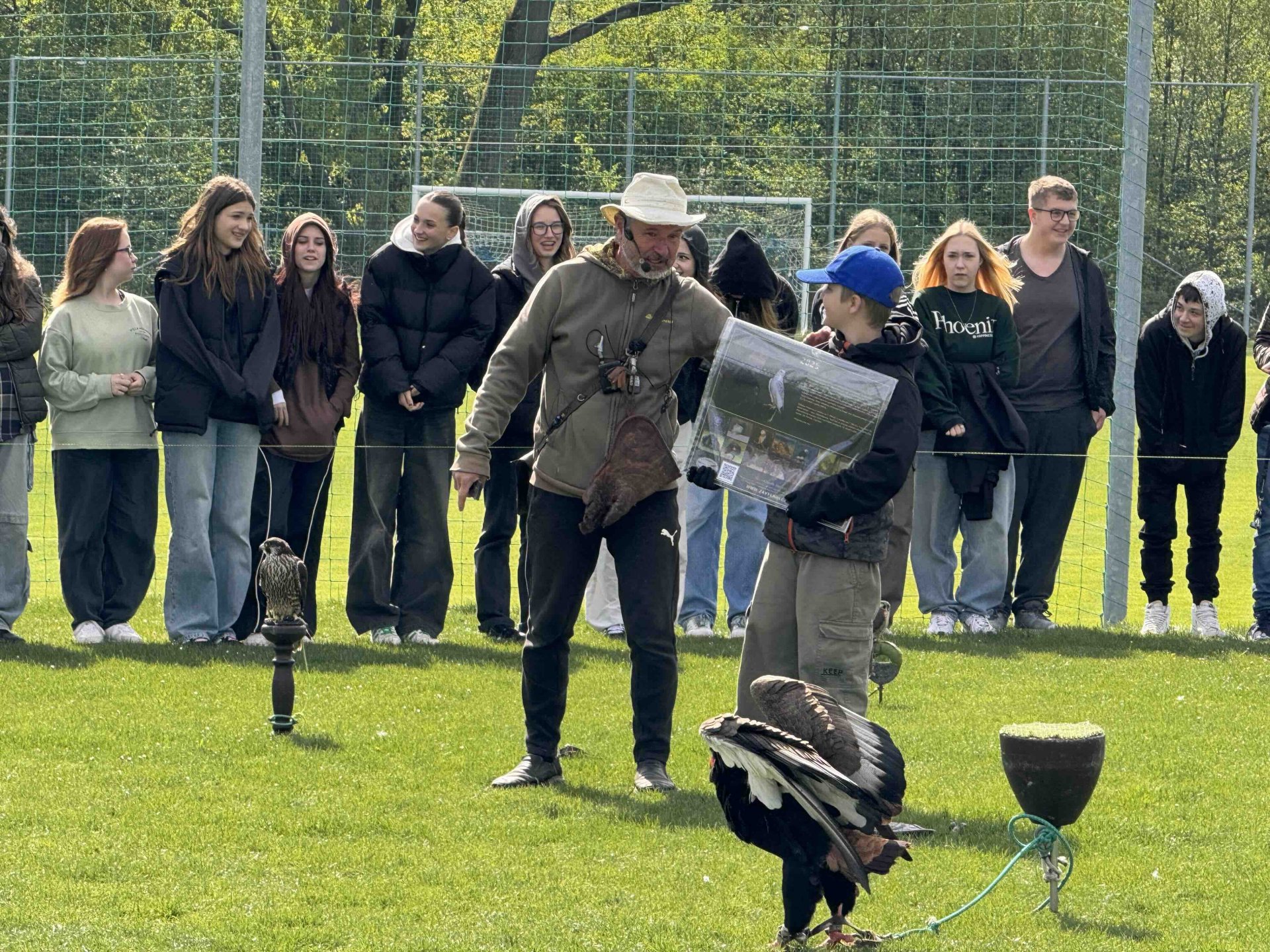 Na čtvrtek celá škola vyrazila na fotbalové hřiště ve Škvorci, kde na nás čekalo cca 20 dravců. Společnost Zayferus nabízí i letovou ukázku dravců při lovu kořisti.