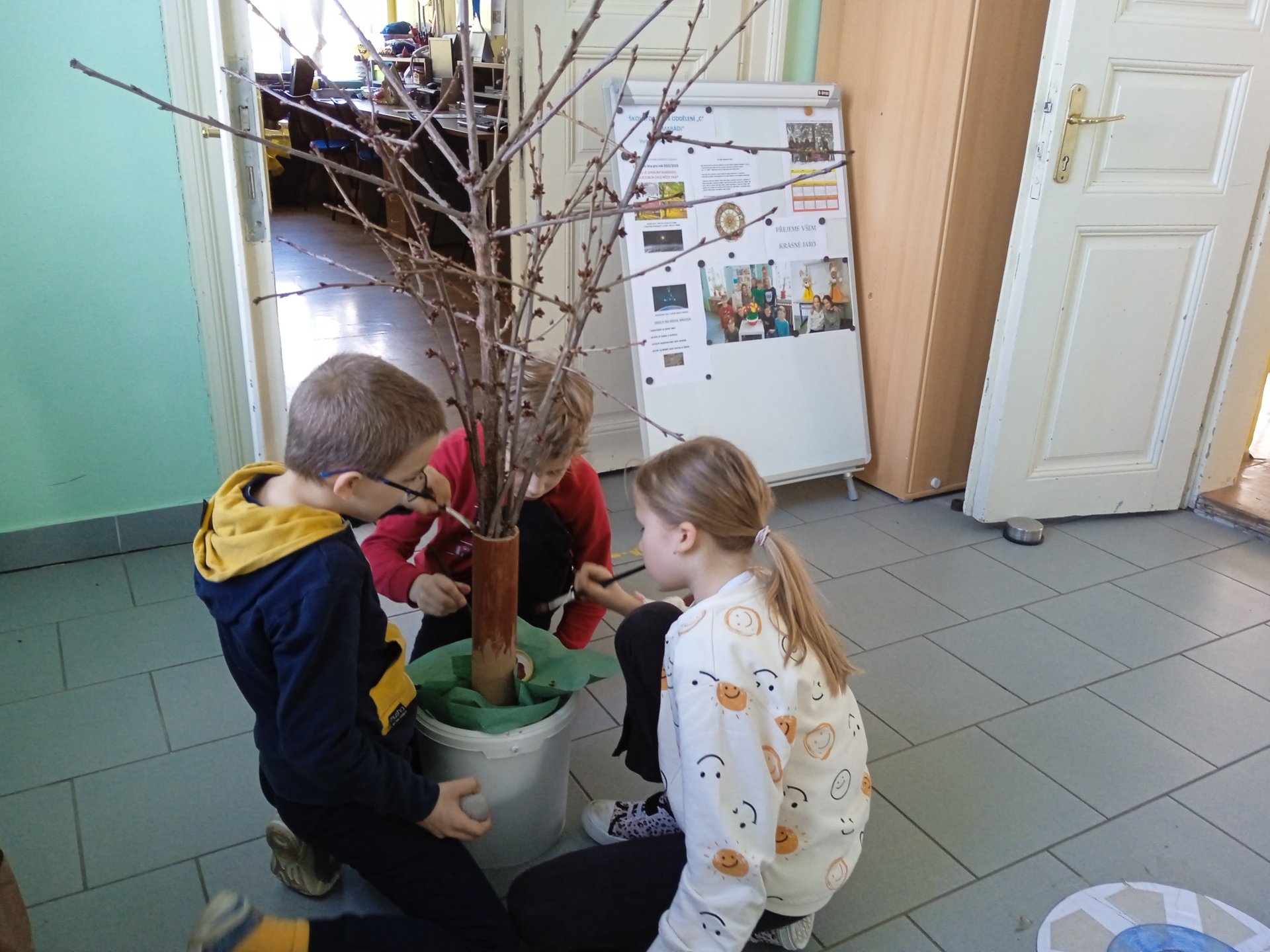 Vyzdobili jsme si třídu a chodby zajíčky, vajíčky a osením. Připomněli jsme si