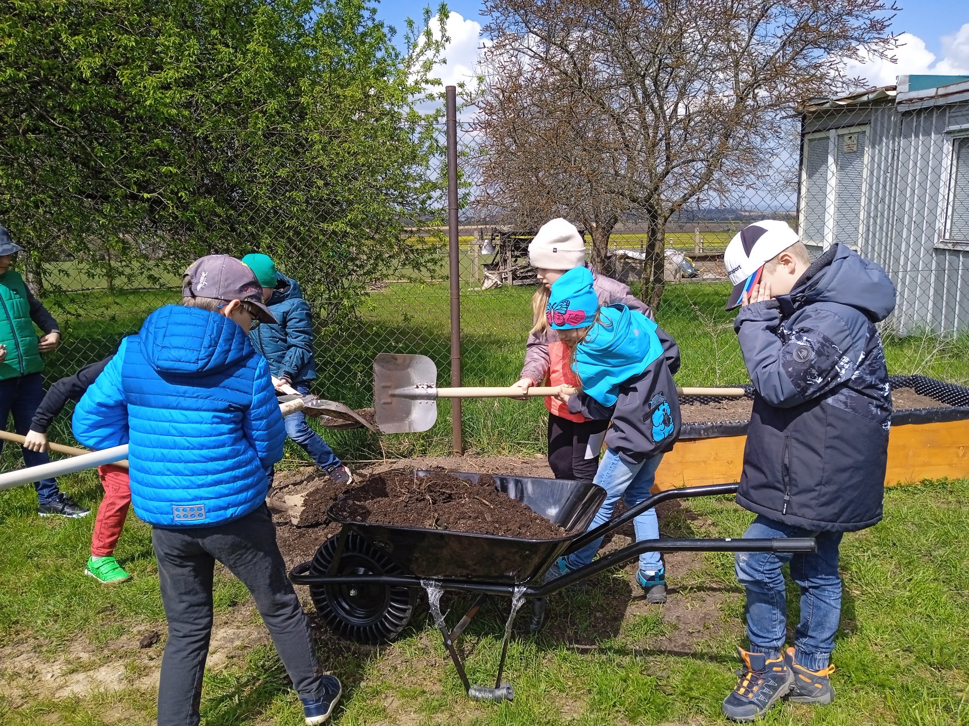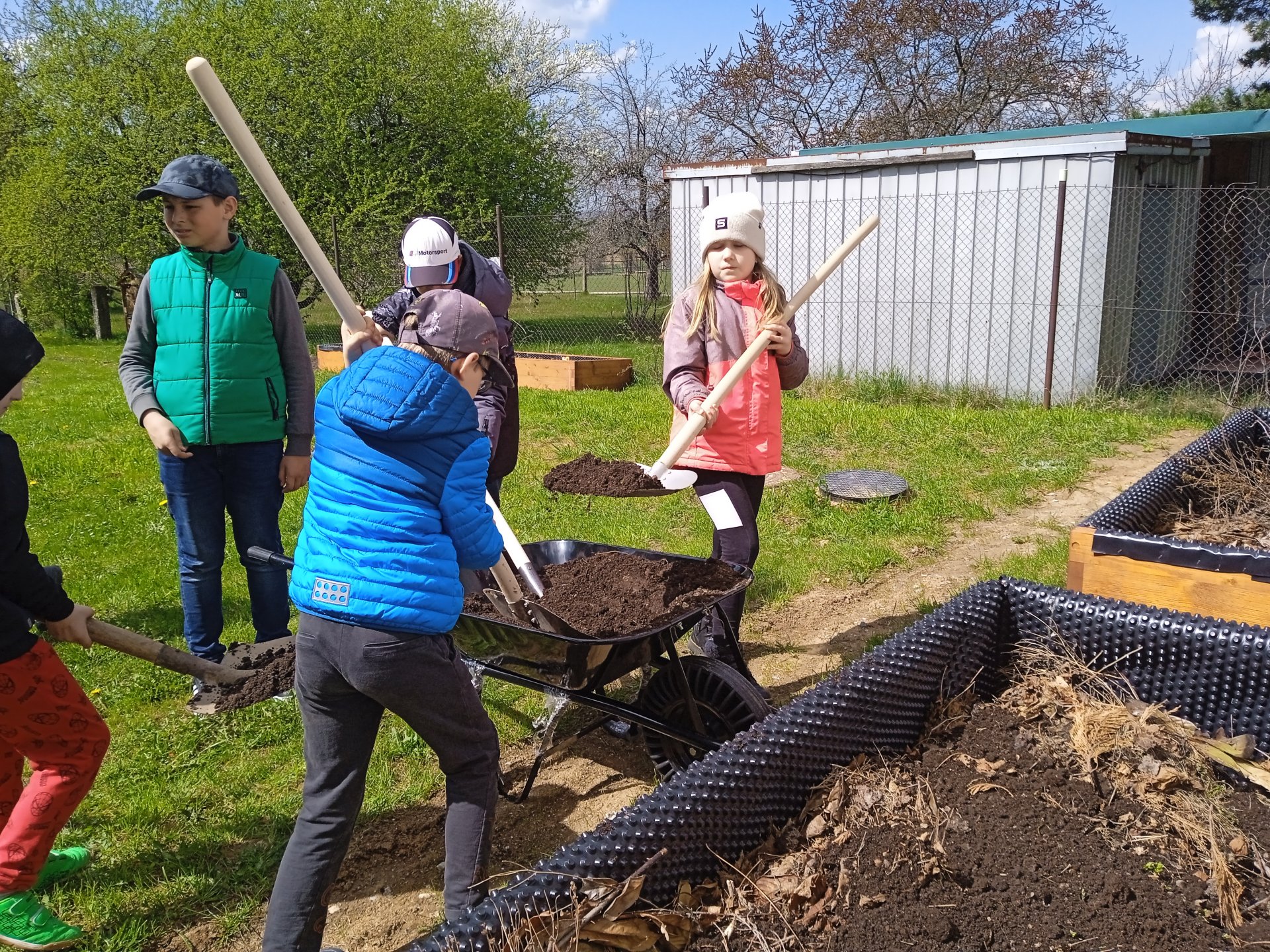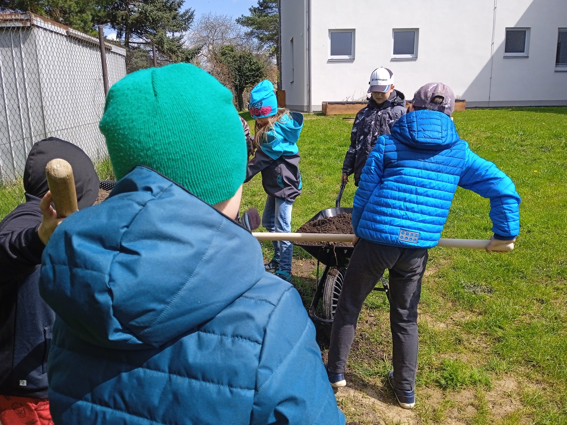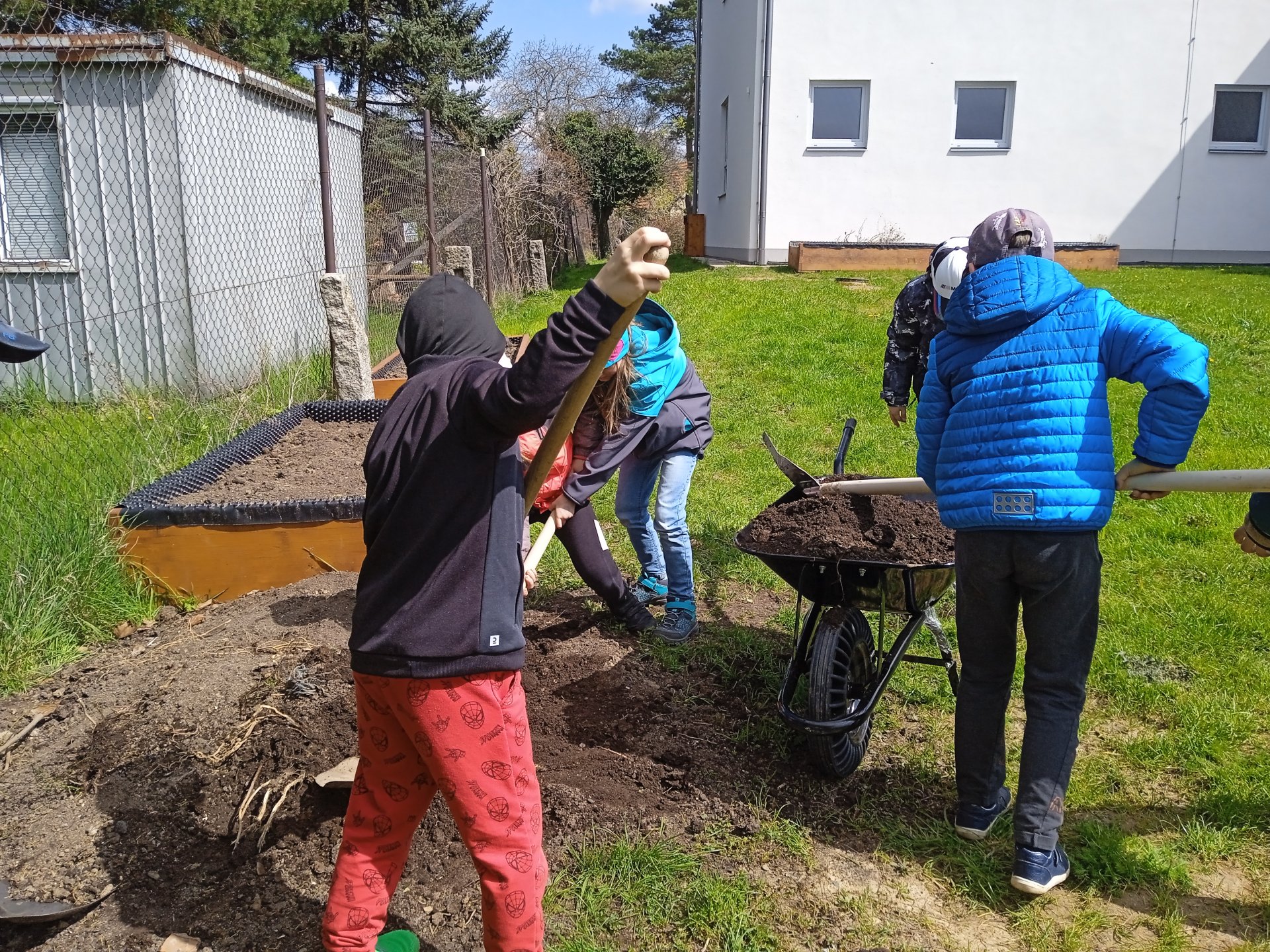 Navozili jsme zeminu do našeho vyvýšeného záhonu a zaseli ředkvičky.