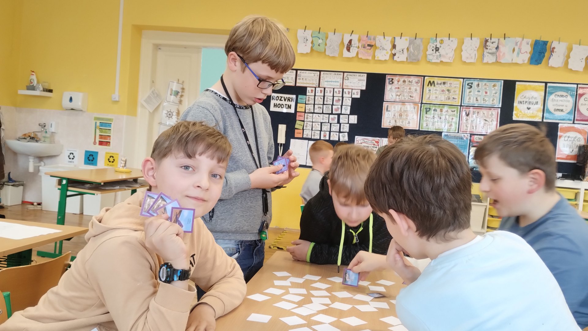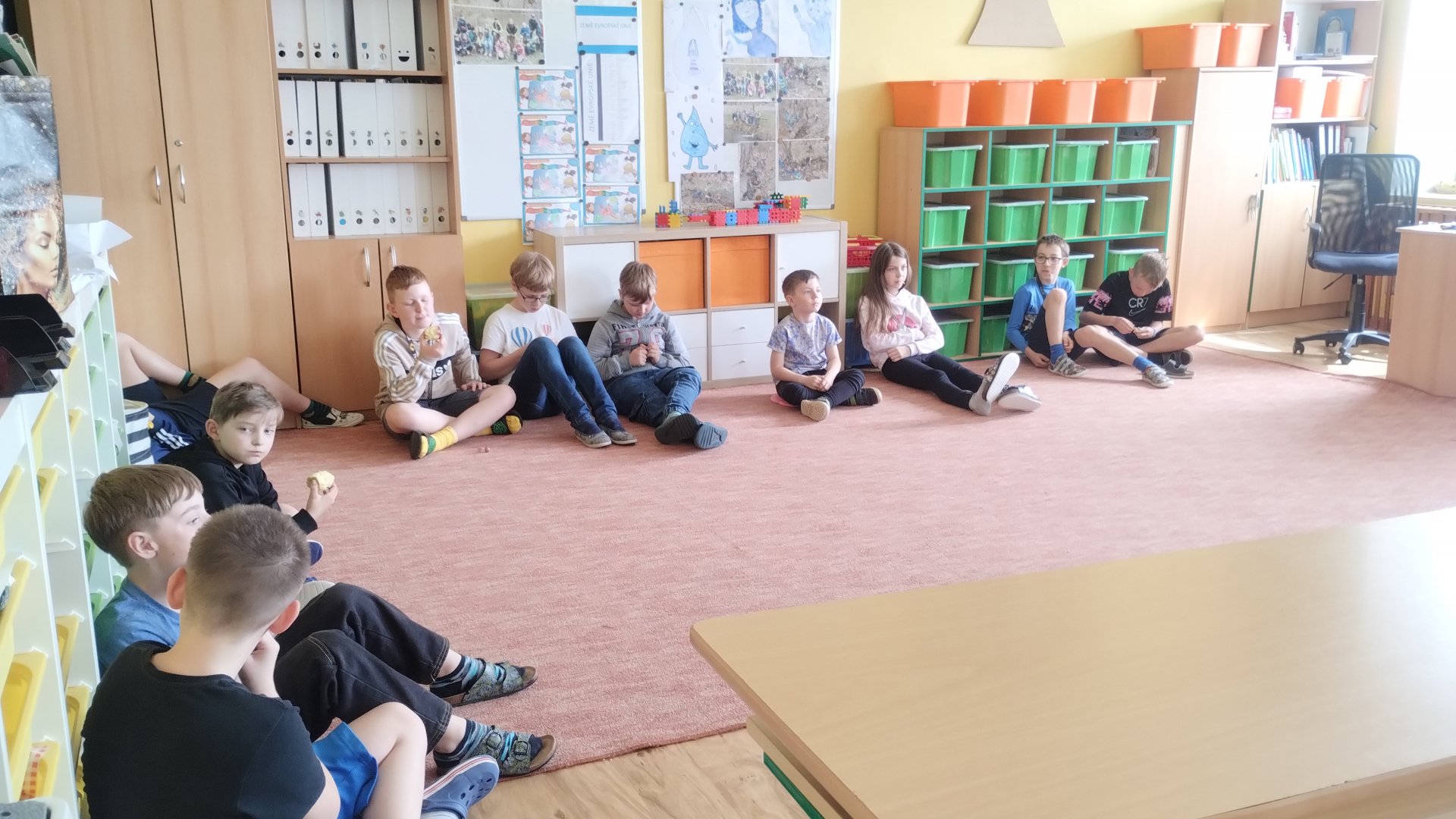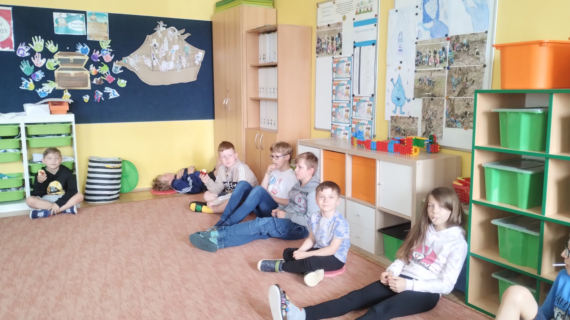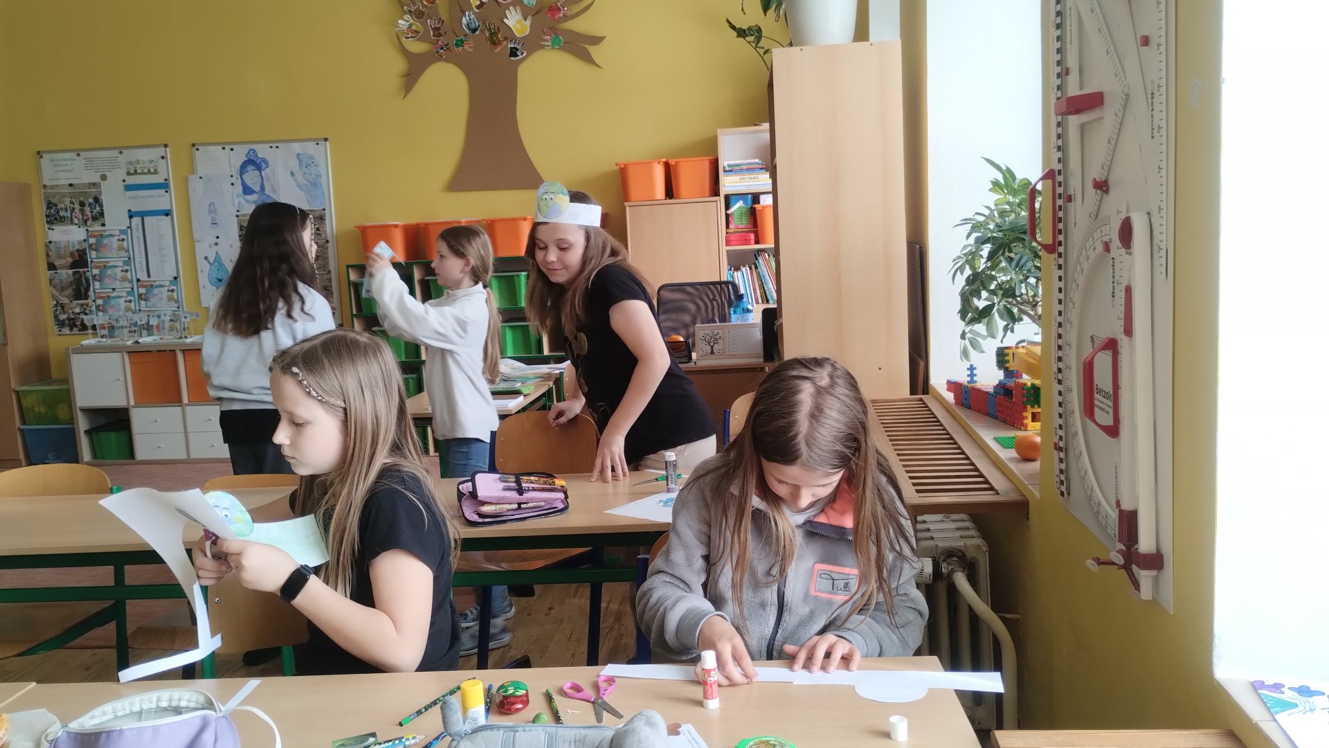 jsme si papírovou čelenku mladého ochránce. Povídali jsme si o třídění odpadu, barevnost popelnic