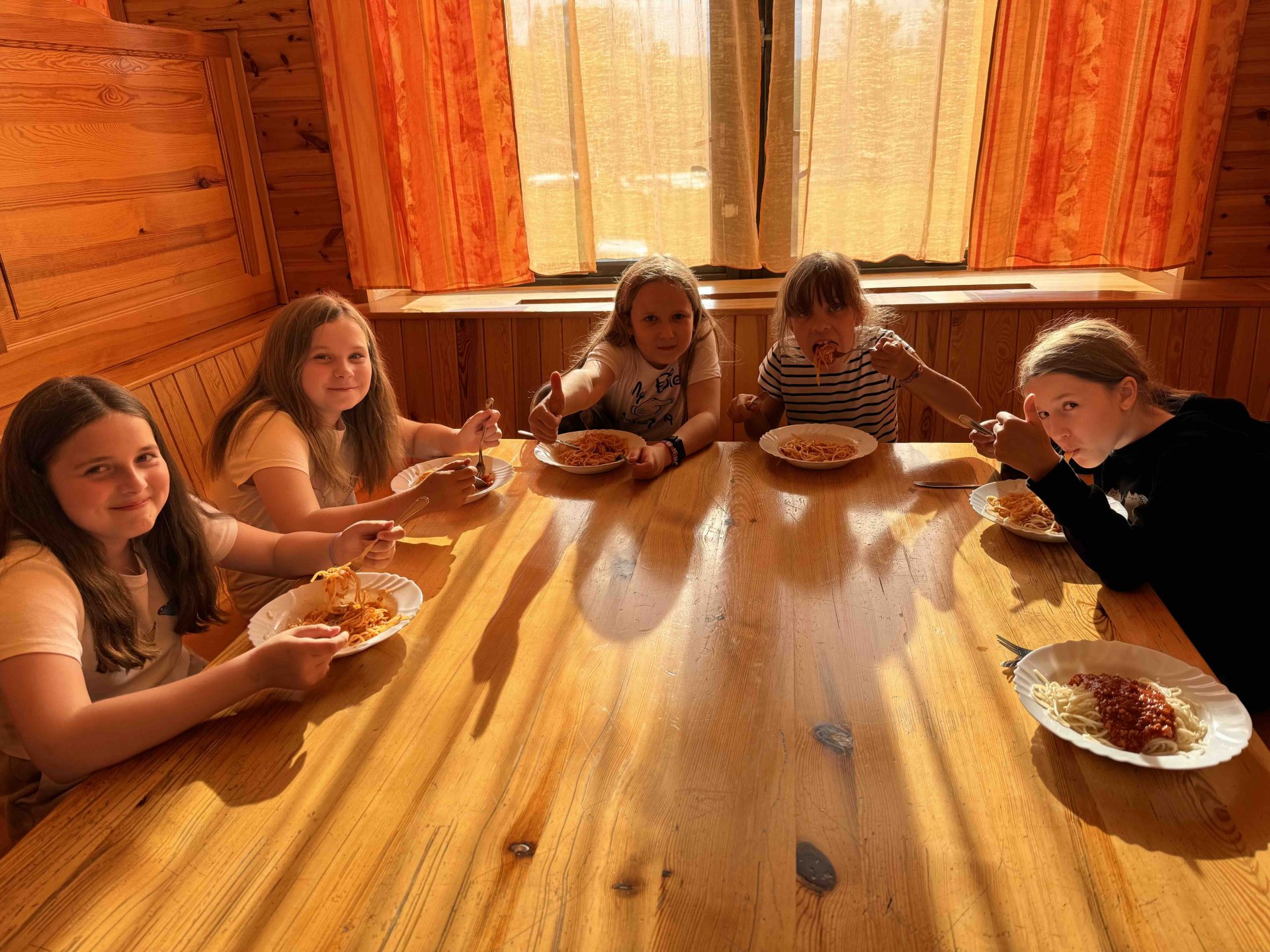 Dnes k obědu guláš s knedlíkem a na odpolední program už nám začalo pršet, takže jsme vděčný za ten velkorysý prostor, kde se pak závěrem bude určitě i trsat. :)